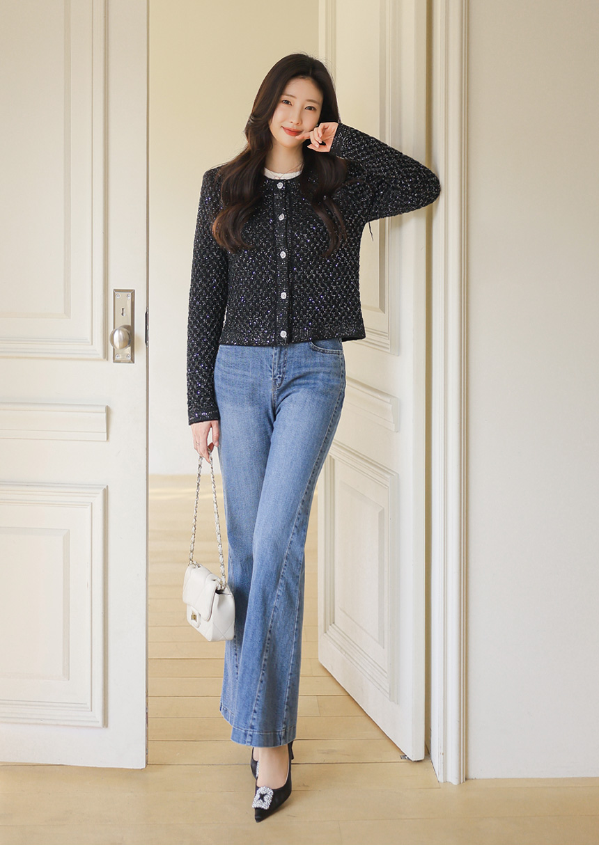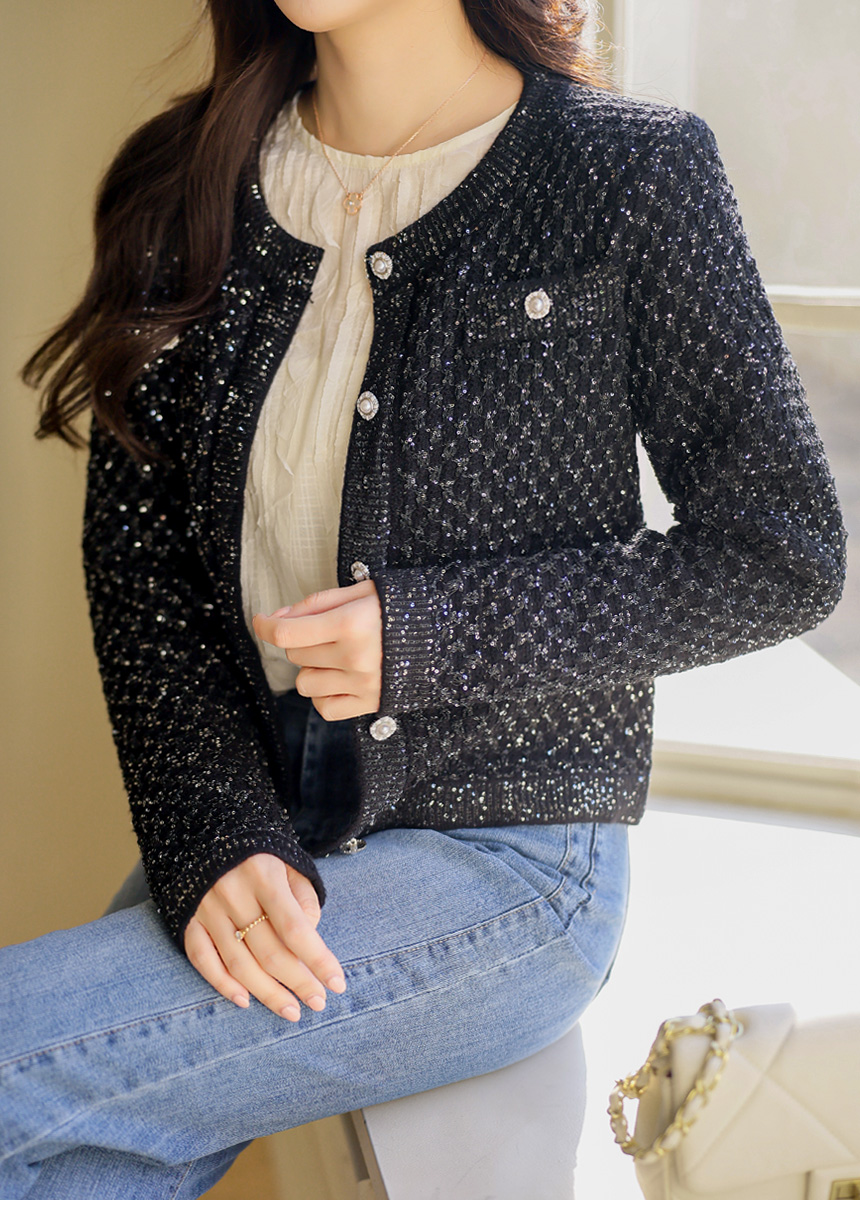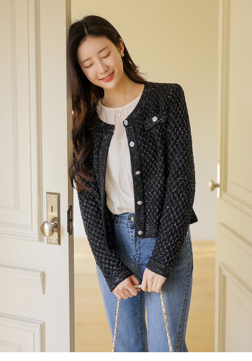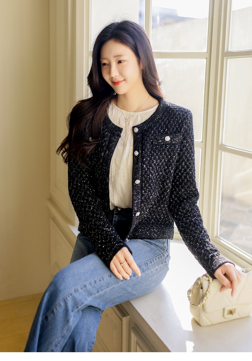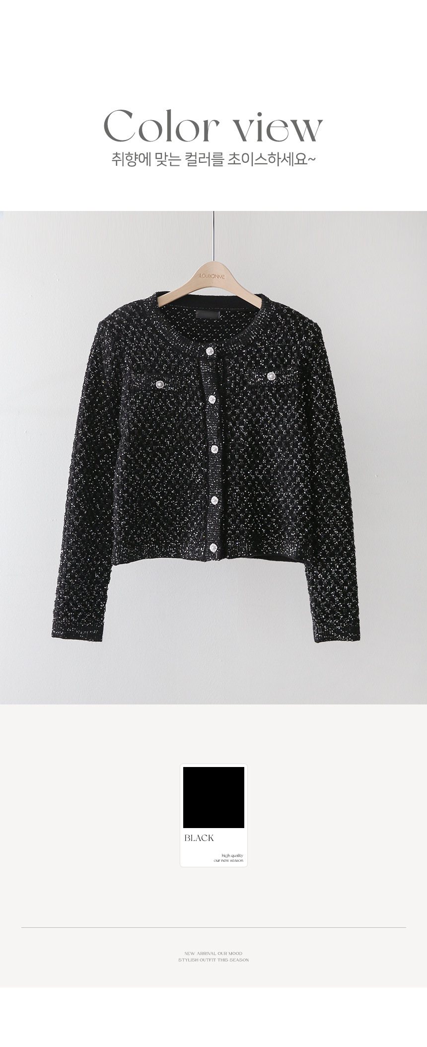 한층 더 화사하고 고급스러운 분위기를 선사하는 니트 가디건이에요