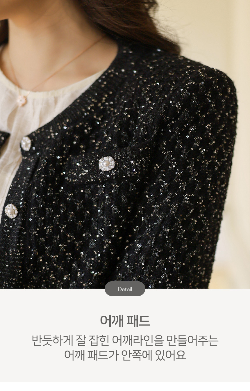 다이아 체크 패턴으로 섬세하게 짜여진 펄과 스팽글 디테일은