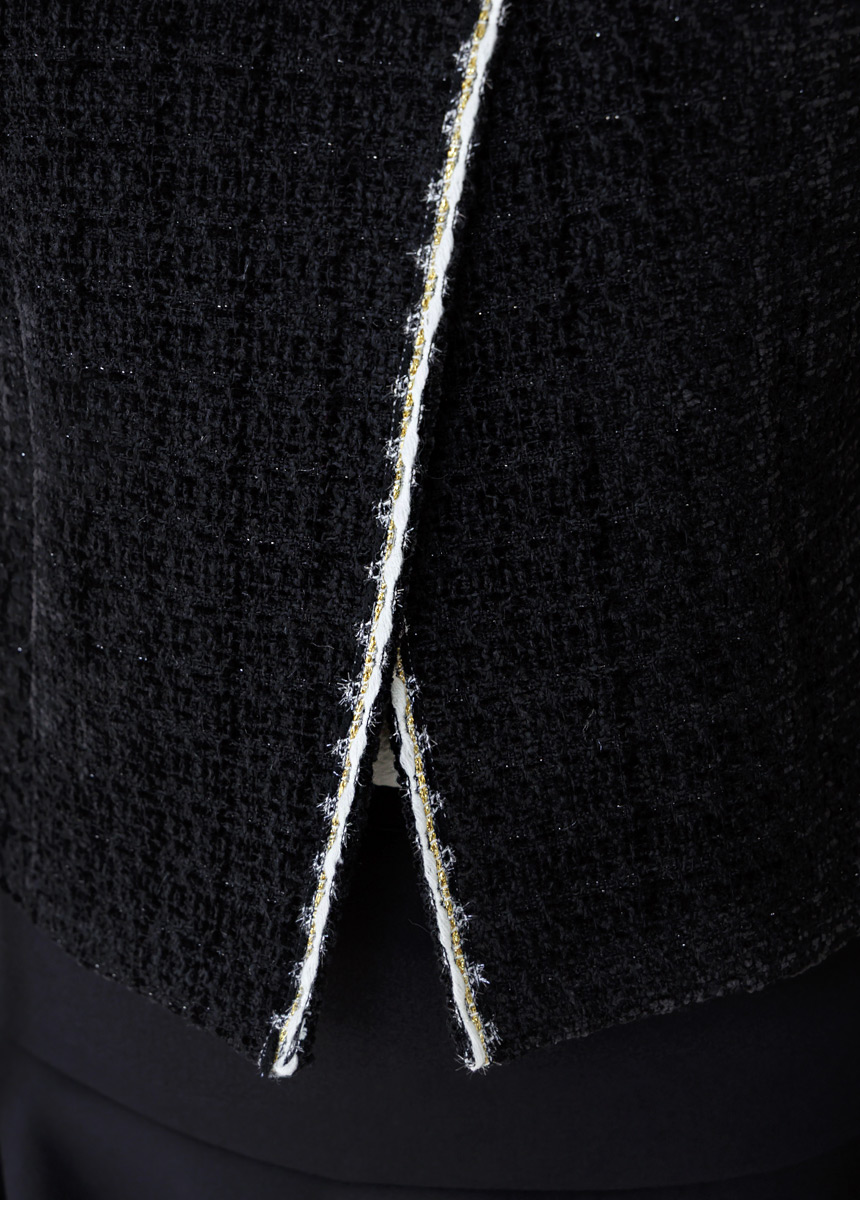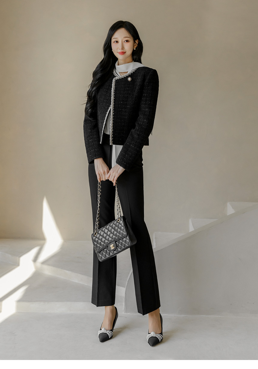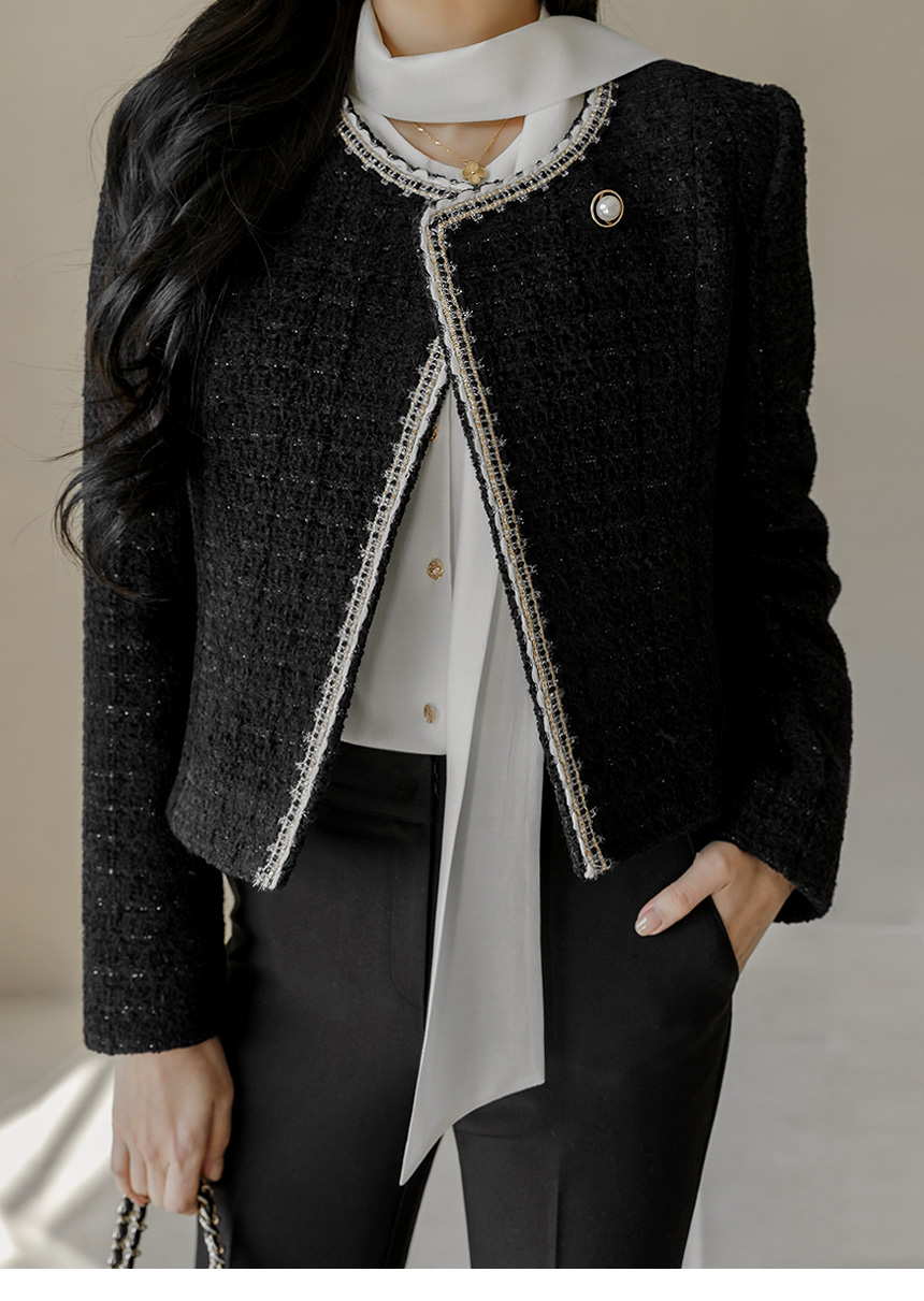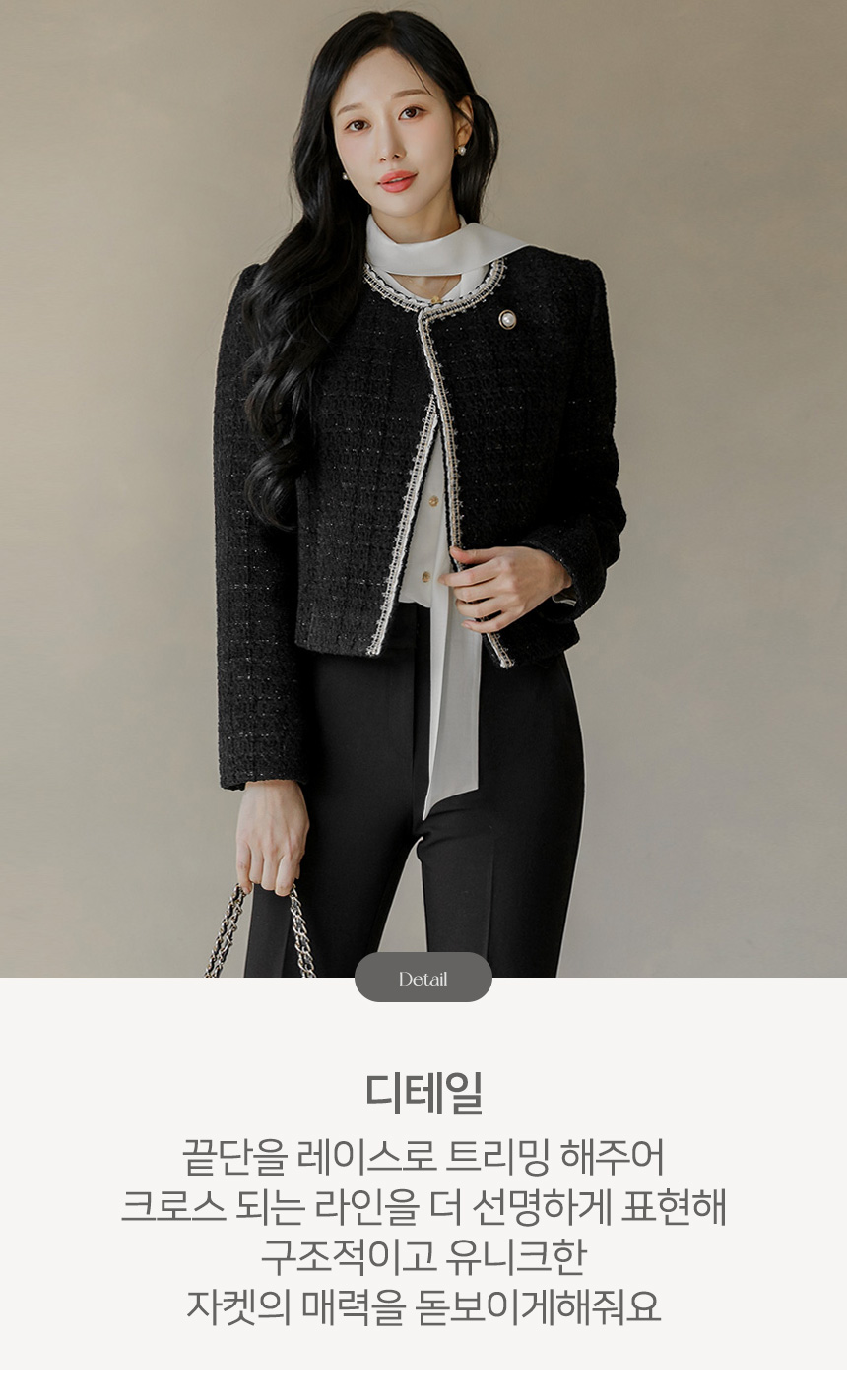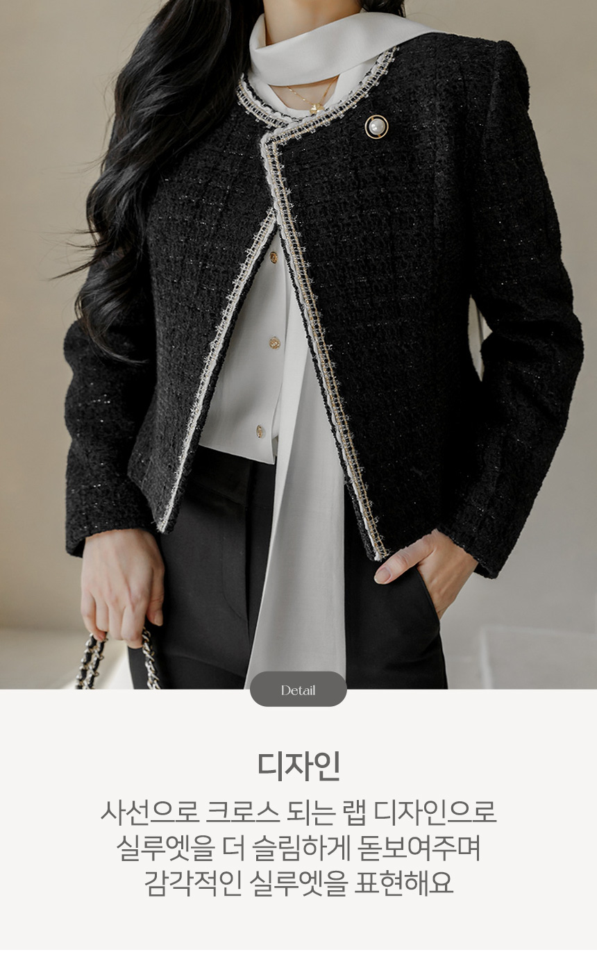 끝단에는 브레이드 라인을 배색해 트위드의 텍스쳐와