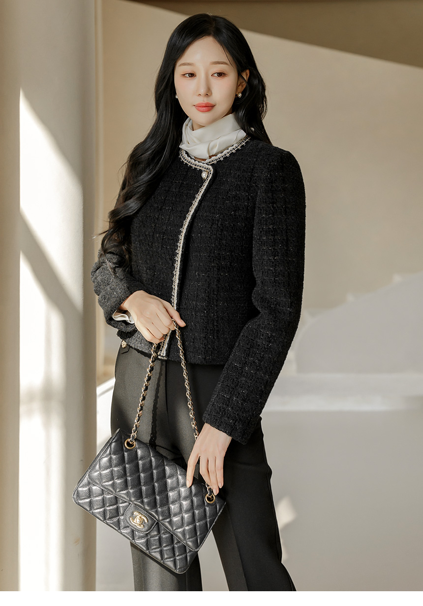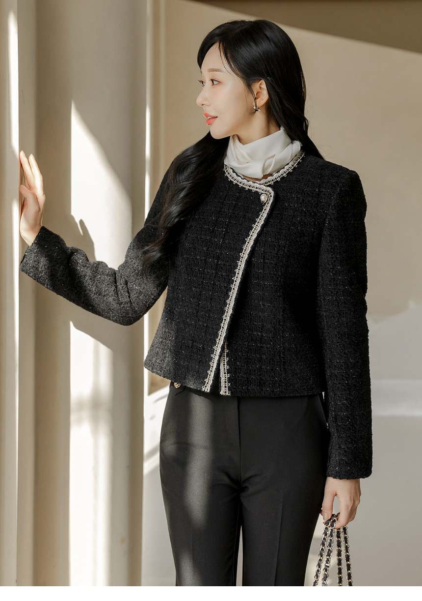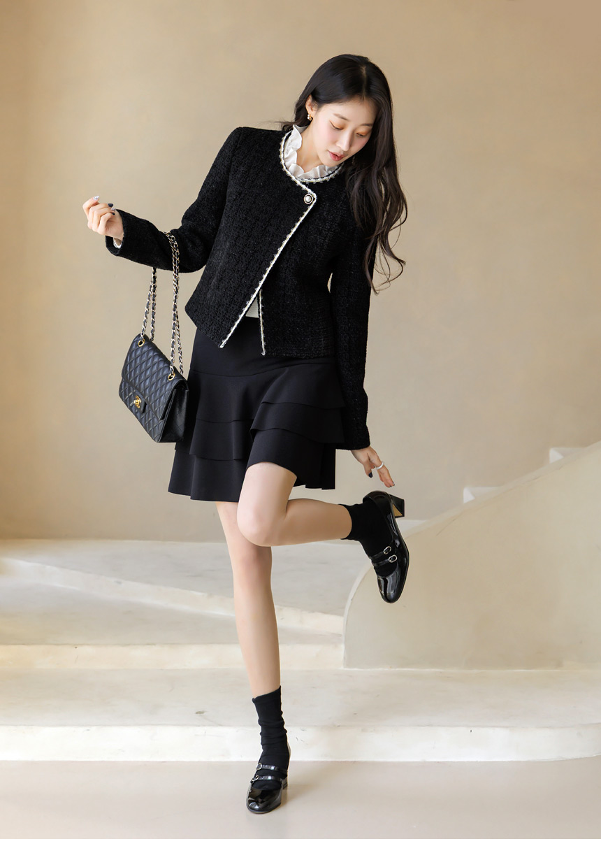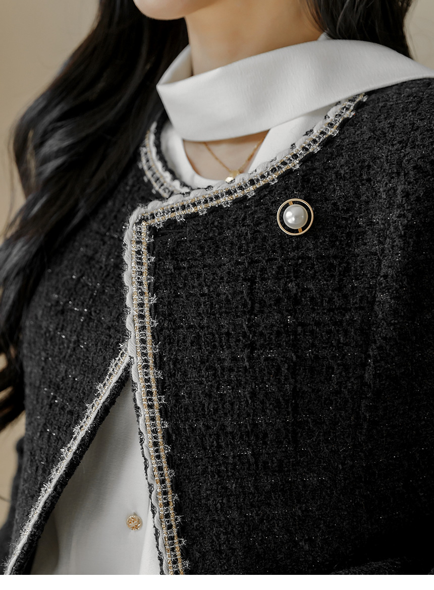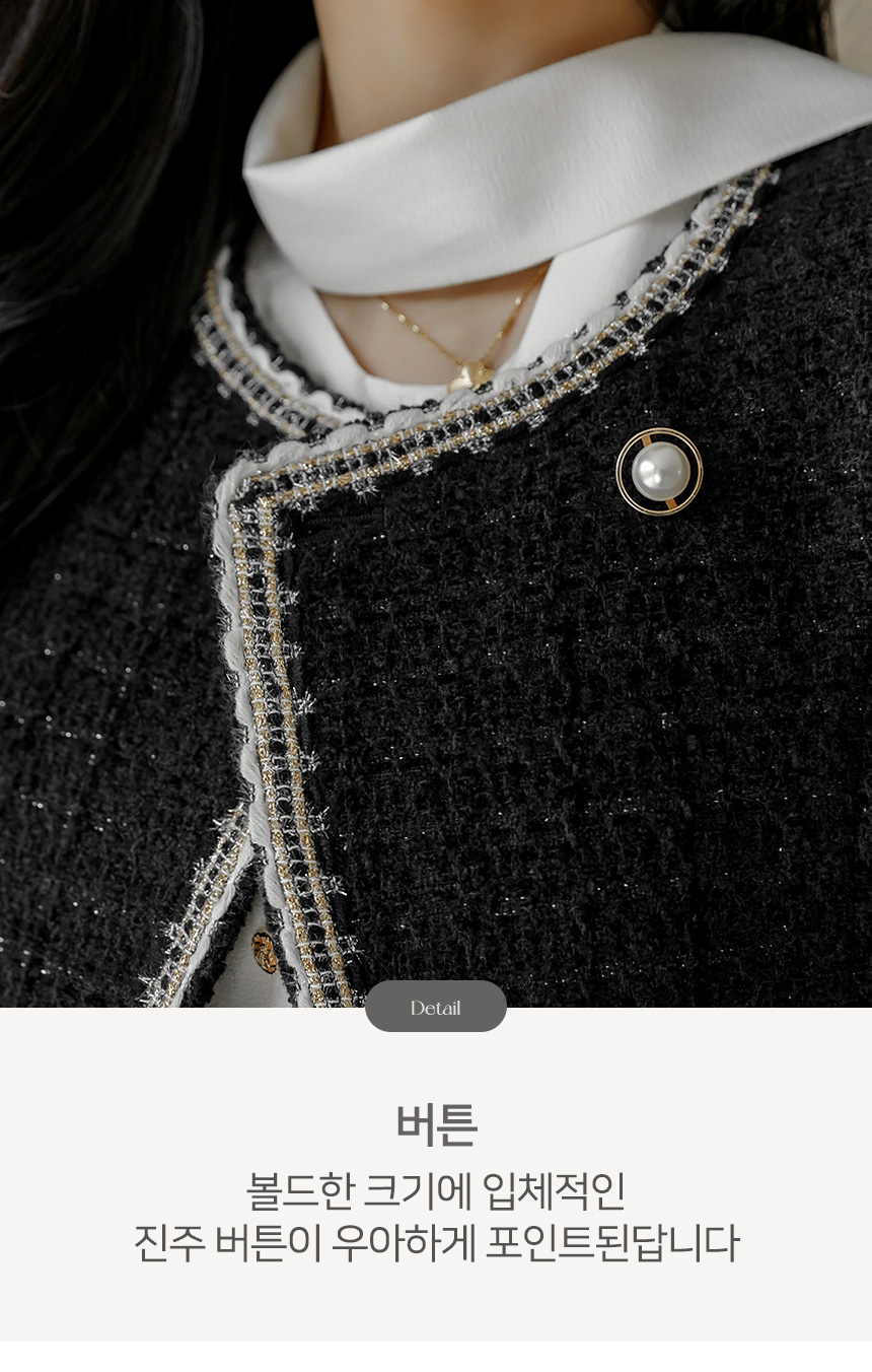 끝단에는 브레이드 라인을 배색해 트위드의 텍스쳐와