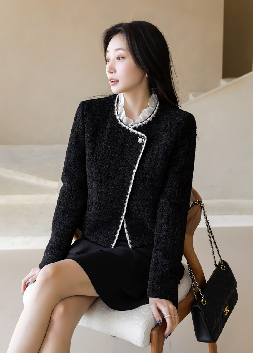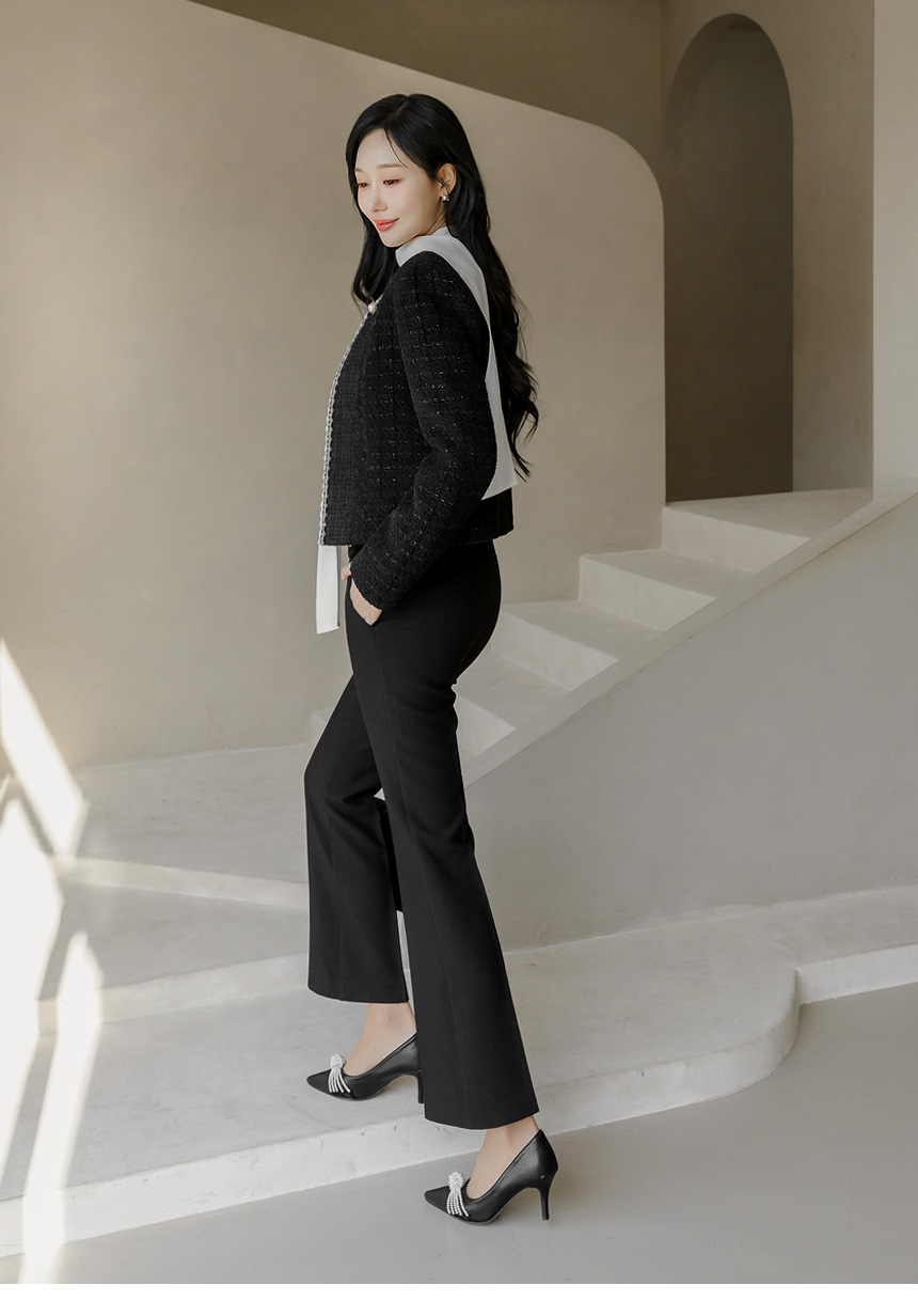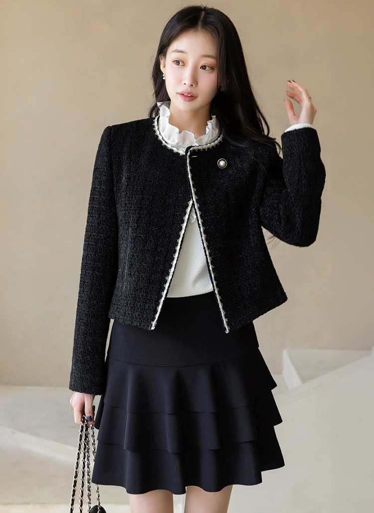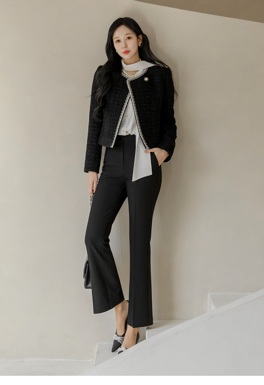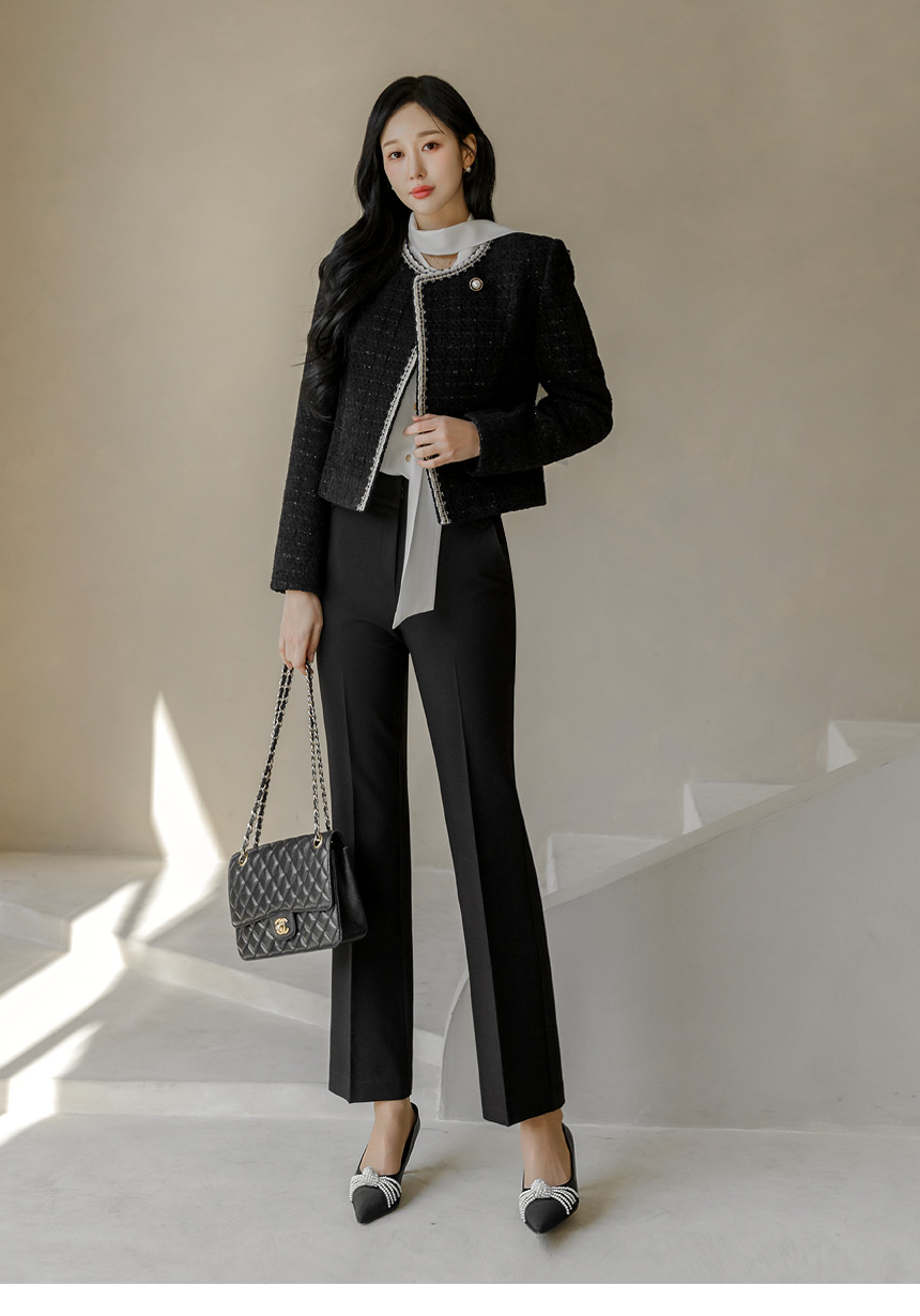 끝단에는 브레이드 라인을 배색해 트위드의 텍스쳐와