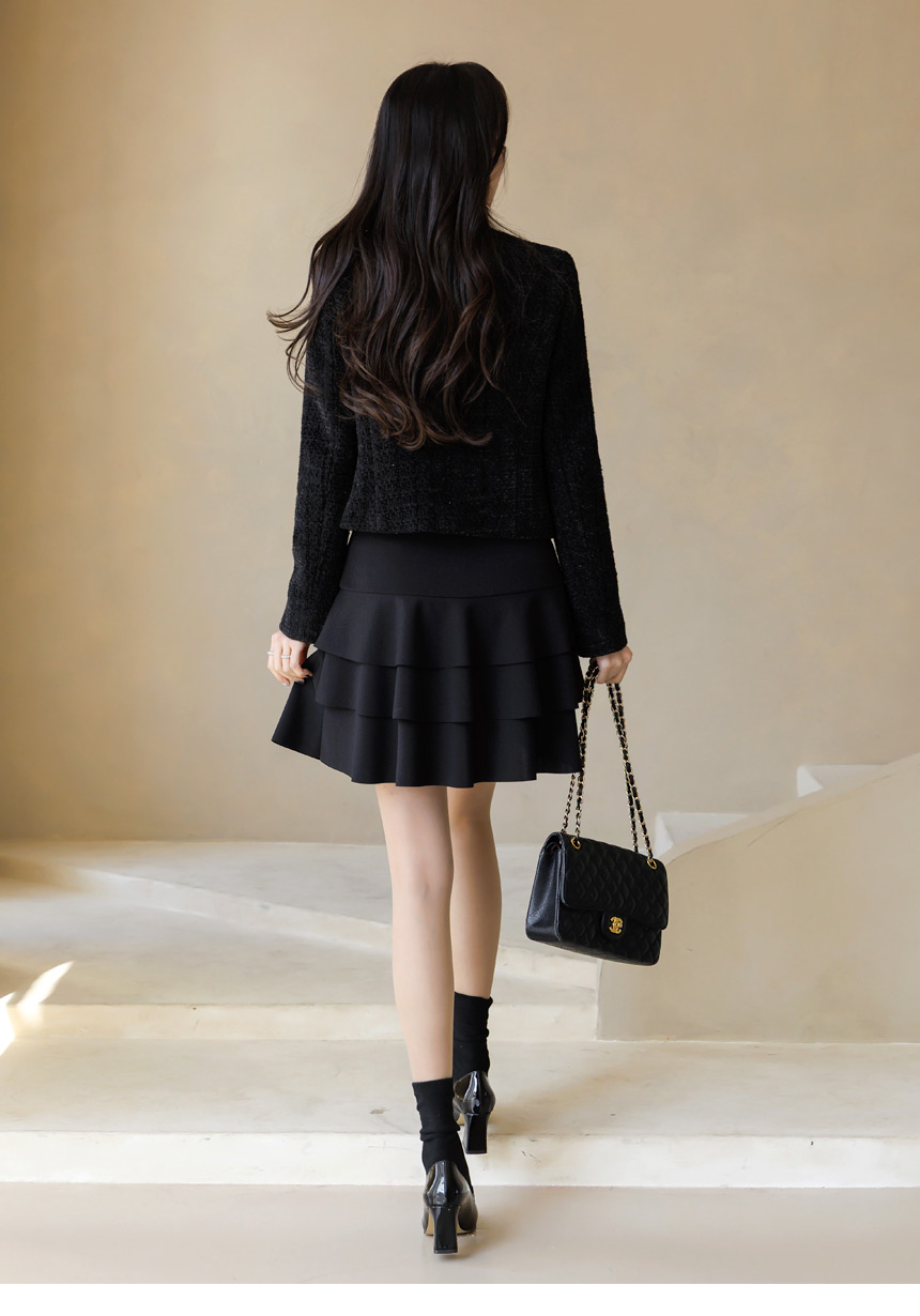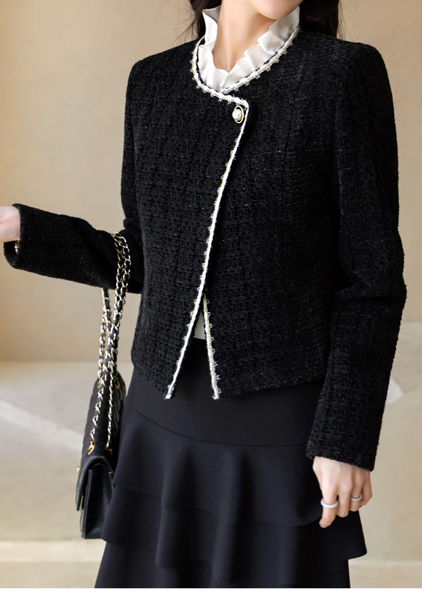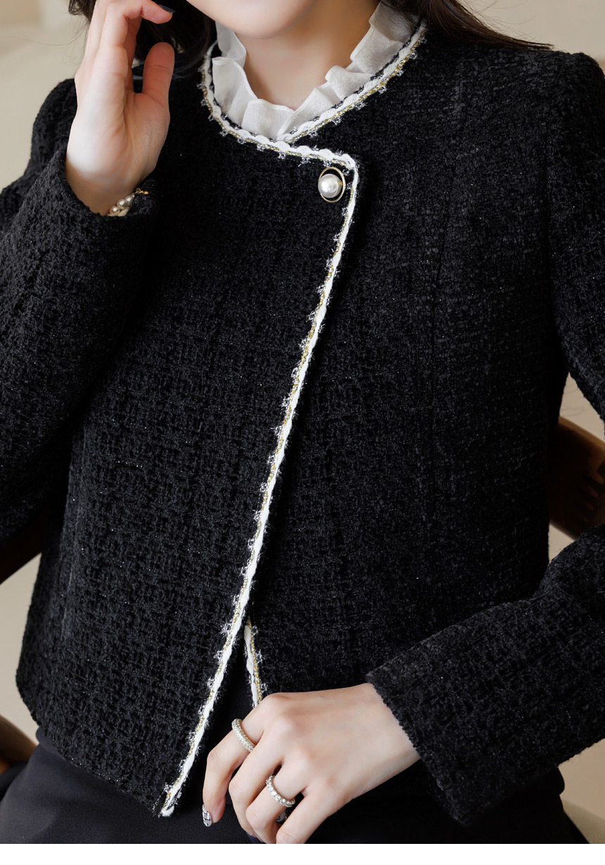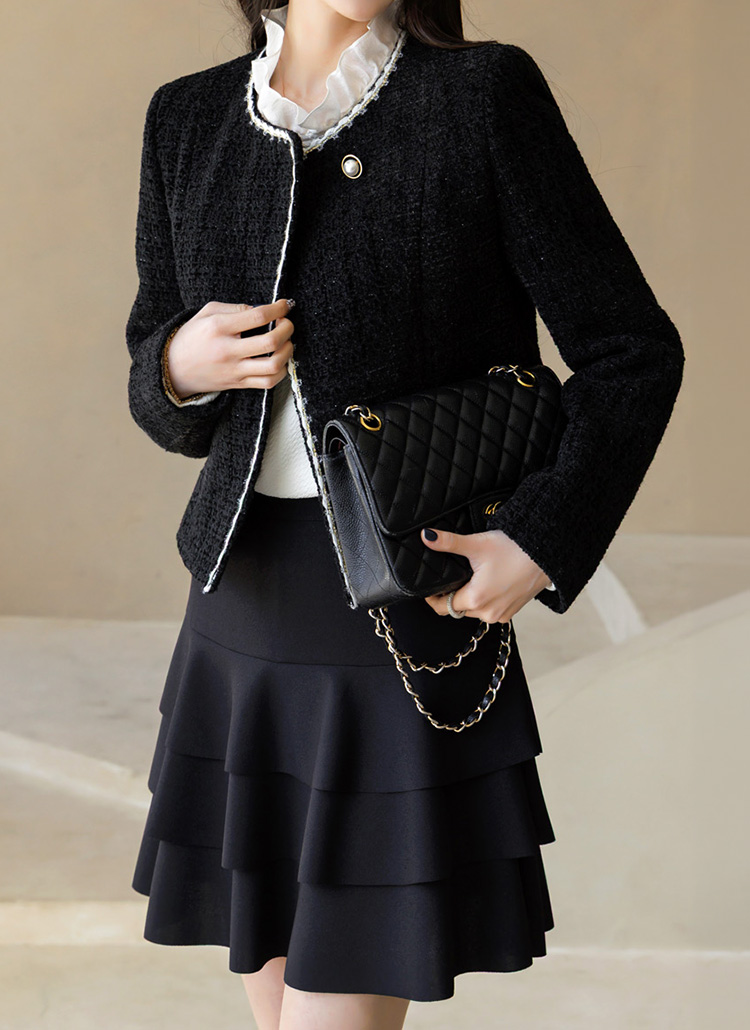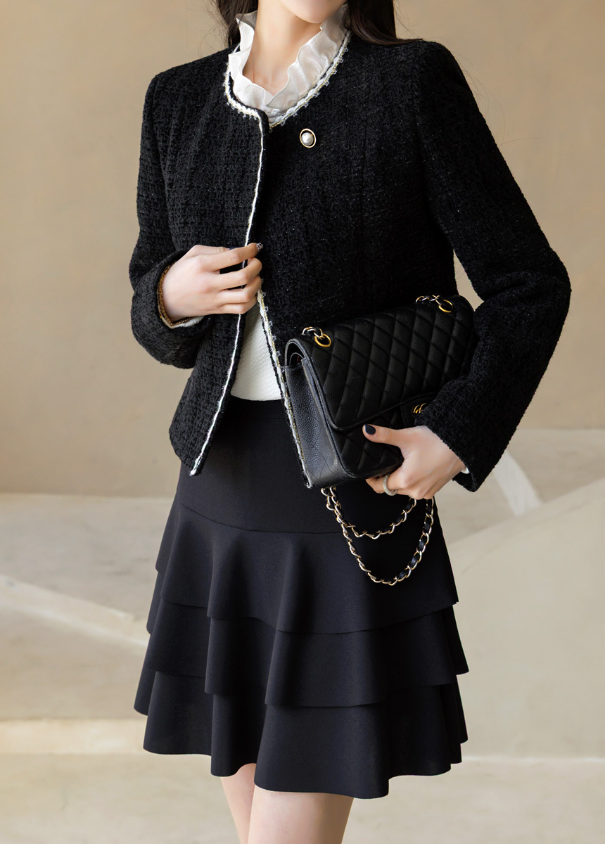 끝단에는 브레이드 라인을 배색해 트위드의 텍스쳐와