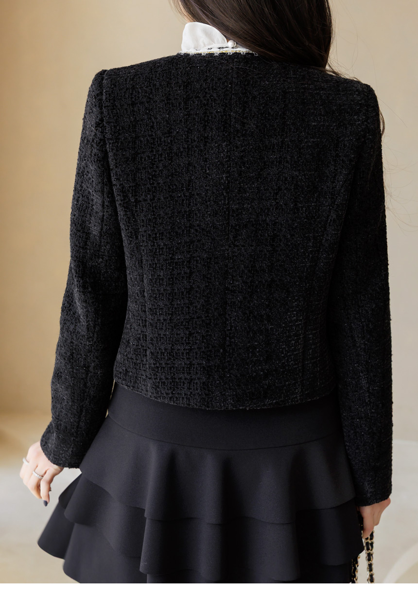 [LouisAngel] 에르사 울 블렌딩 펄 트위드 브레이드 배색 랩 트위드 자켓