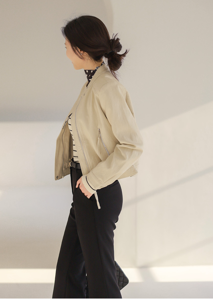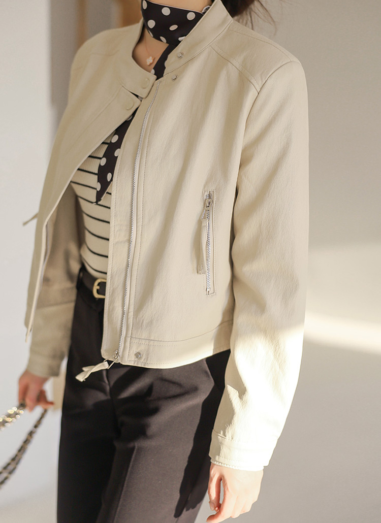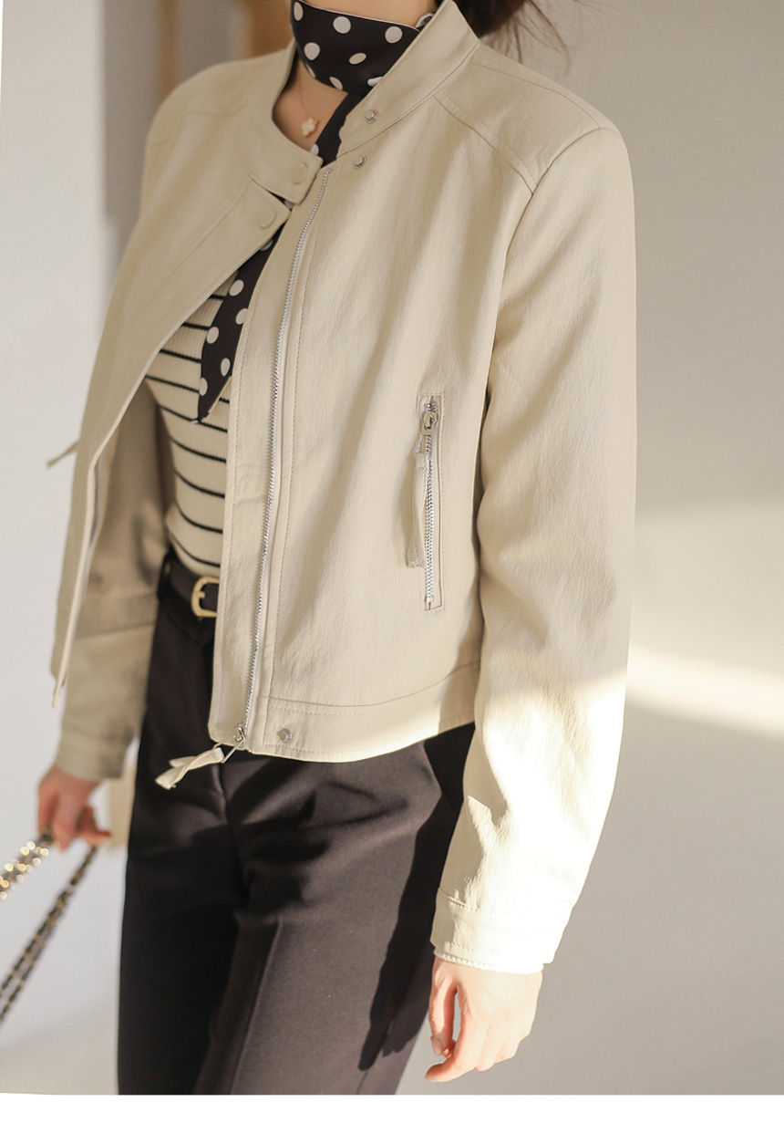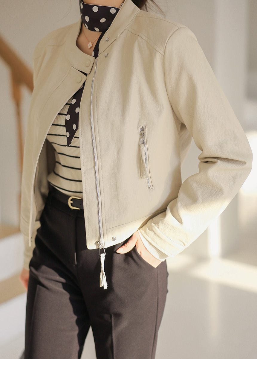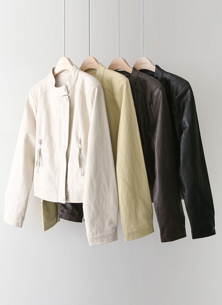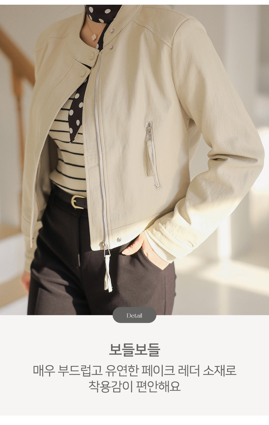 리엘스 미드 시즌 세미 크롭 레더 집업 라이더 자켓