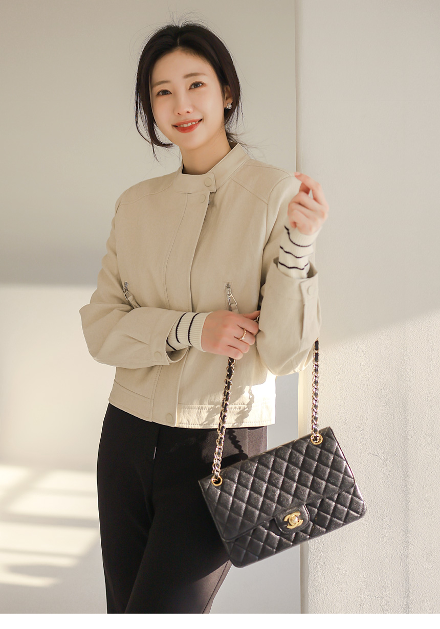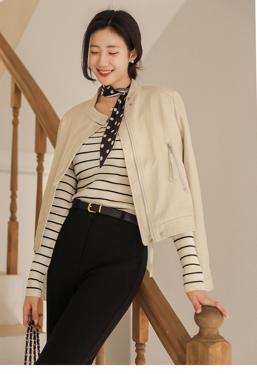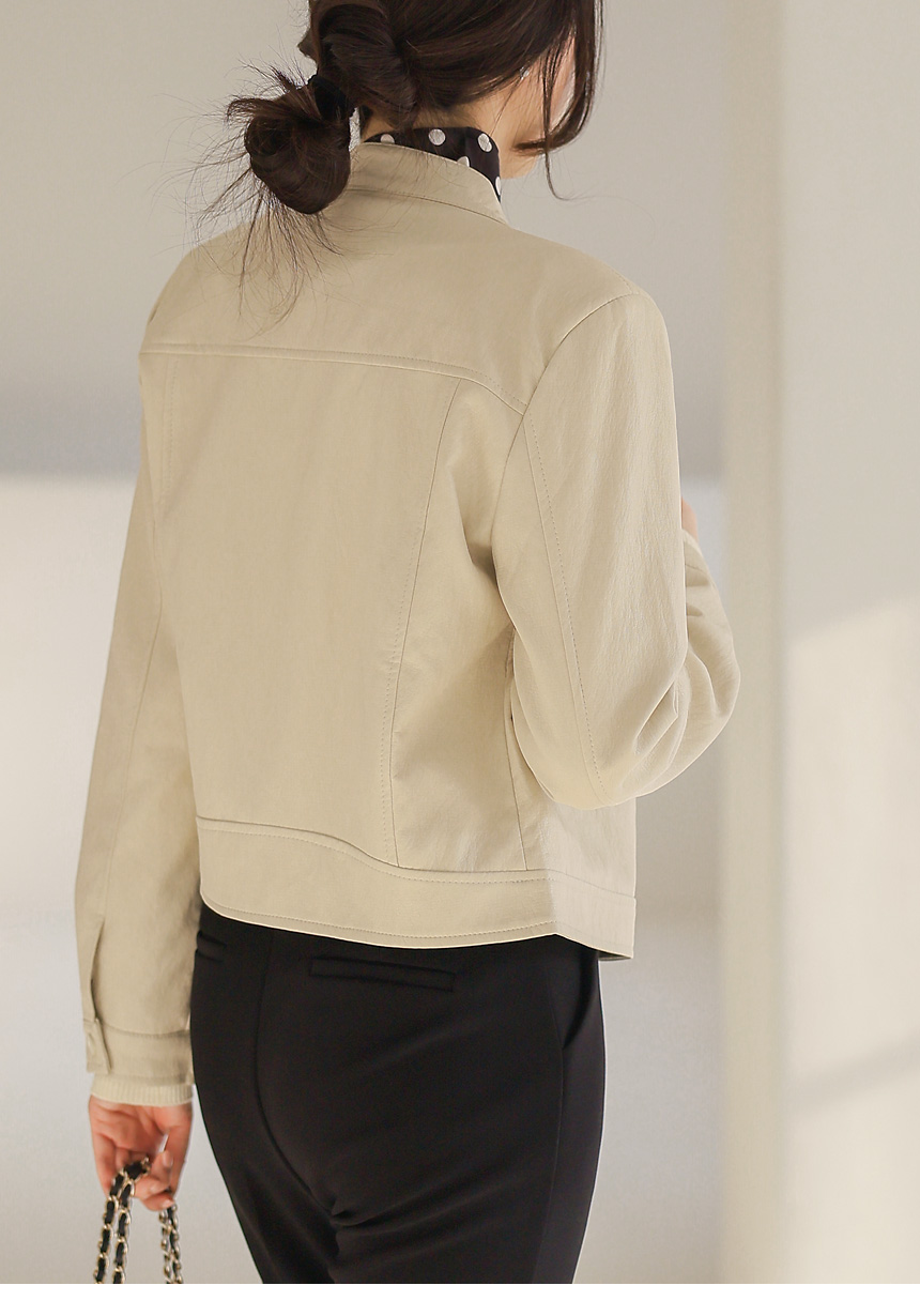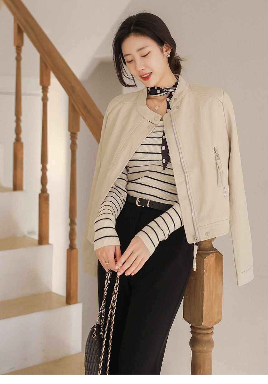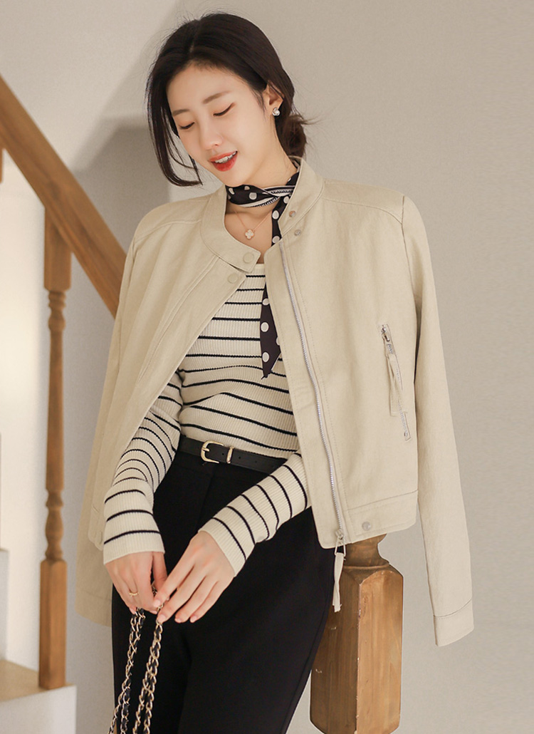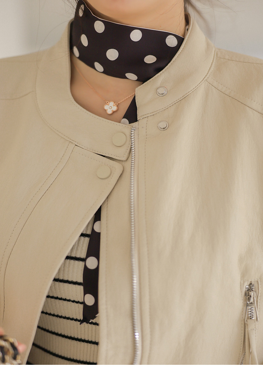 리엘스 미드 시즌 세미 크롭 레더 집업 라이더 자켓