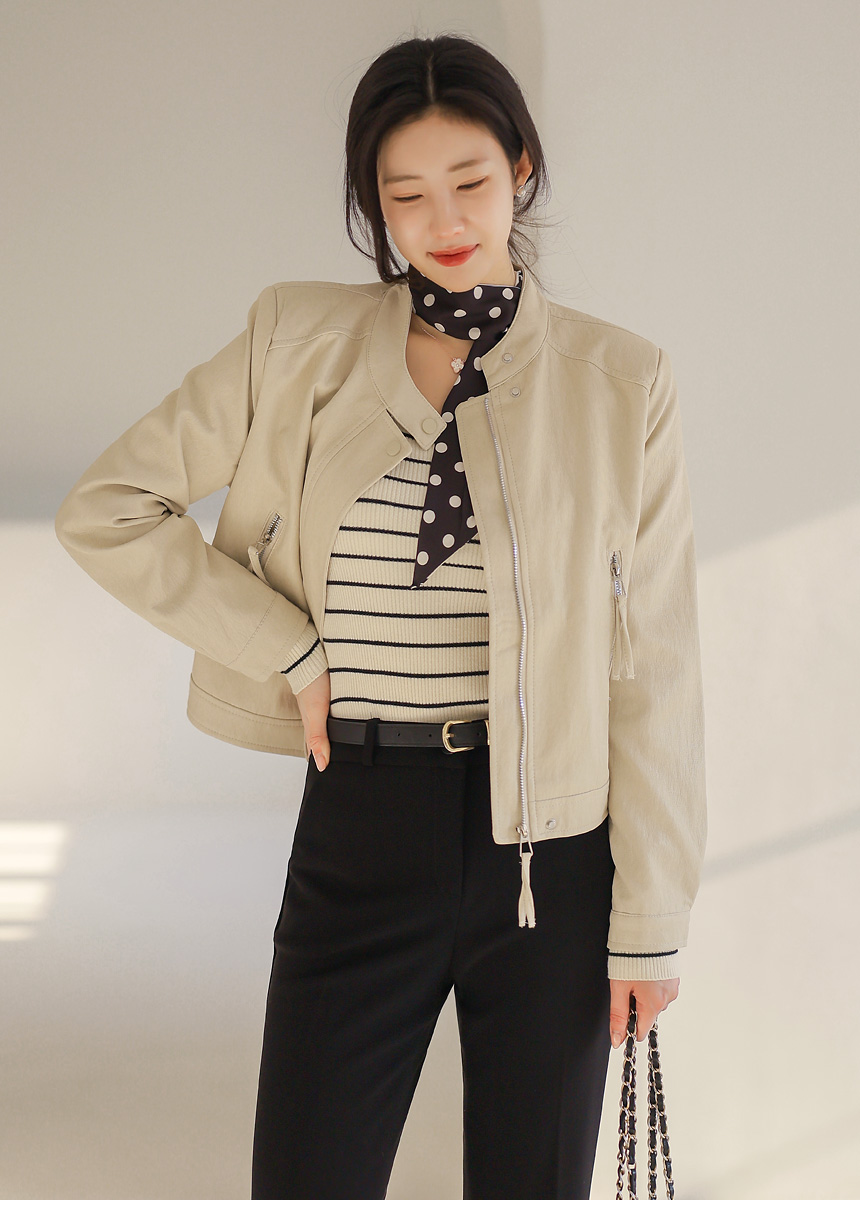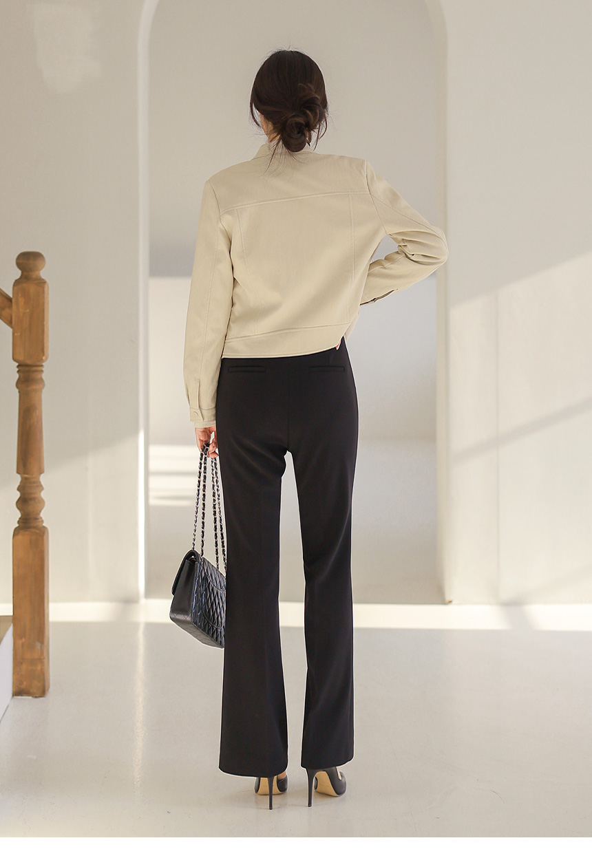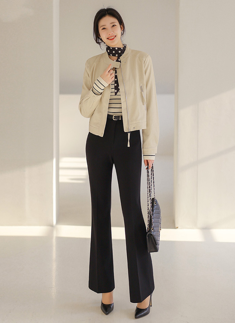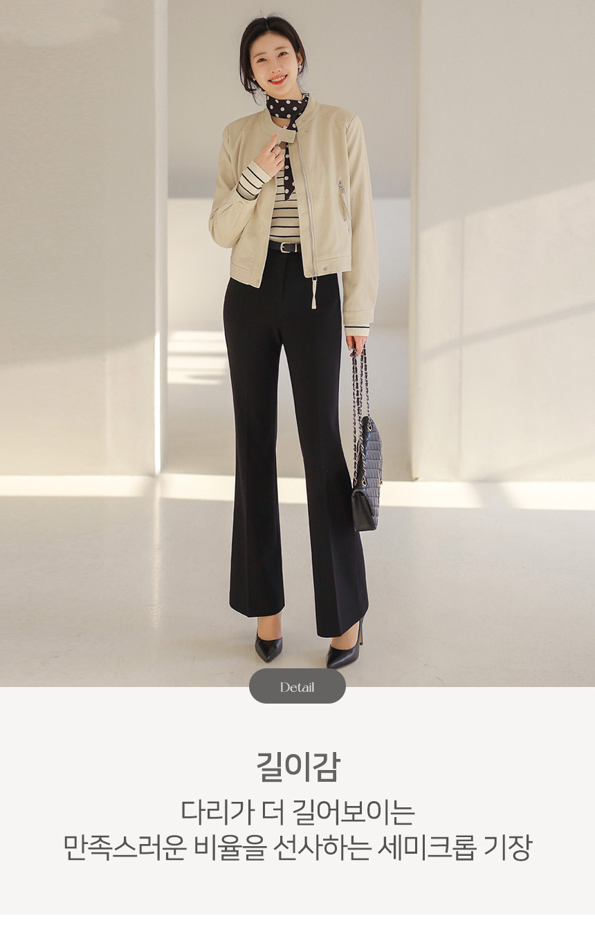 과하지 않게 떨어지는 세미 크롭 기장으로 허리선을 자연스럽게 끌어올려