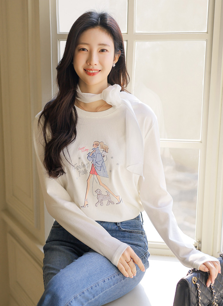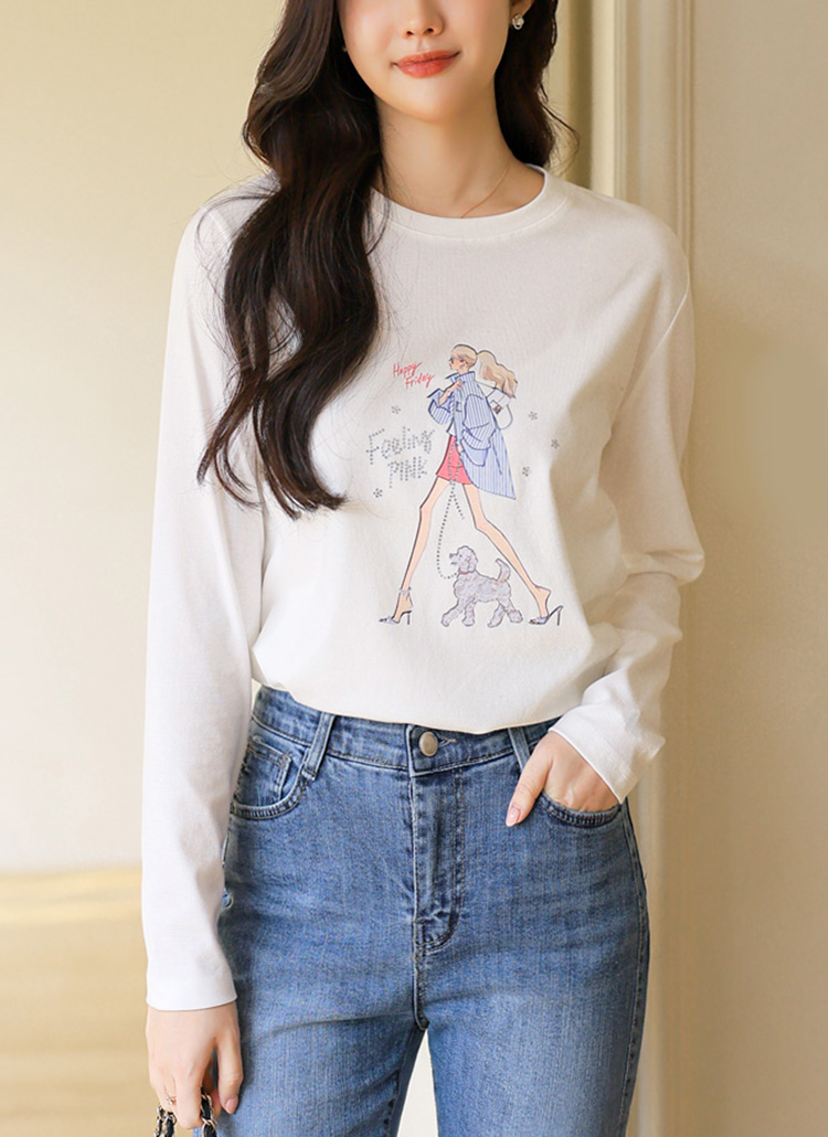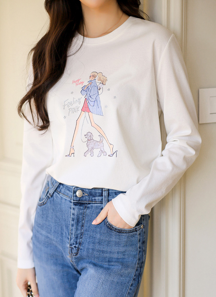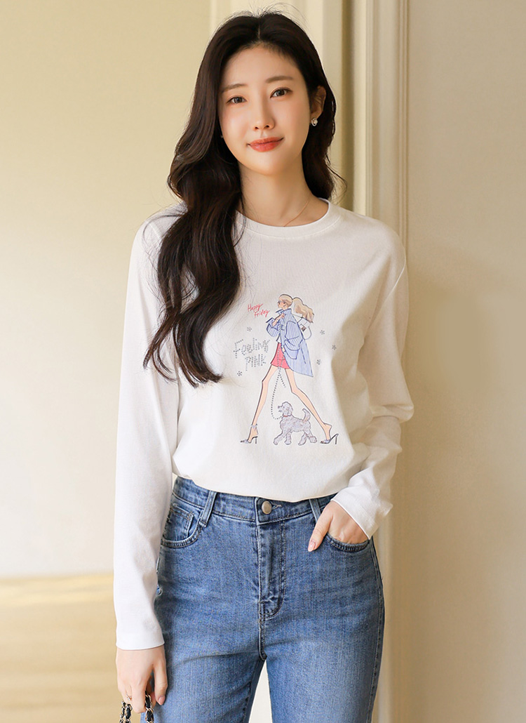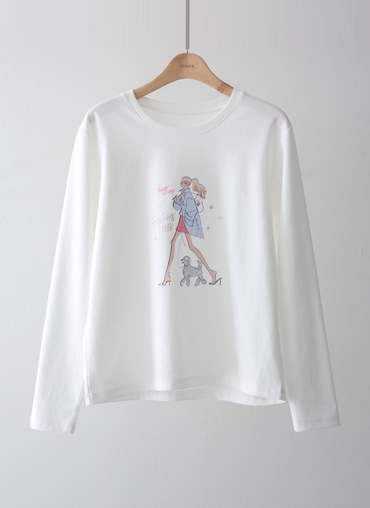 [LouisAngel] 레모네 힐링 워크 스트라이프 걸 프린팅 긴팔 라운드 티셔츠