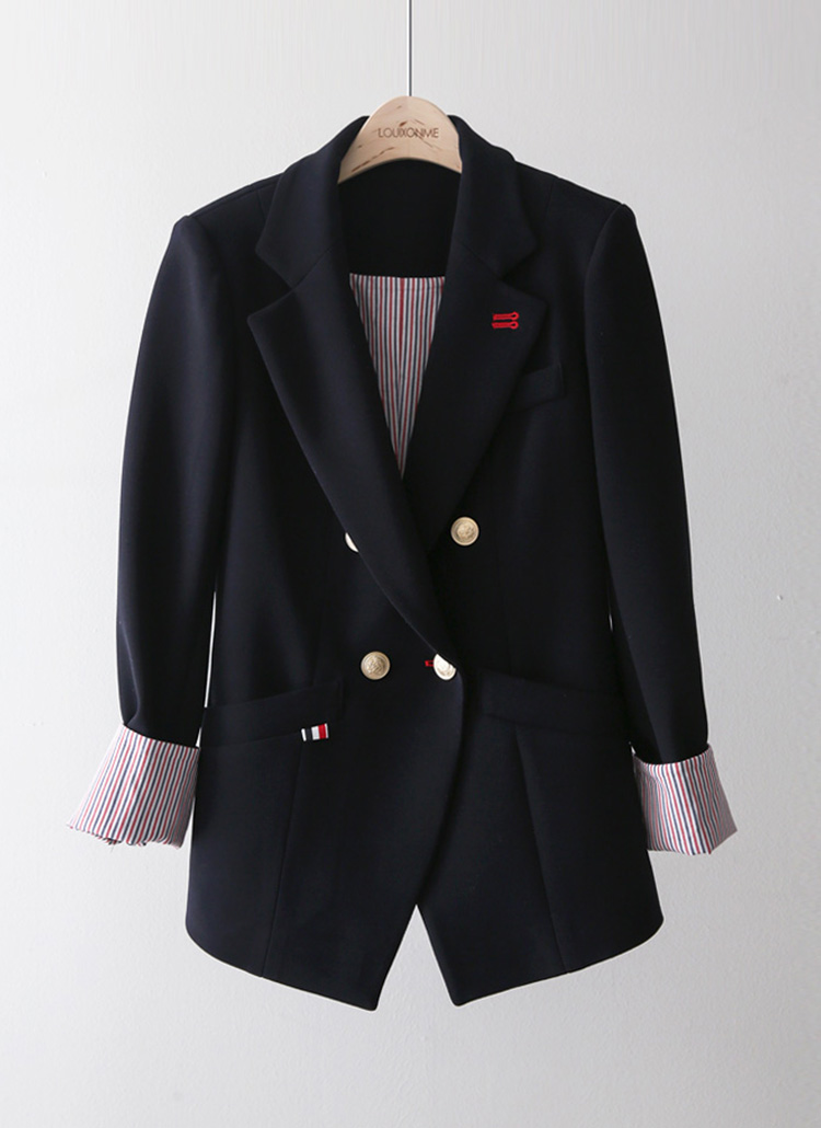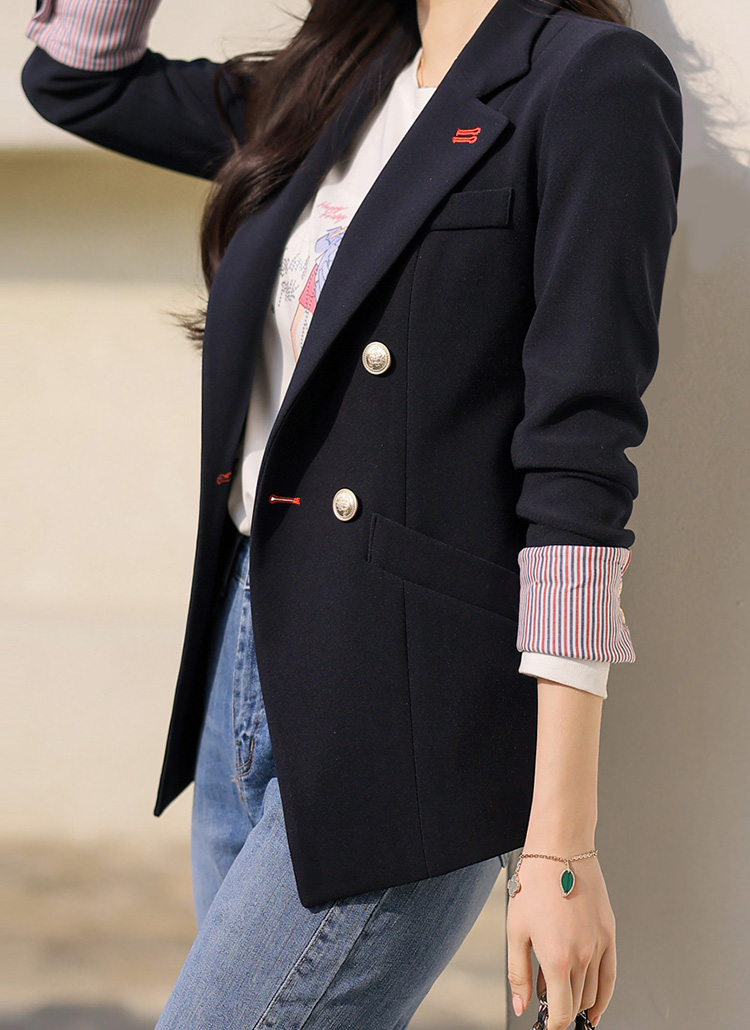 엣토미 소매 롤업 배색 완벽 슬림 테일러드 더블 자켓