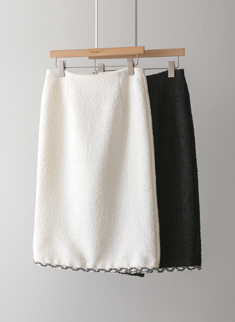 우아하고 세련된 분위기를 자연스럽게 연출하는 H라인 트위드 미디 스커트에요