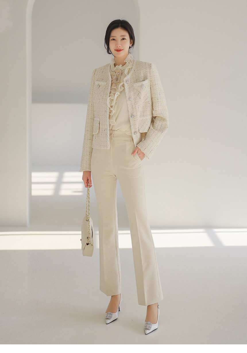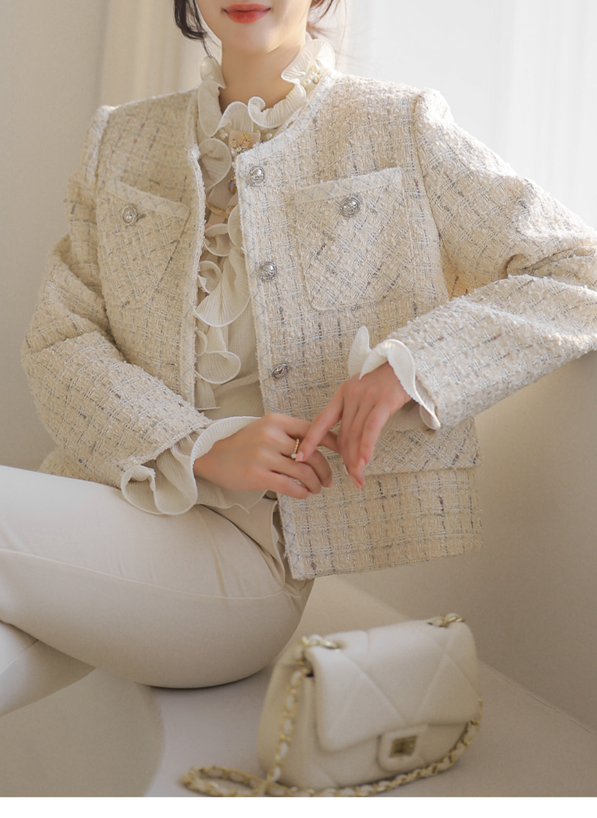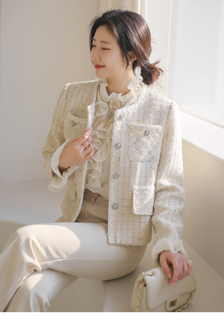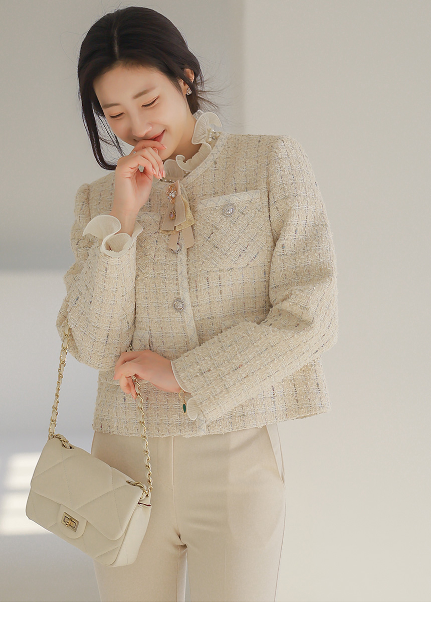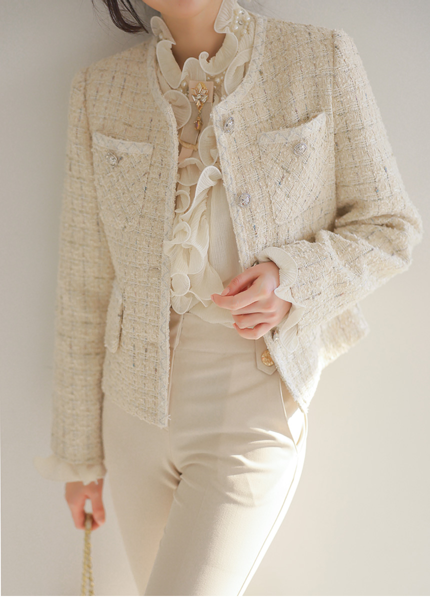한층 더 우아한 스타일을 완성하는 트위드 자켓이에요