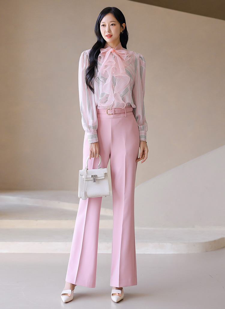 사랑스럽고 우아한 감성을 동시에 담아낸 쉬폰 배색 블라우스에요