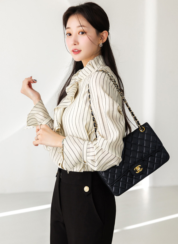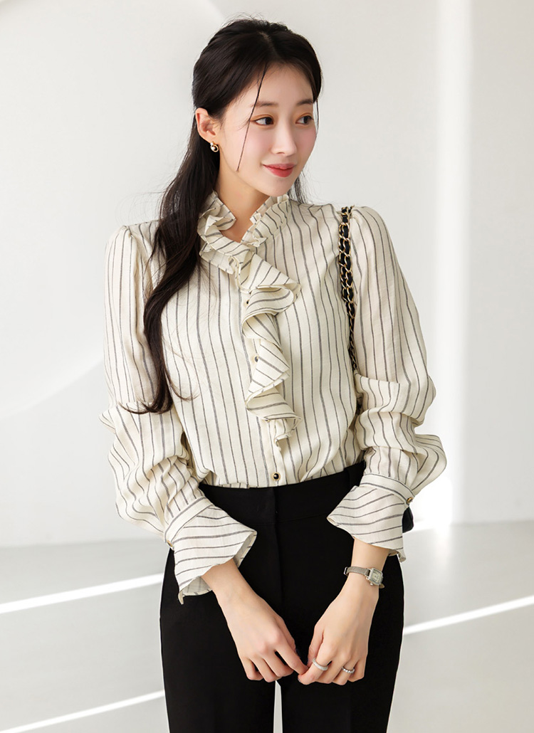루이스엔젤 특.제 스트라이프 러플 블라우스에요