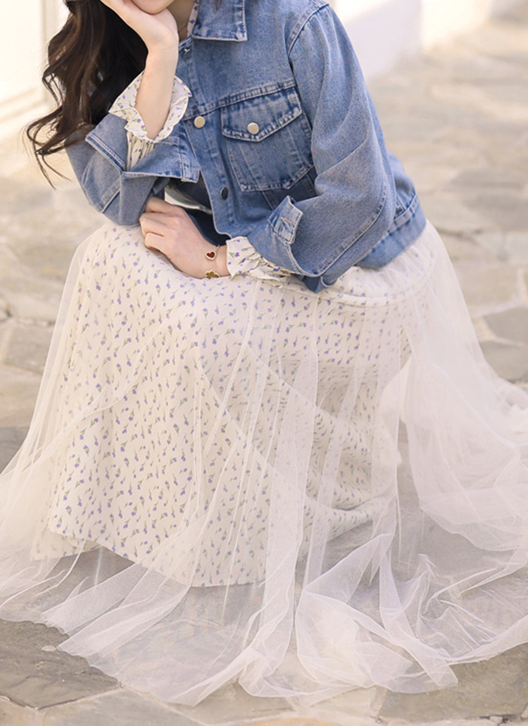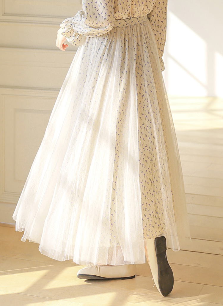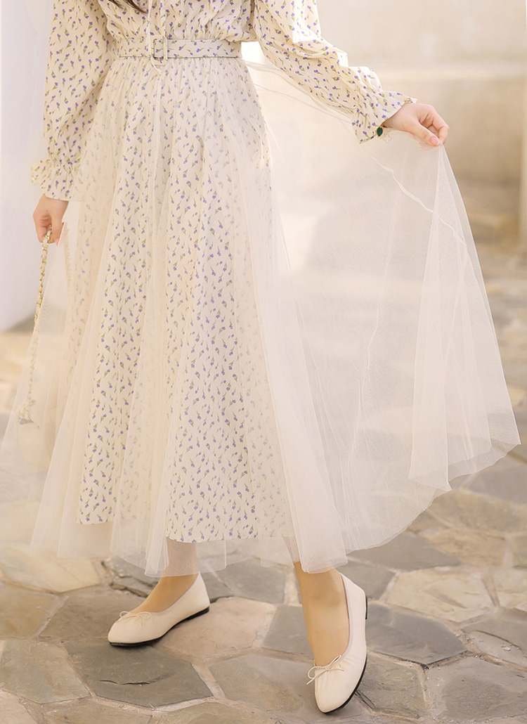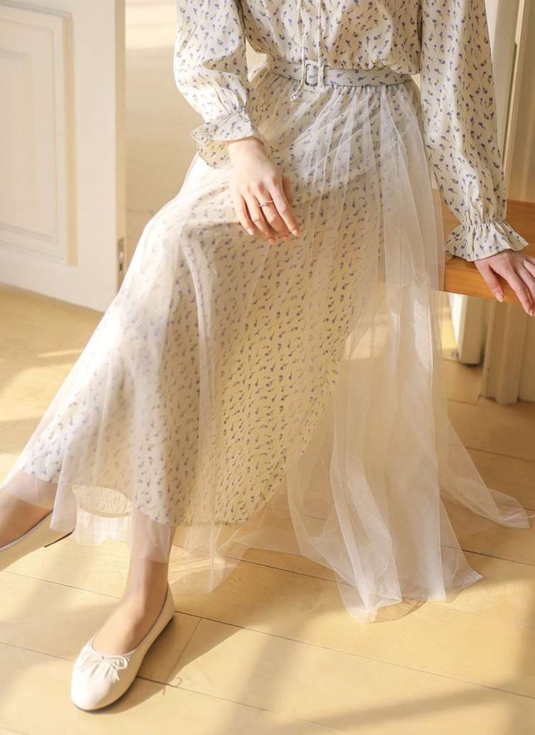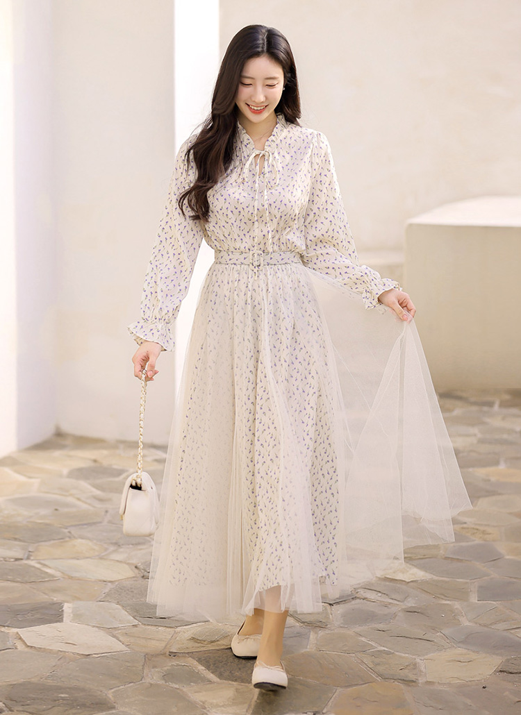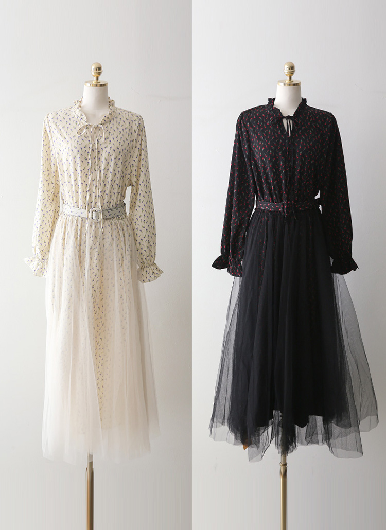 [기획특가] 모아 벨트SET 샤 레이스 레이어드 잔잔 미니 플라워 A라인 롱 플레어 원피스