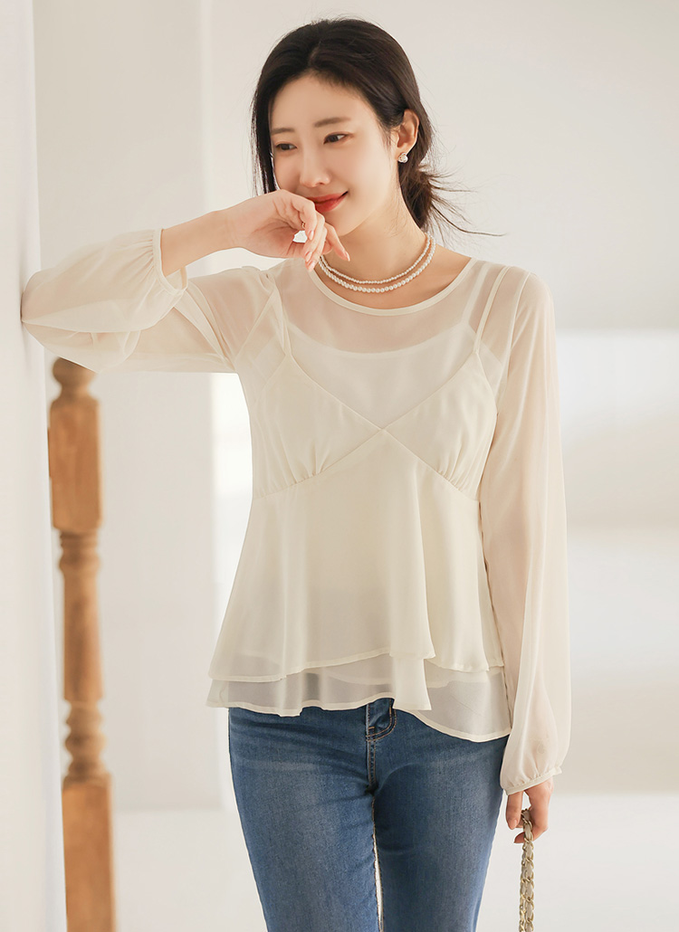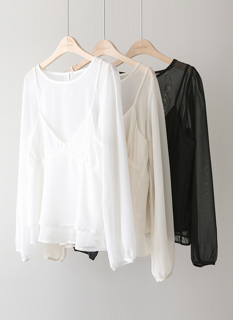 루아나 셔링 캉캉 뷔스티에 시스루 쉬폰 블라우스 투피스 세트