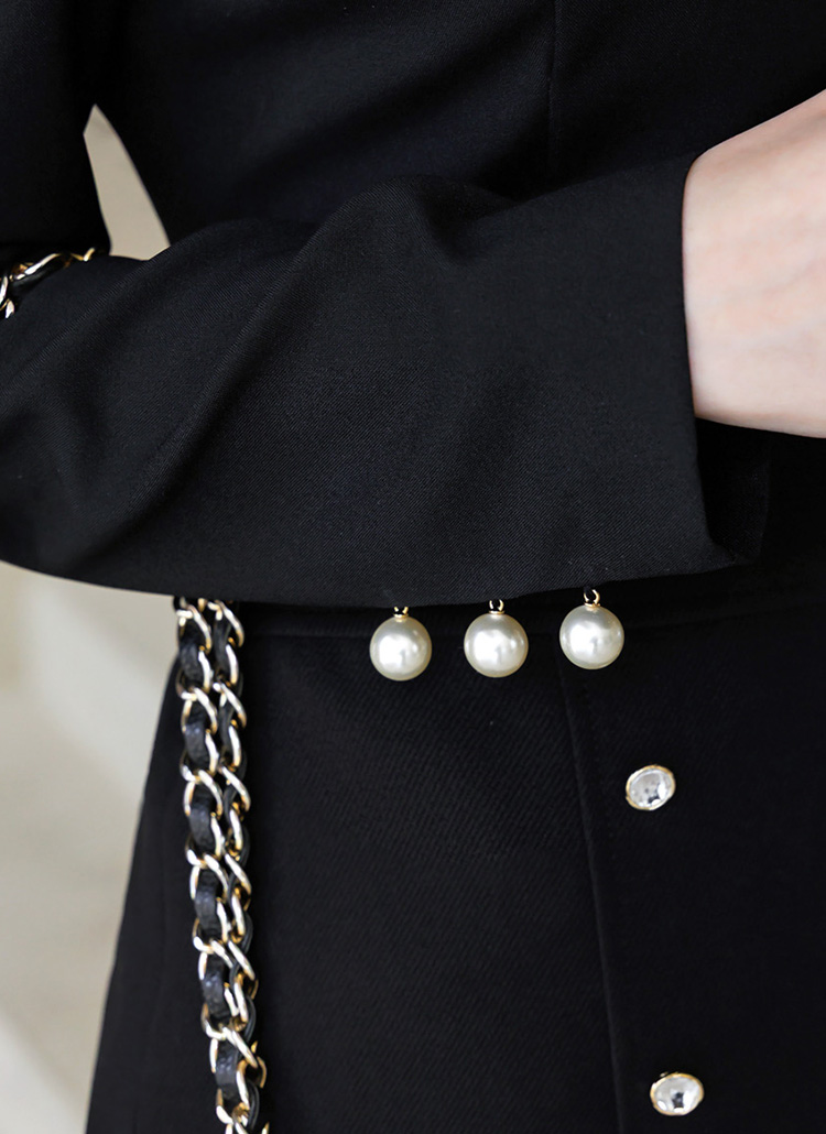 고급스럽게 더해진 큼직한 진주 장식이 한층 리치한 분위기를 완성하며