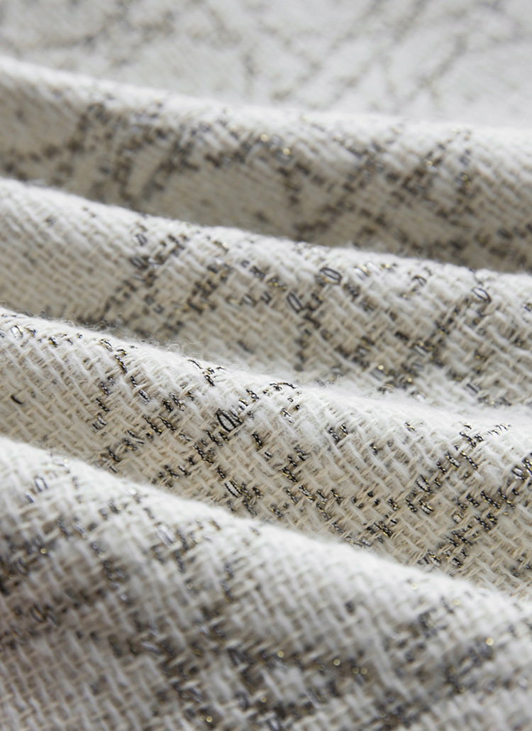 다이아 패턴의 체크 쟈가드가 더해진 트위드 소재로 제작되어