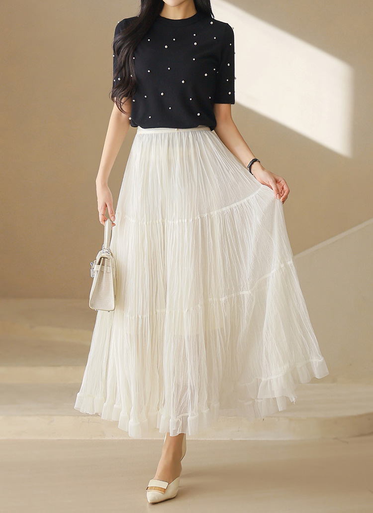 우아하고 드레시한 분위기를 선사하는 A라인 롱 플레어 스커트에요