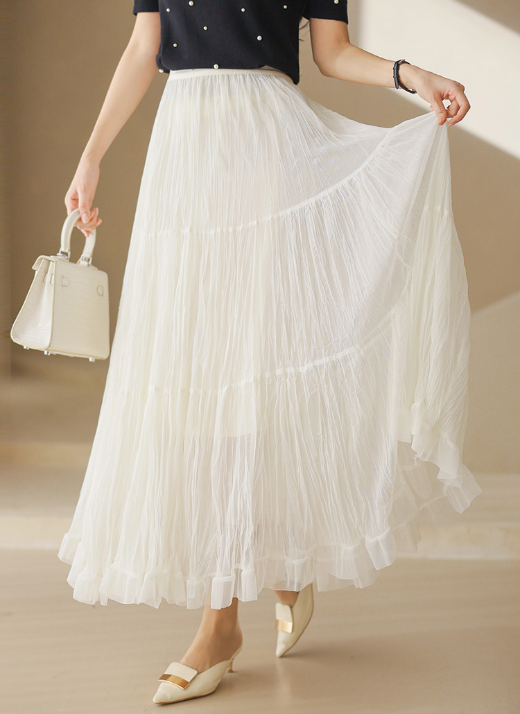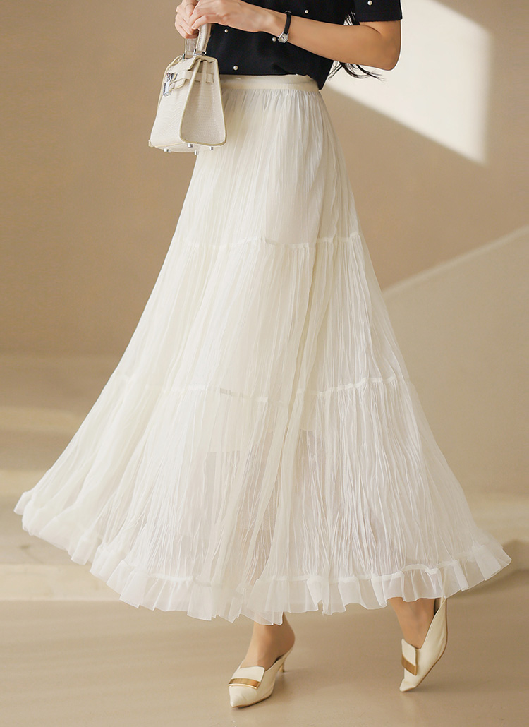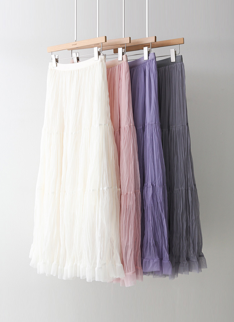 로미나 가볍게 살랑이는 티어드롭 샤레이스 플레어 A라인 롱 스커트