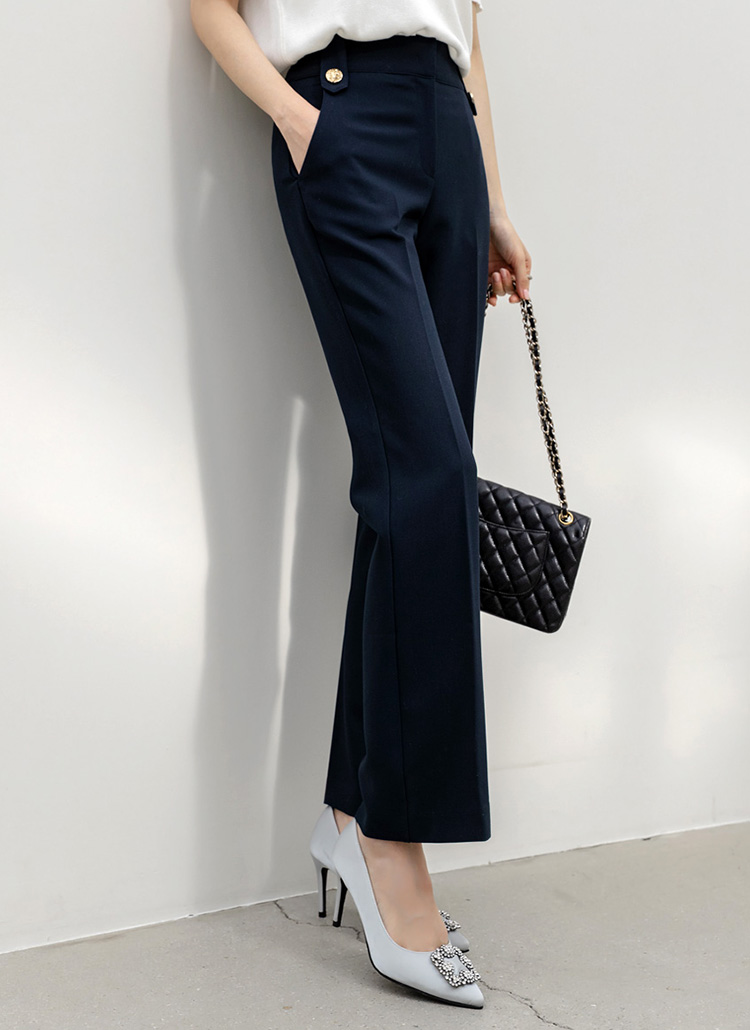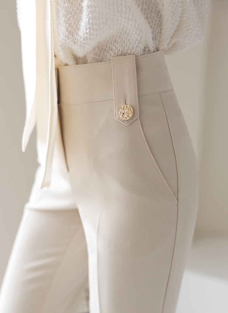 세미부츠컷이 깔끔하게 연출해주며 비조버튼으로 고급스러움이 느껴지는 슬랙스