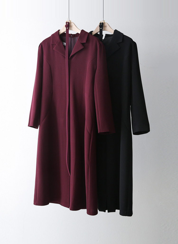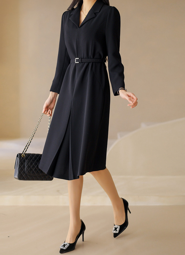 모디트 벨트SET 맞주름 핀턱 테일러드 카라 A라인 미디 원피스