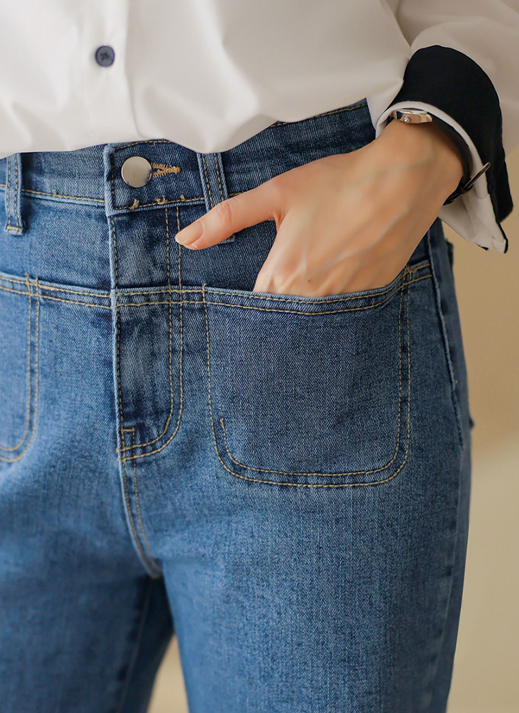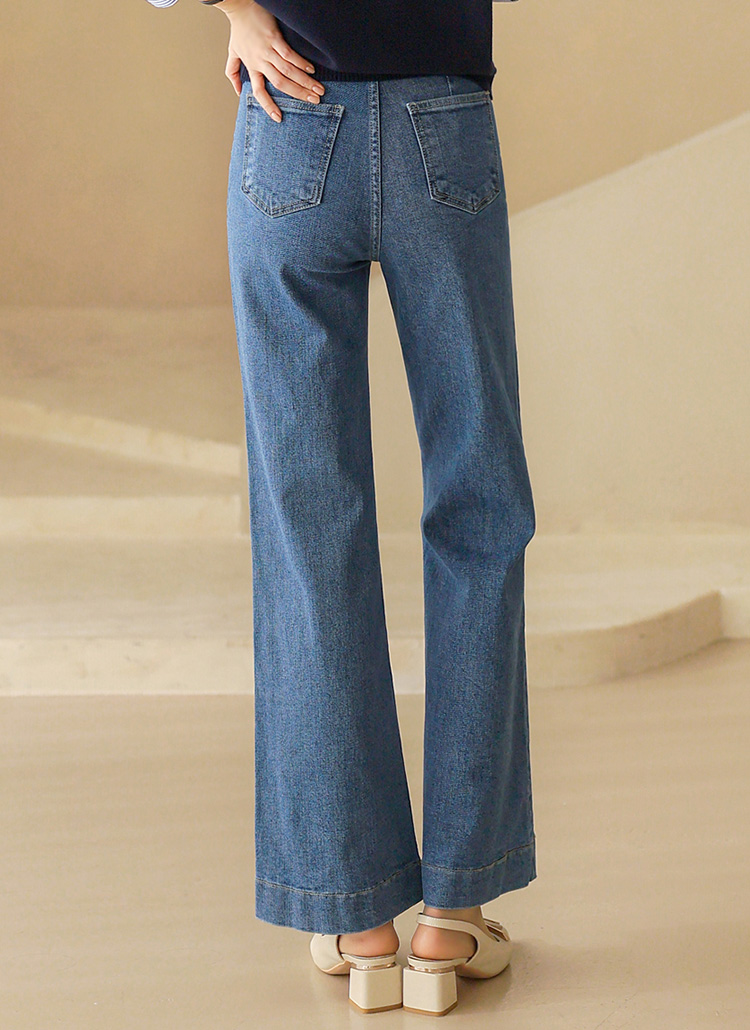브루엘 히든밴딩 절개 디테일 앞 포켓 세미 와이드 데님 팬츠