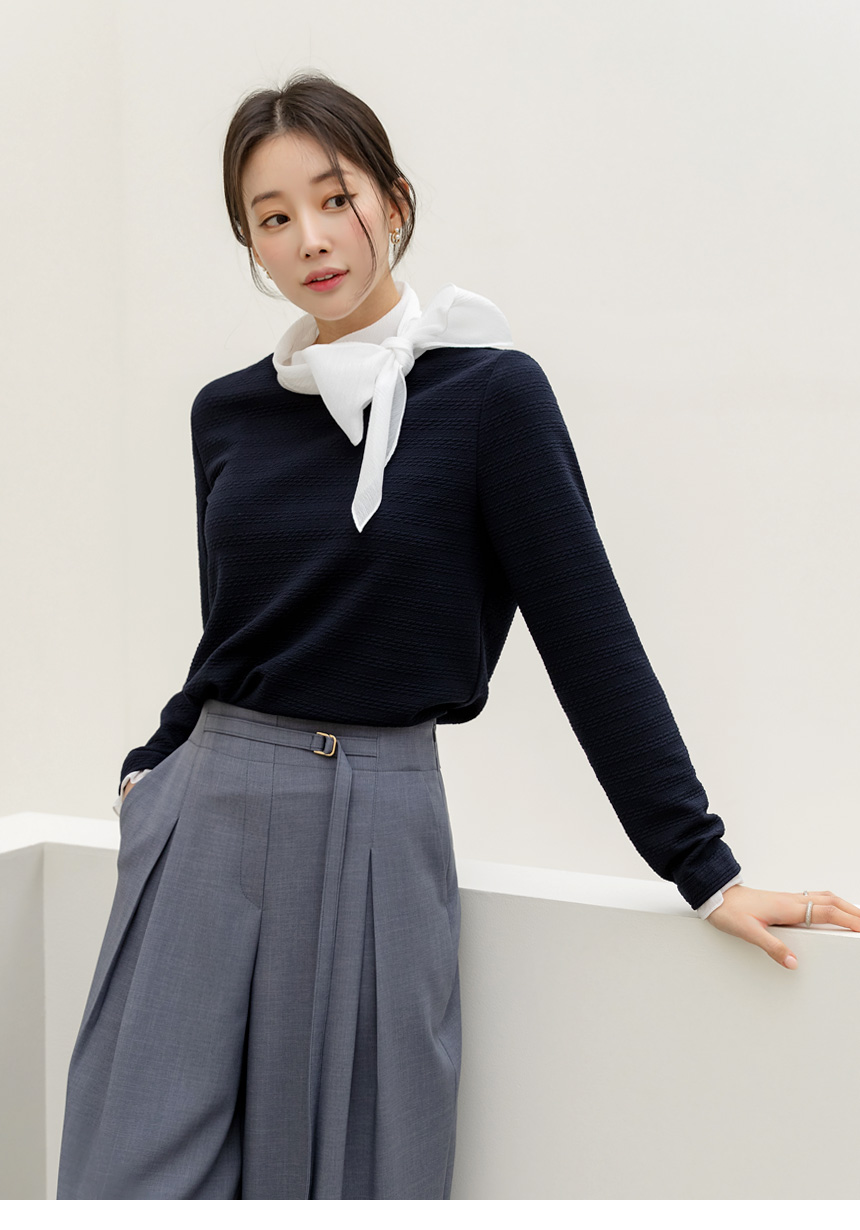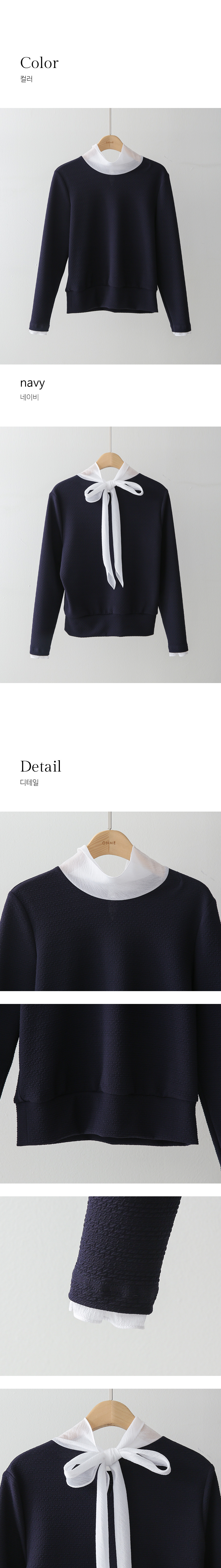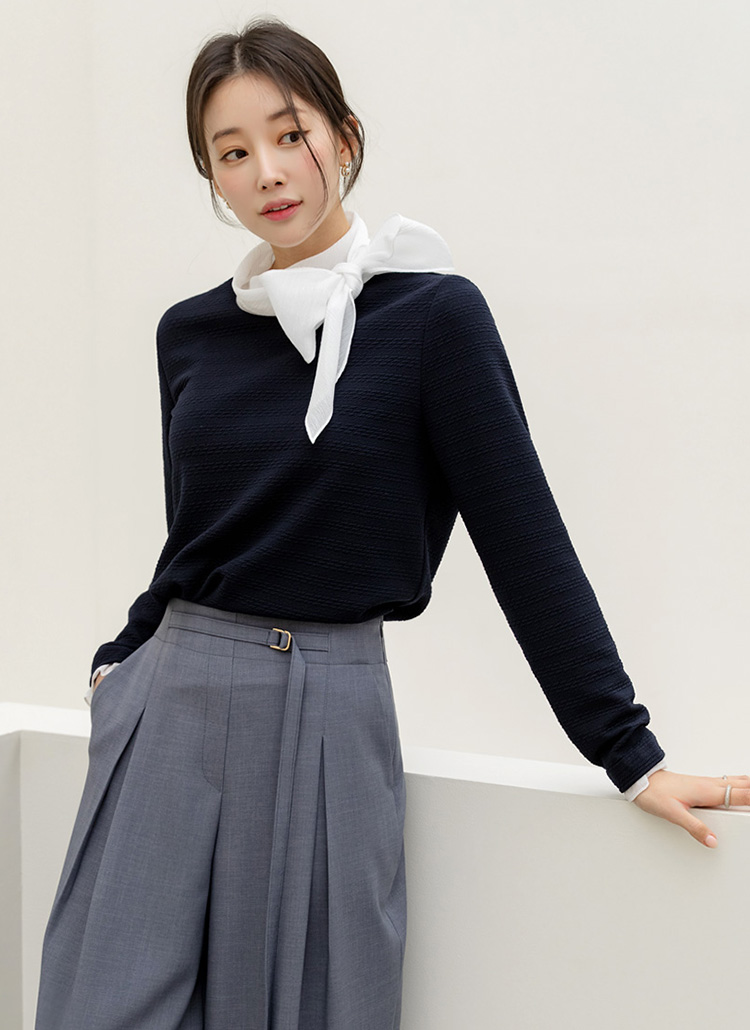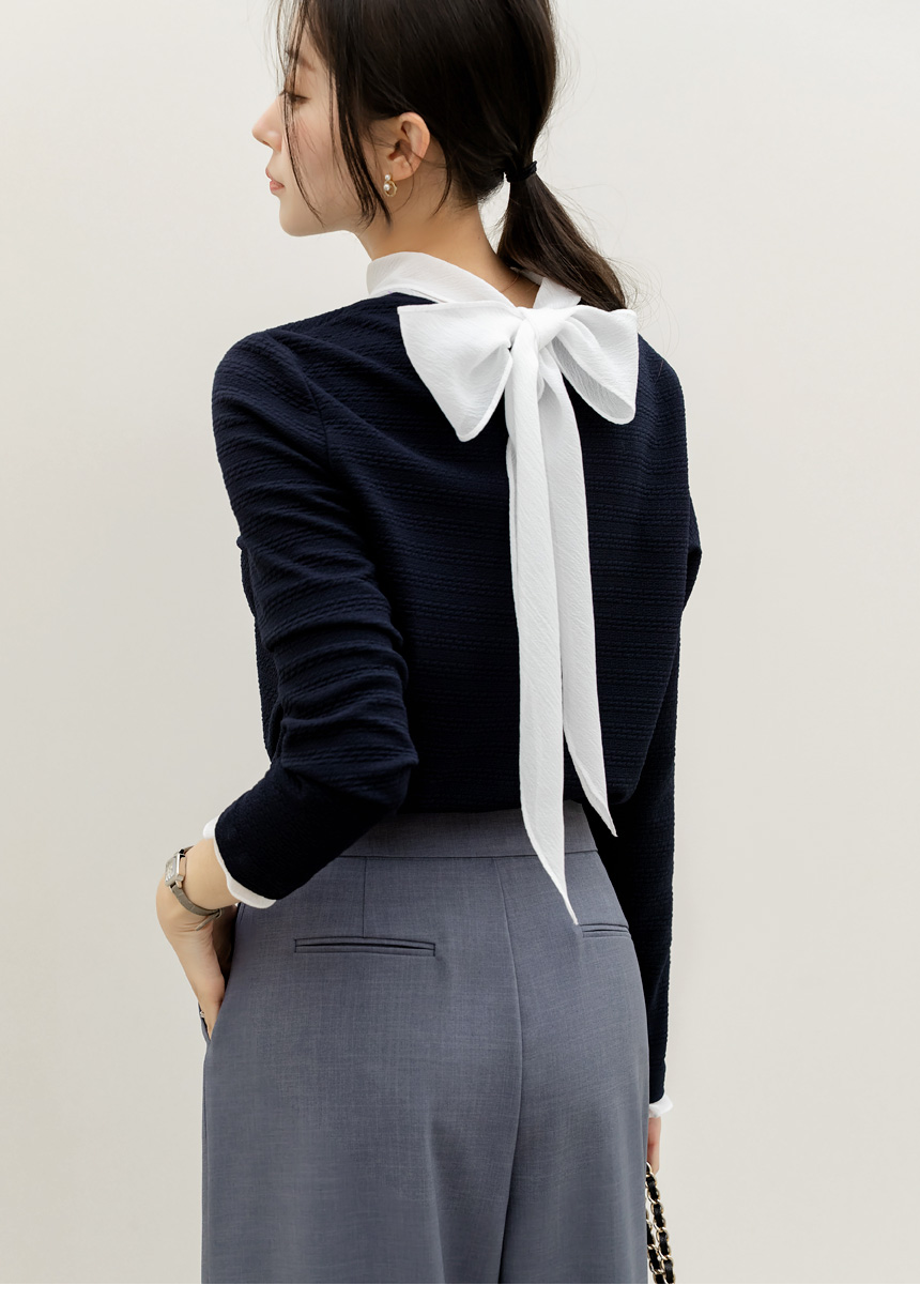 [LouisAngel] 헤안느 쉬폰 배색 리본 타이 넥 쟈가드 블라우스 티