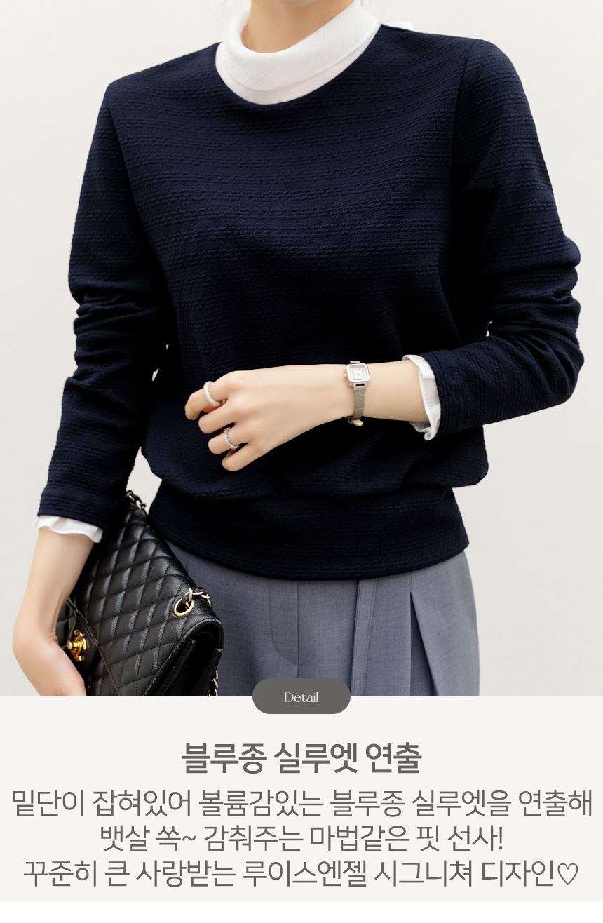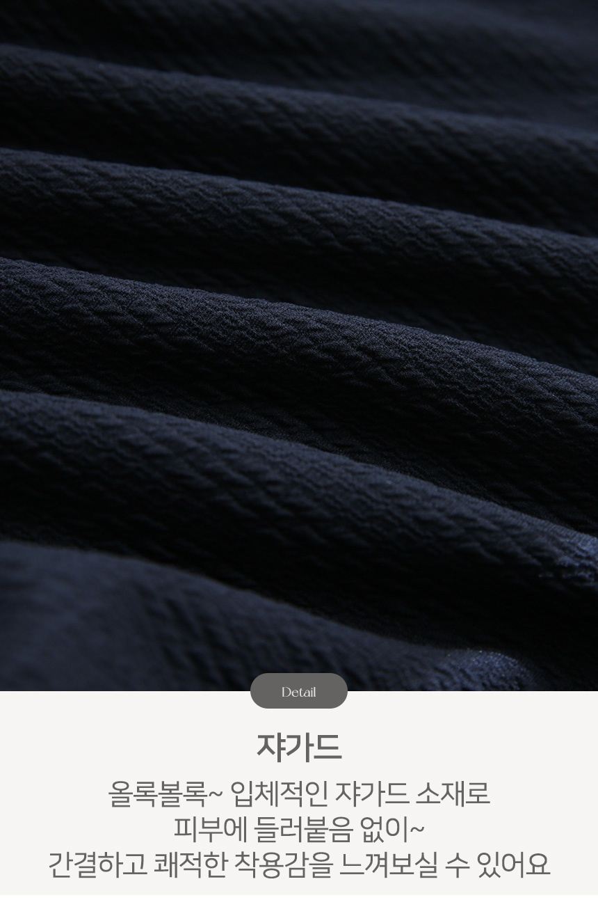 몸판은 올록볼록 입체감이 살아있는 자가드 소재로 제작되어