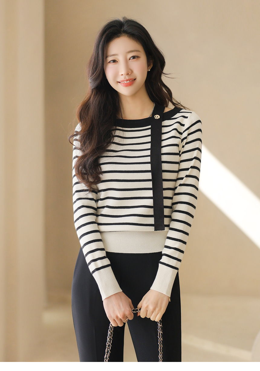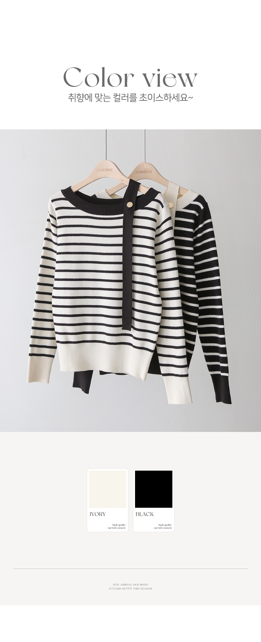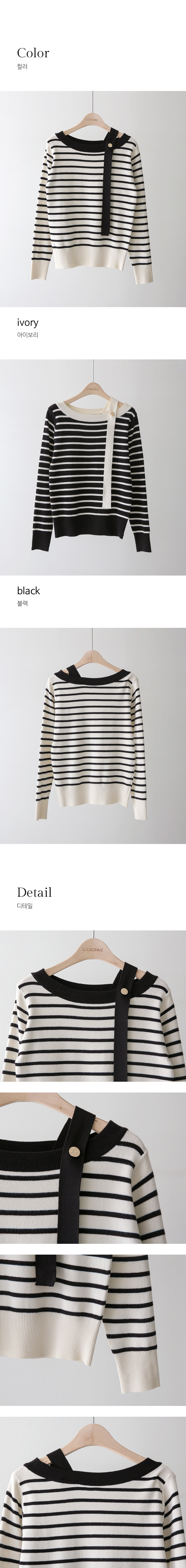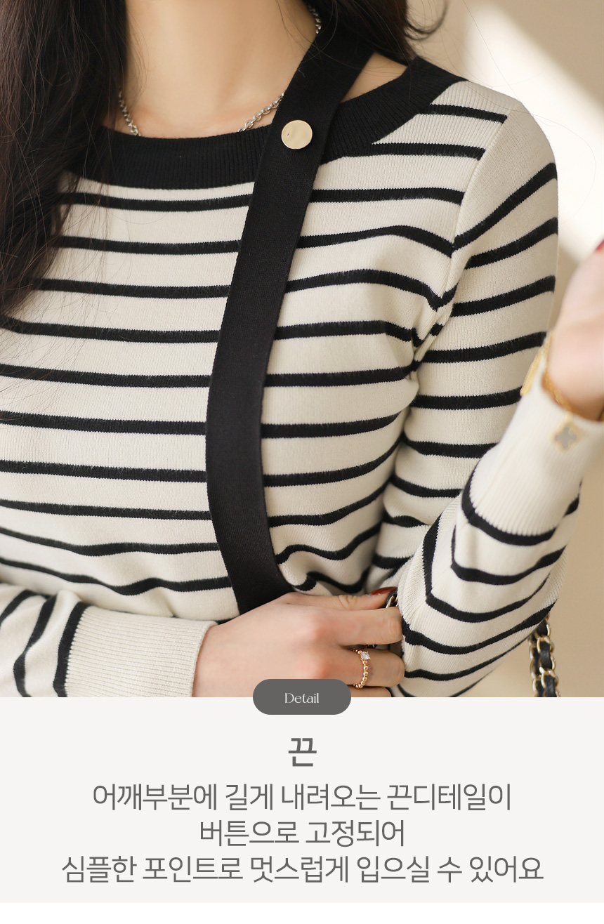로베드 어깨 배색 리본 스트라이프 라운드 니트