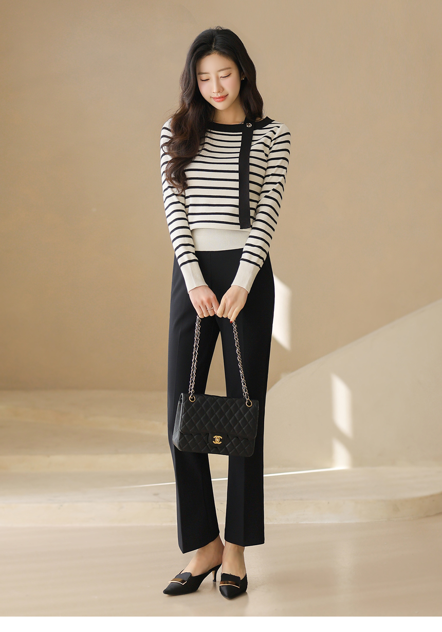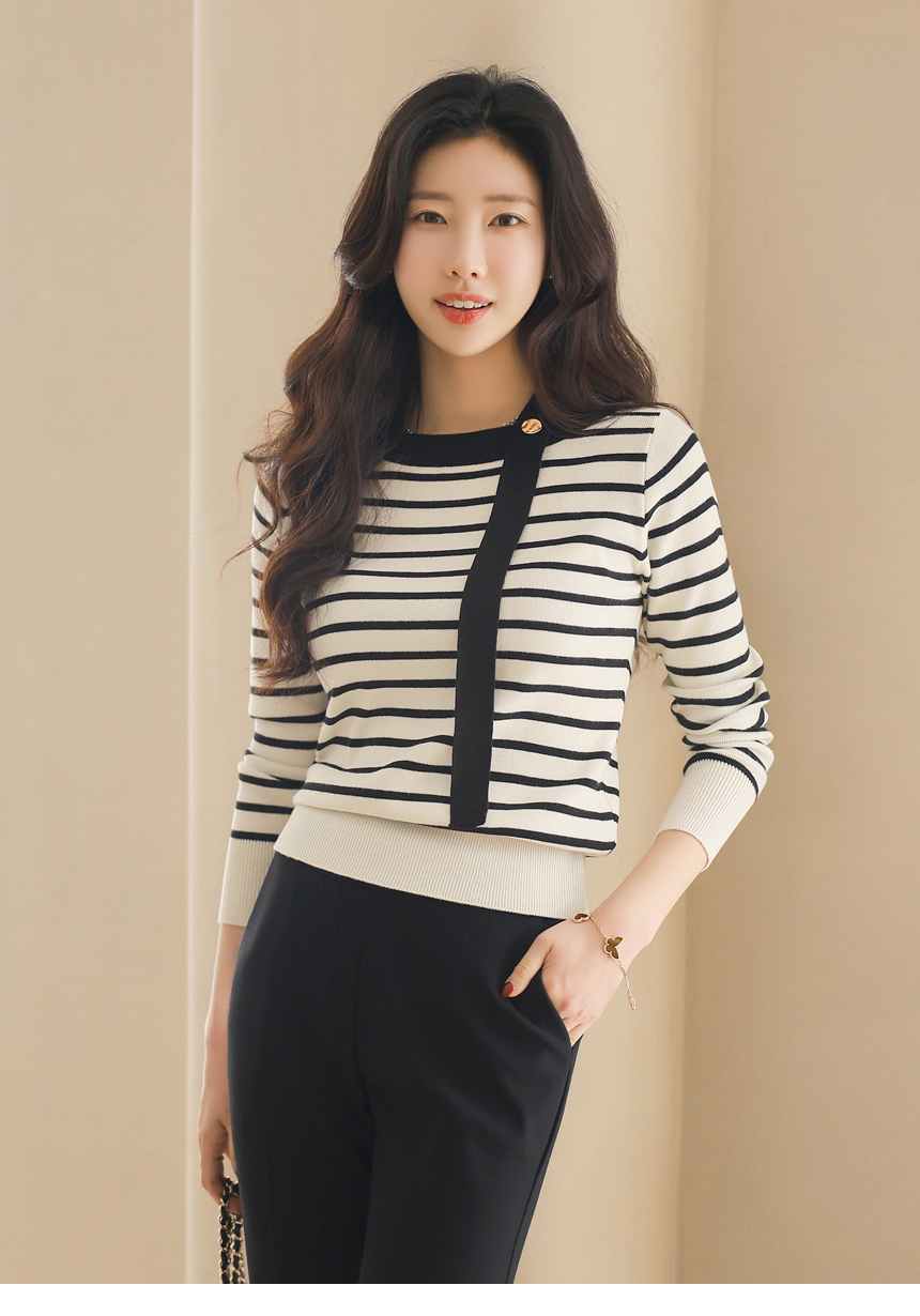 감각적이면서도 세련된 데일리 스타일을 완성해주는 스트라이프 니트에요