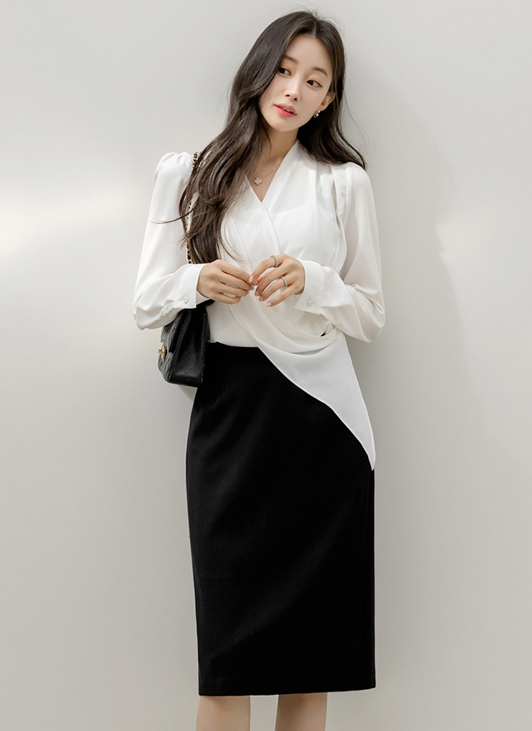 한층 더 우아하고 세련된 분위기를 완성하는 랩 블라우스에요