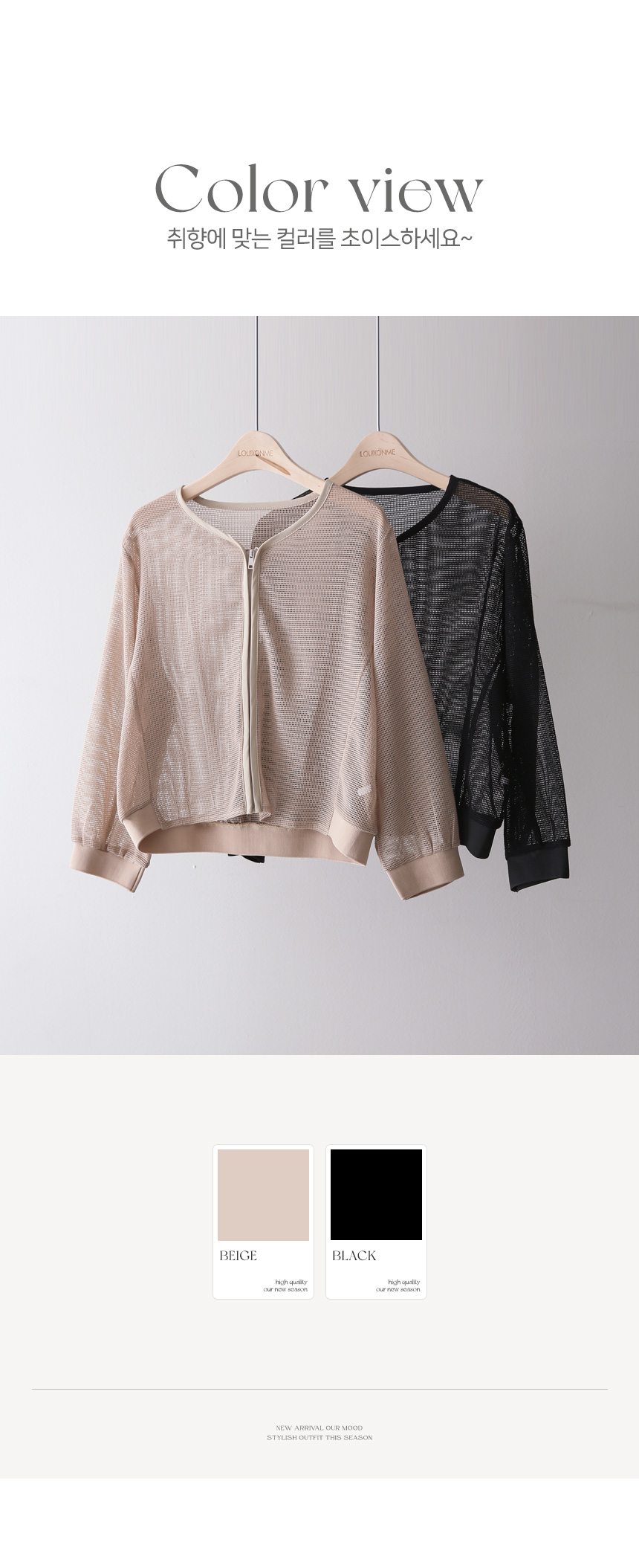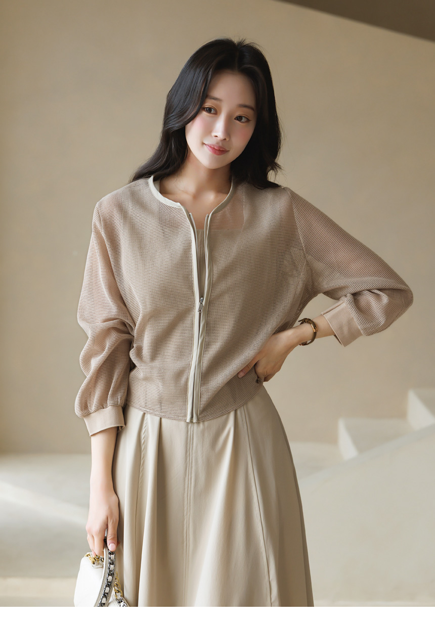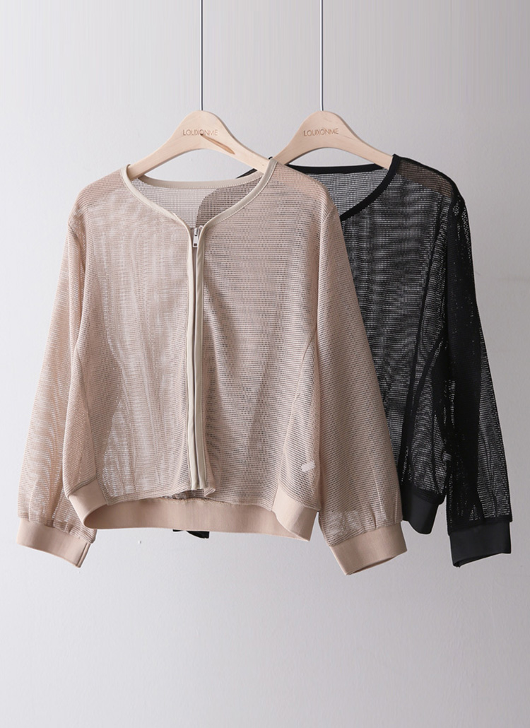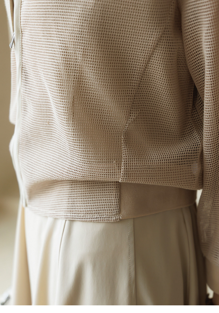 메쉬 시스루 집업 자켓이에요