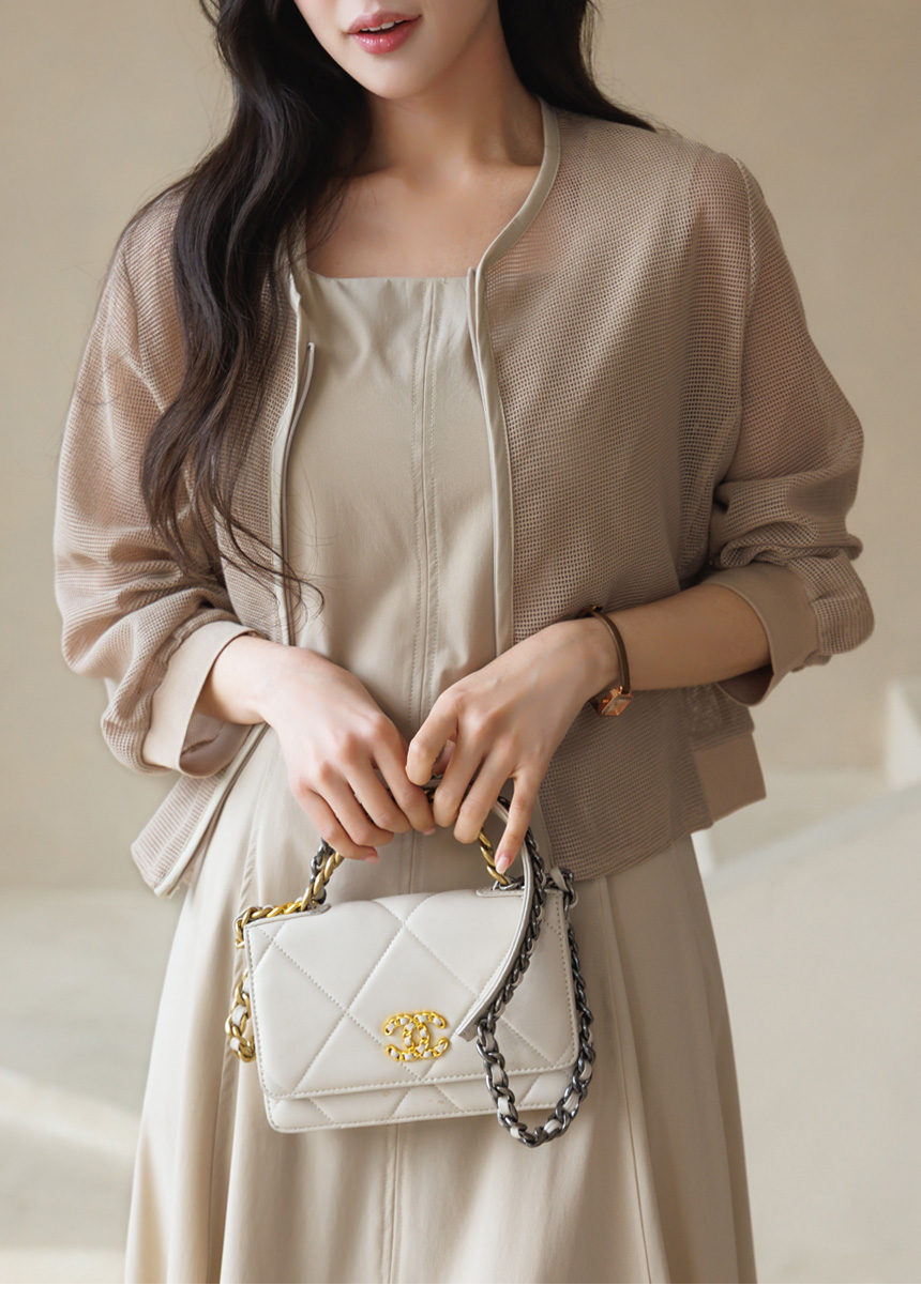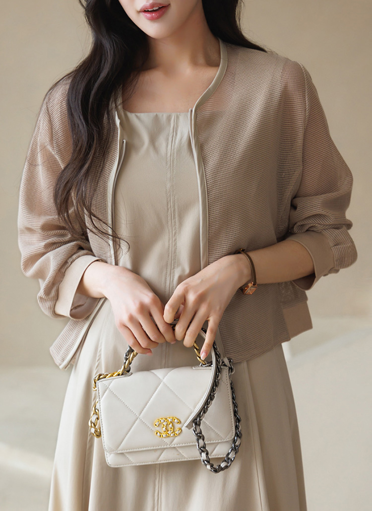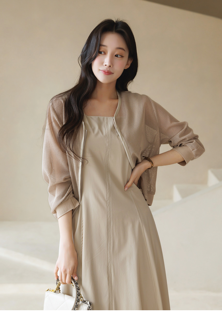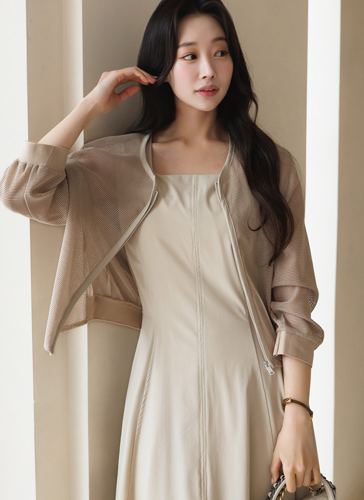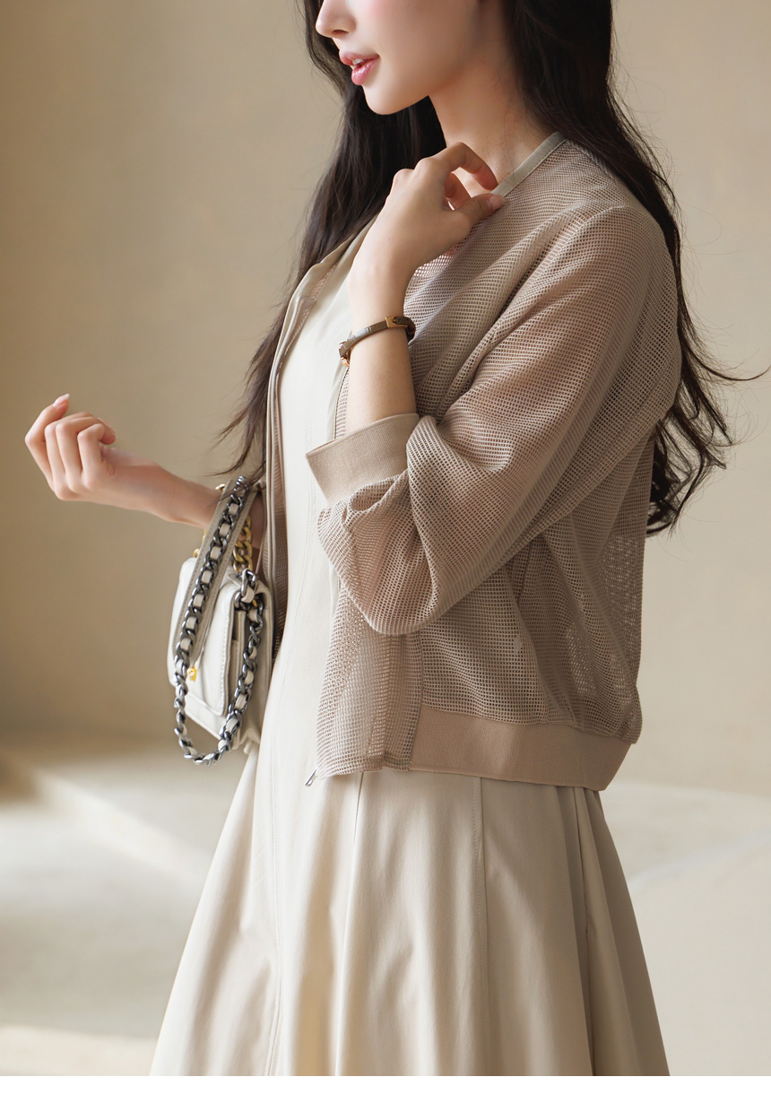 메쉬 시스루 집업 자켓이에요