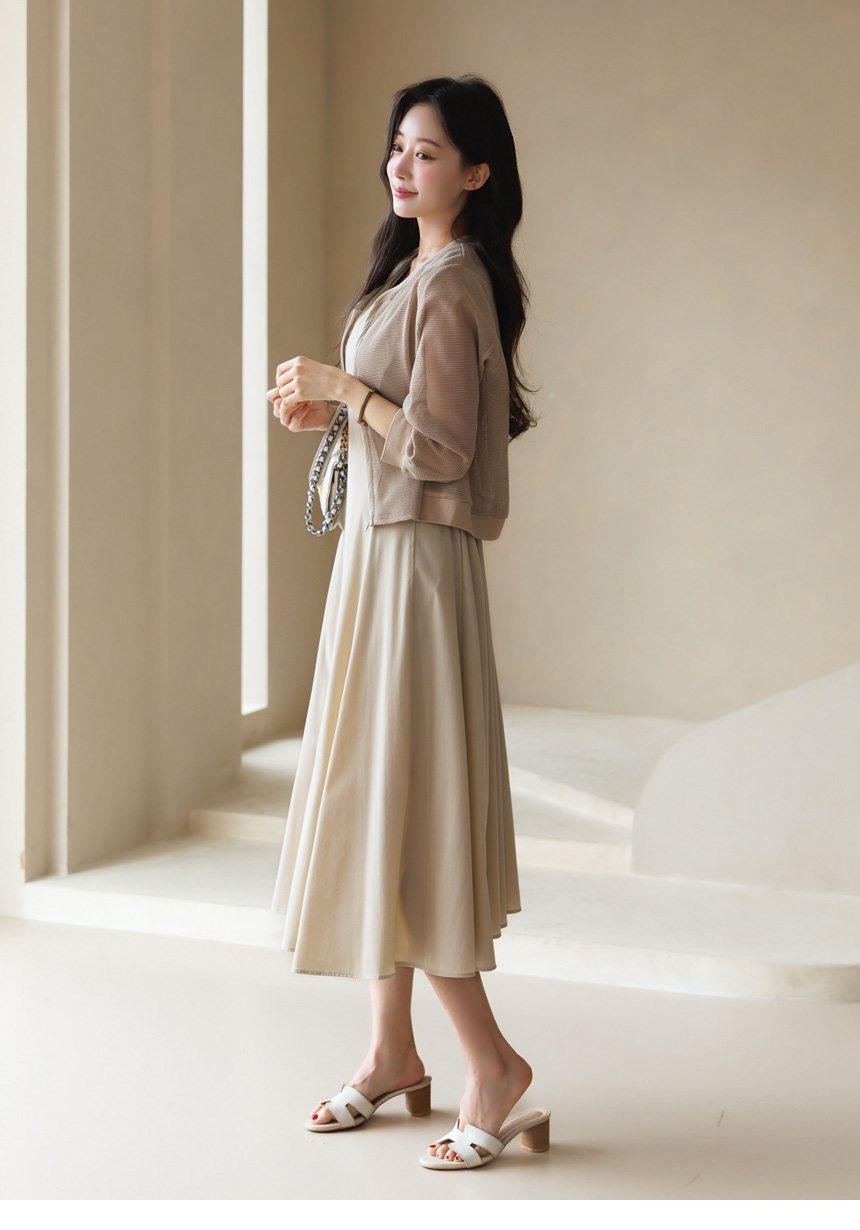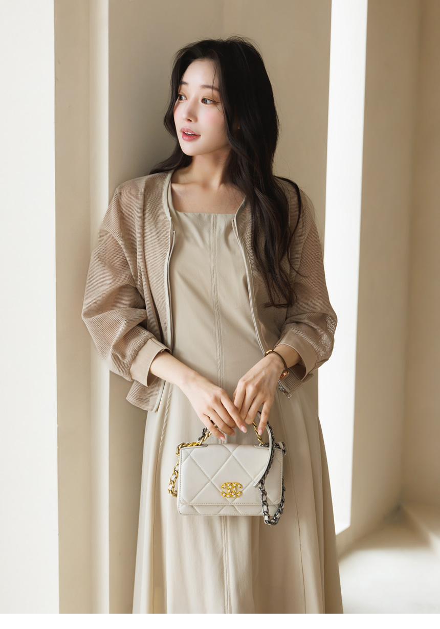 [Theonme] 그린드 메쉬 망사 밑단 시보리 밴딩 집업 자켓