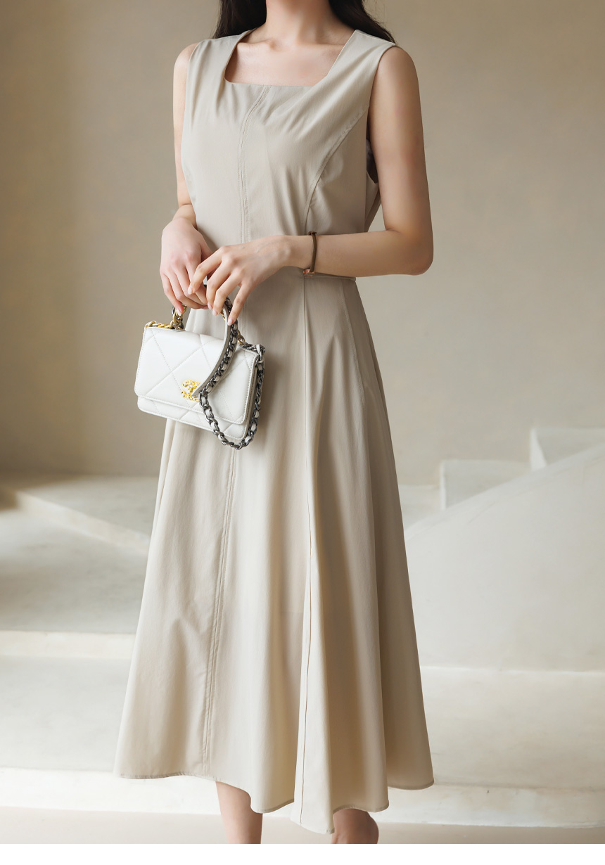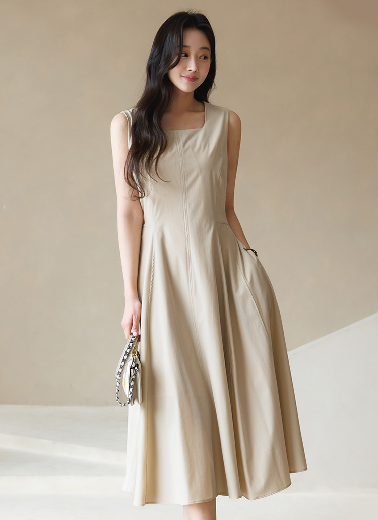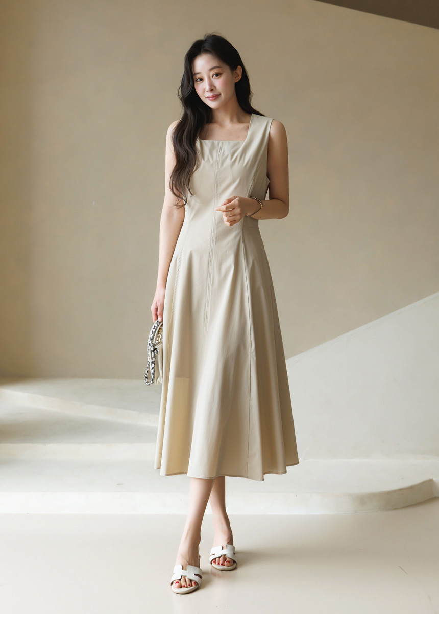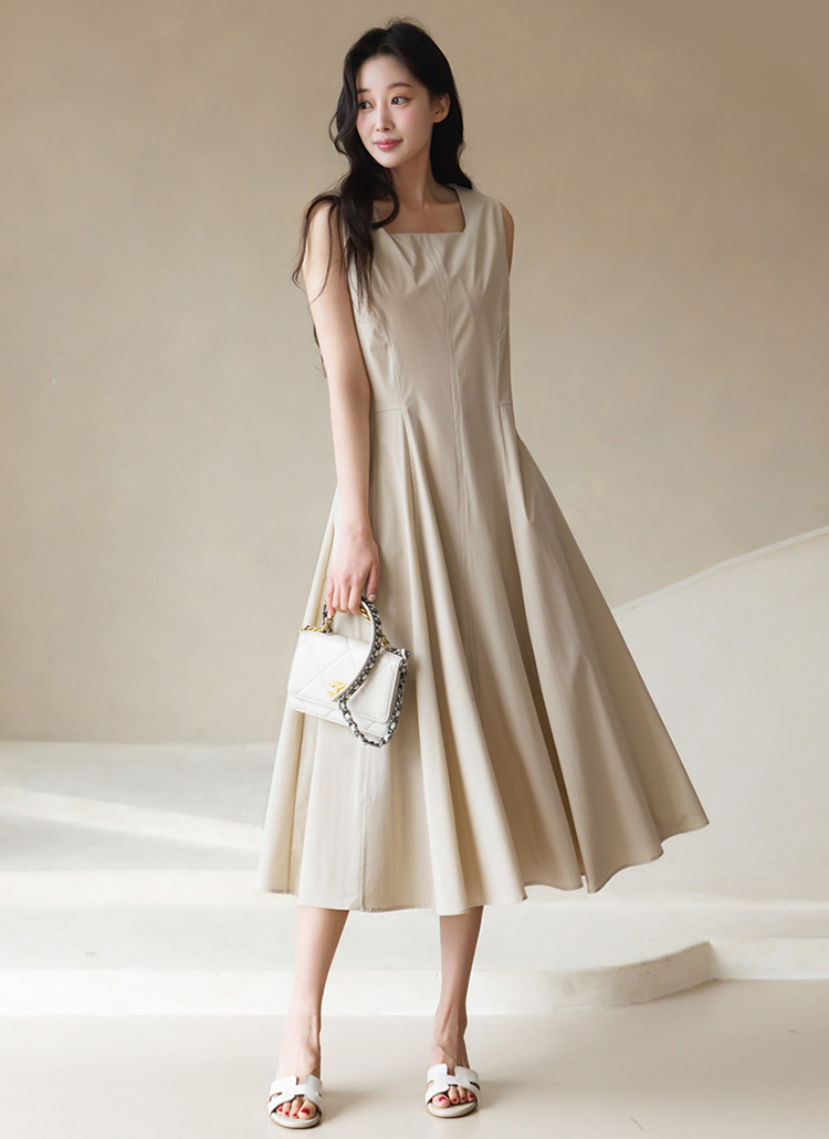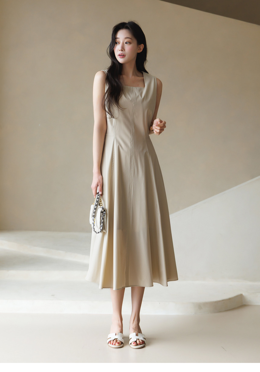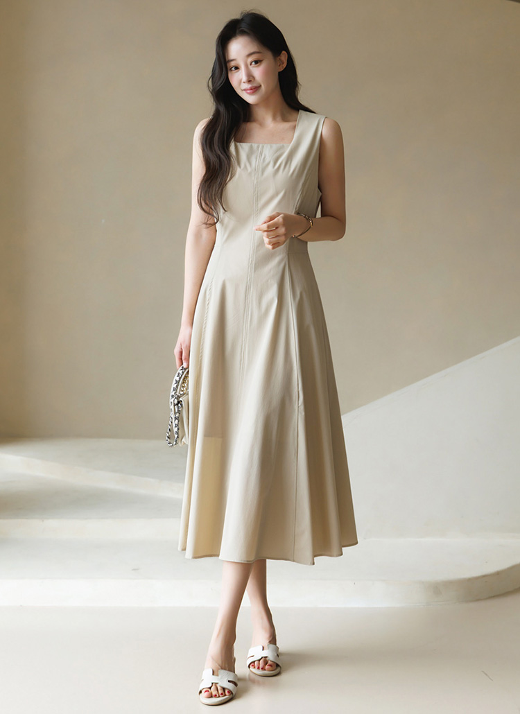 [Theonme] 그린드 백 밴딩 A라인 플레어 뷔스티에 원피스