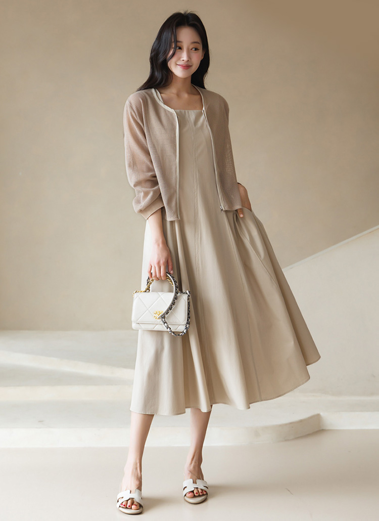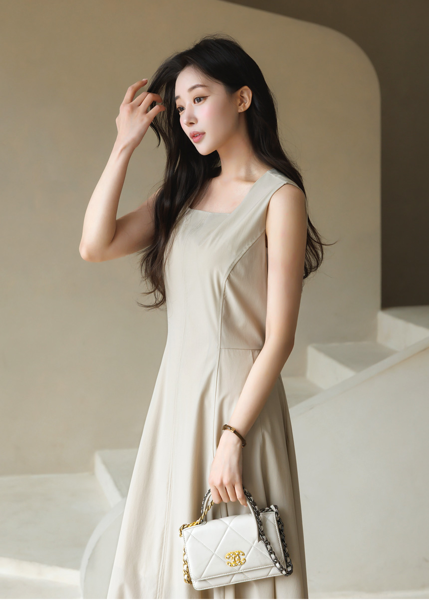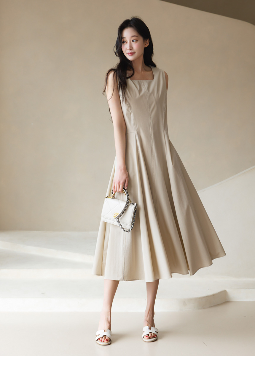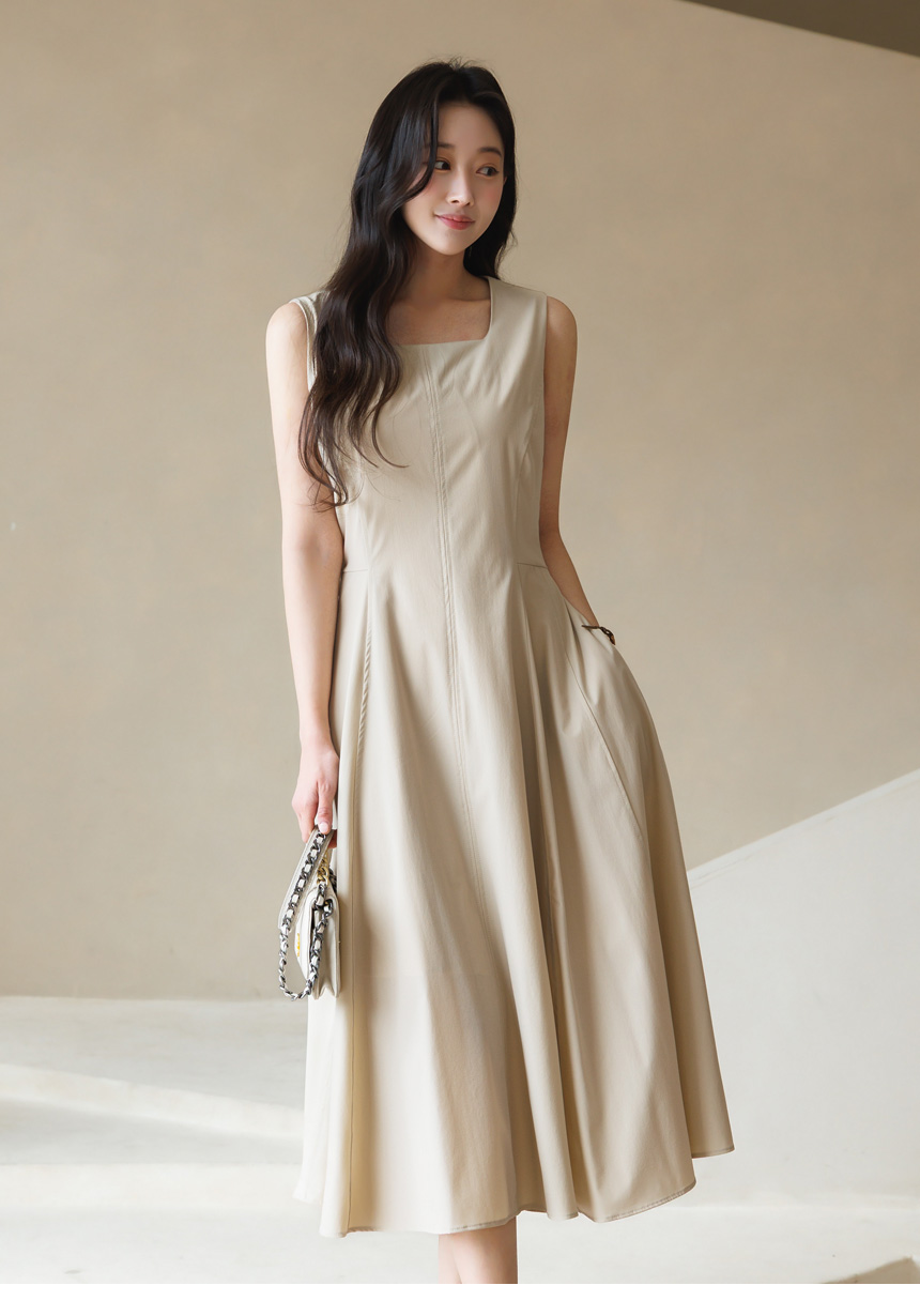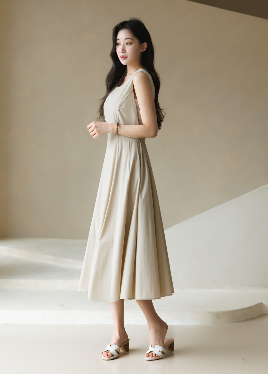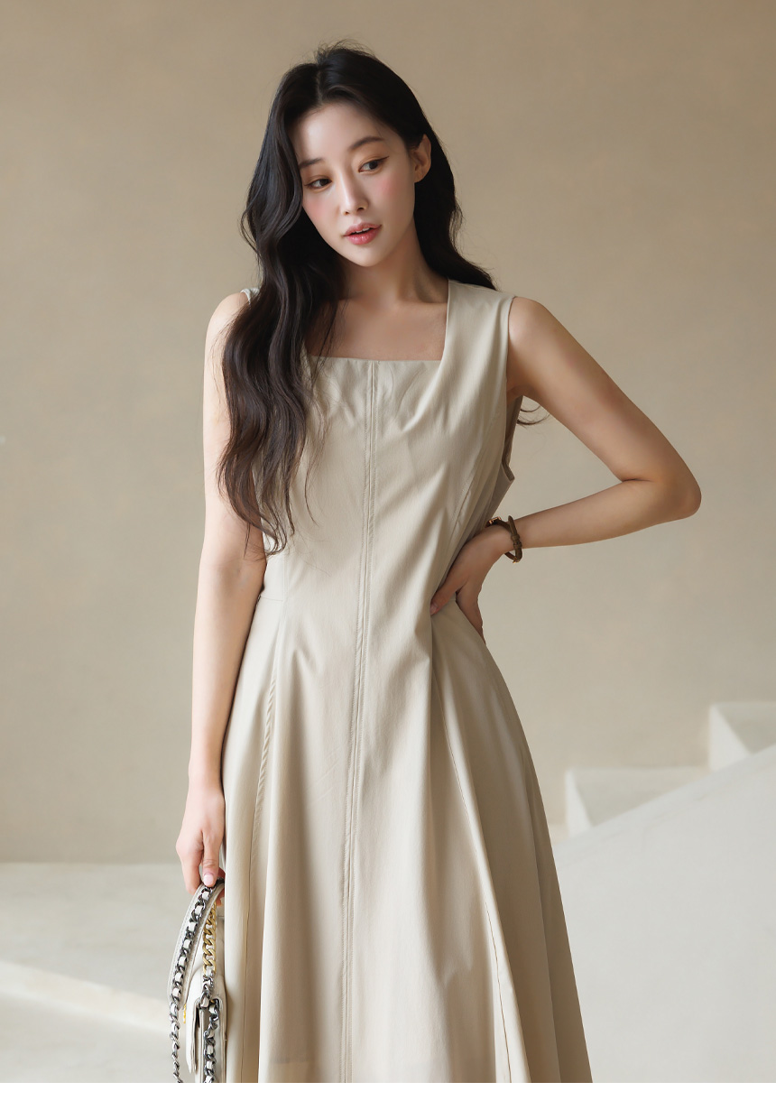 [Theonme] 그린드 백 밴딩 A라인 플레어 뷔스티에 원피스