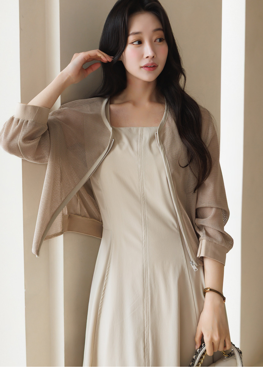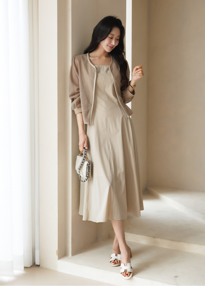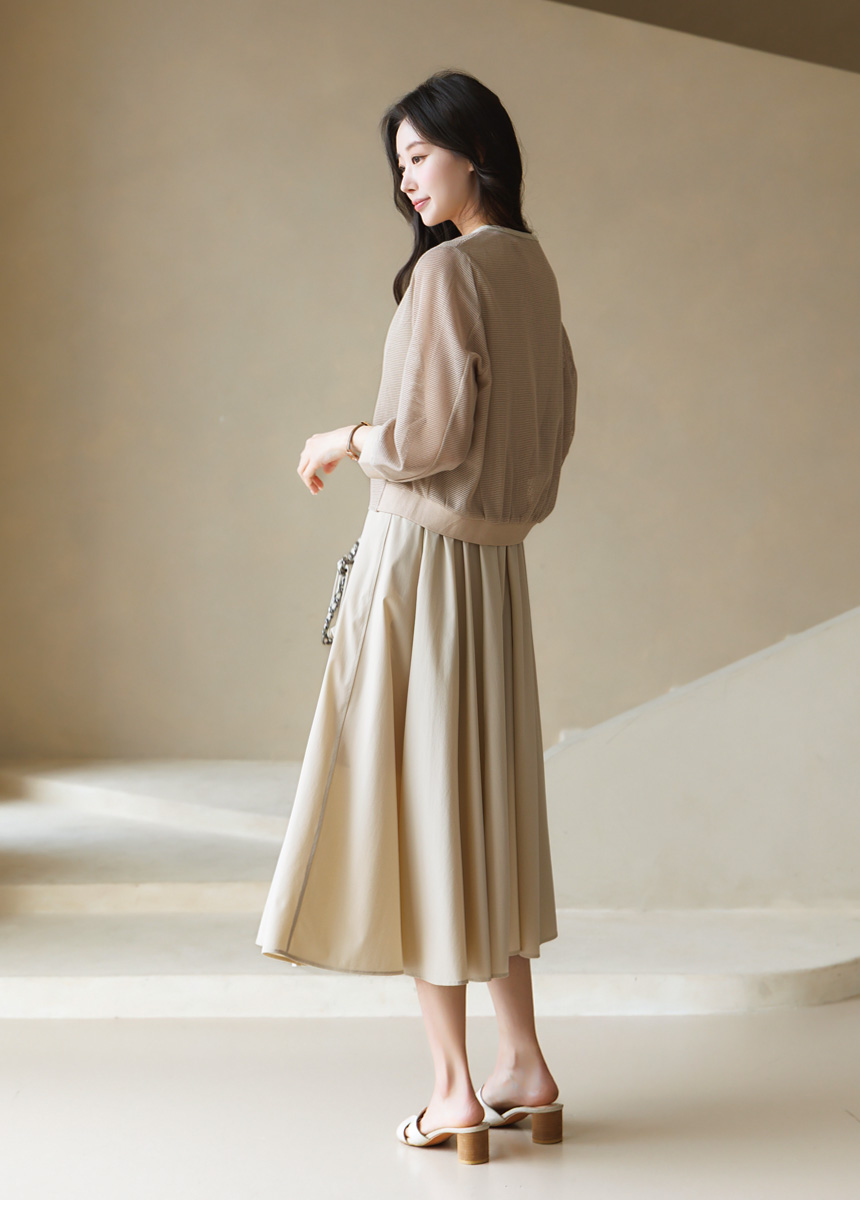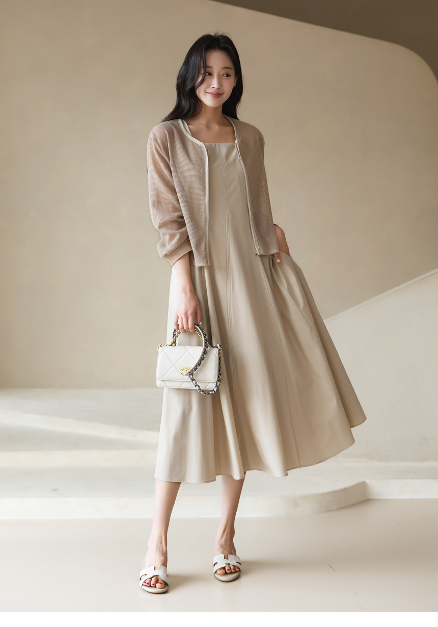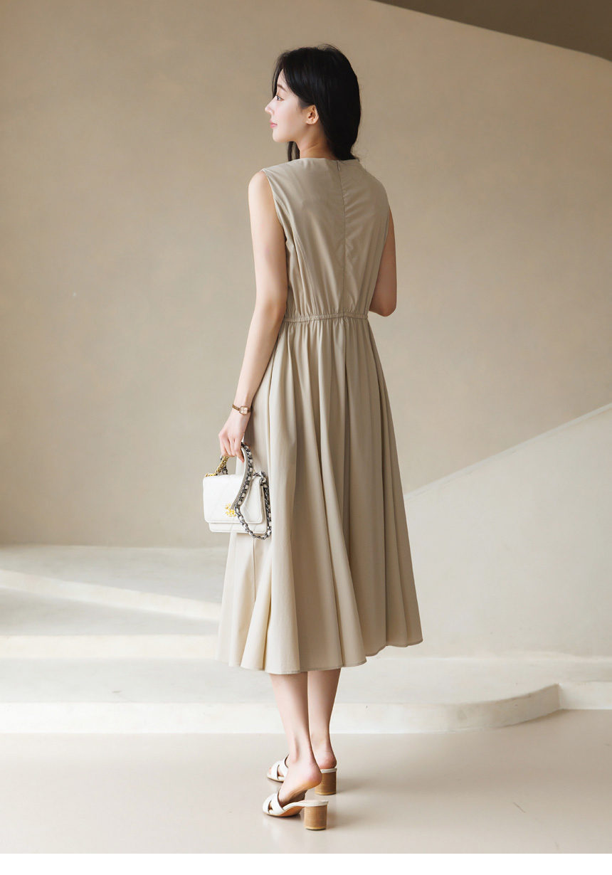 [Theonme] 그린드 백 밴딩 A라인 플레어 뷔스티에 원피스