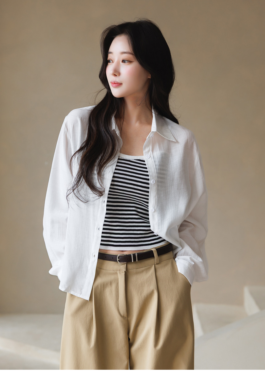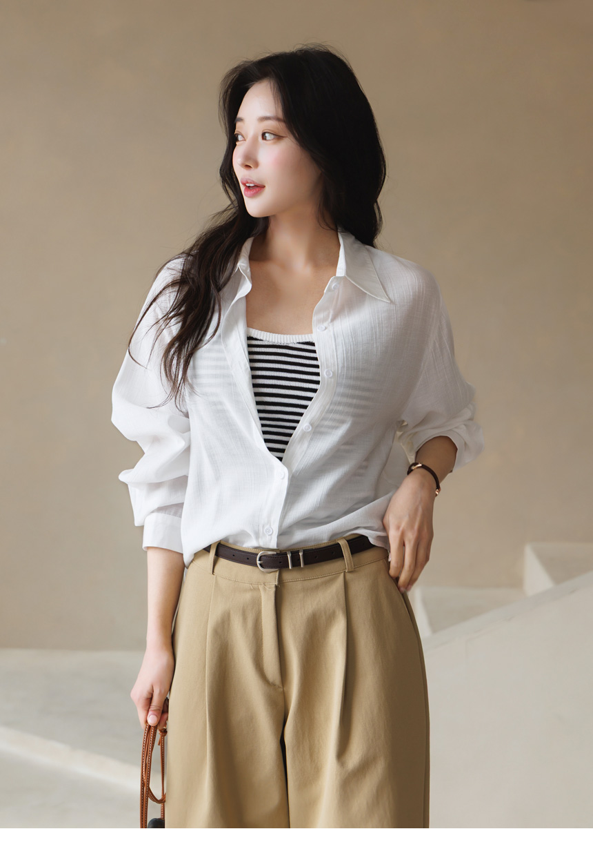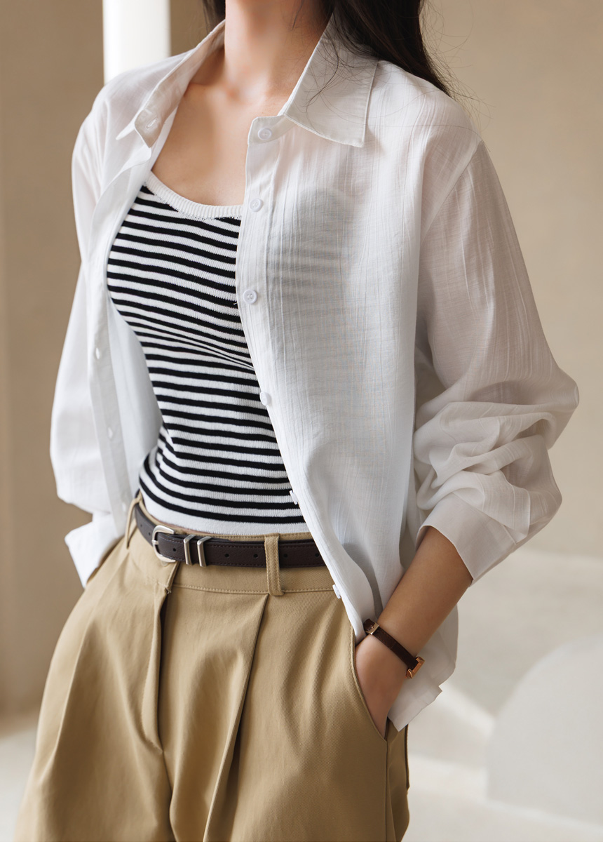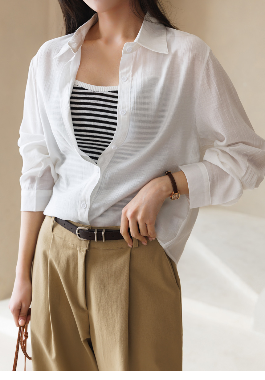 셔츠는 요루 가공이 더해진 거즈면 소재로 제작되어
