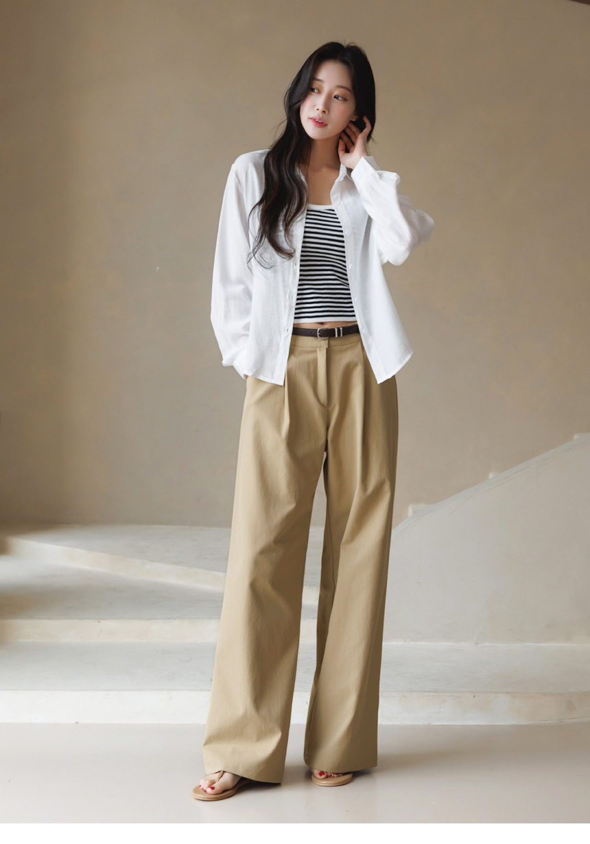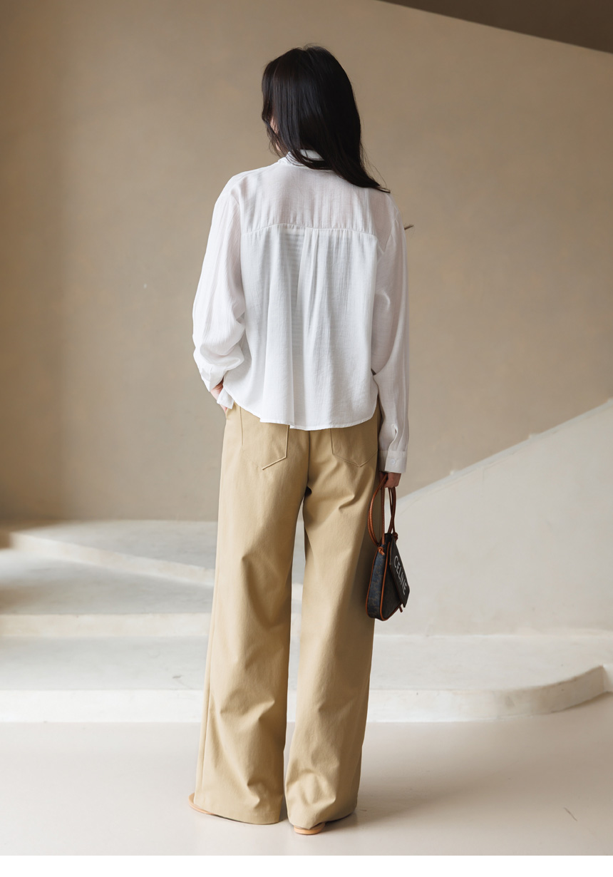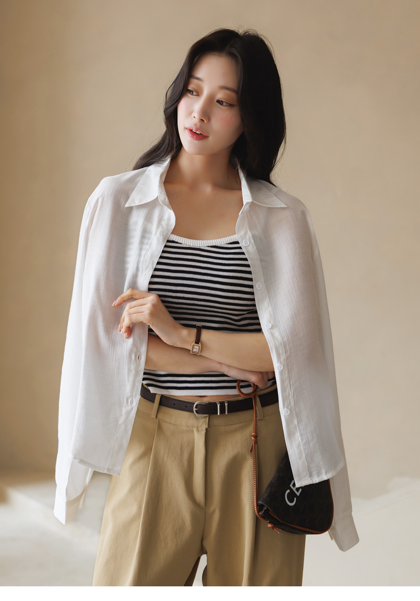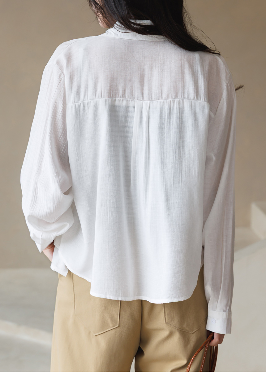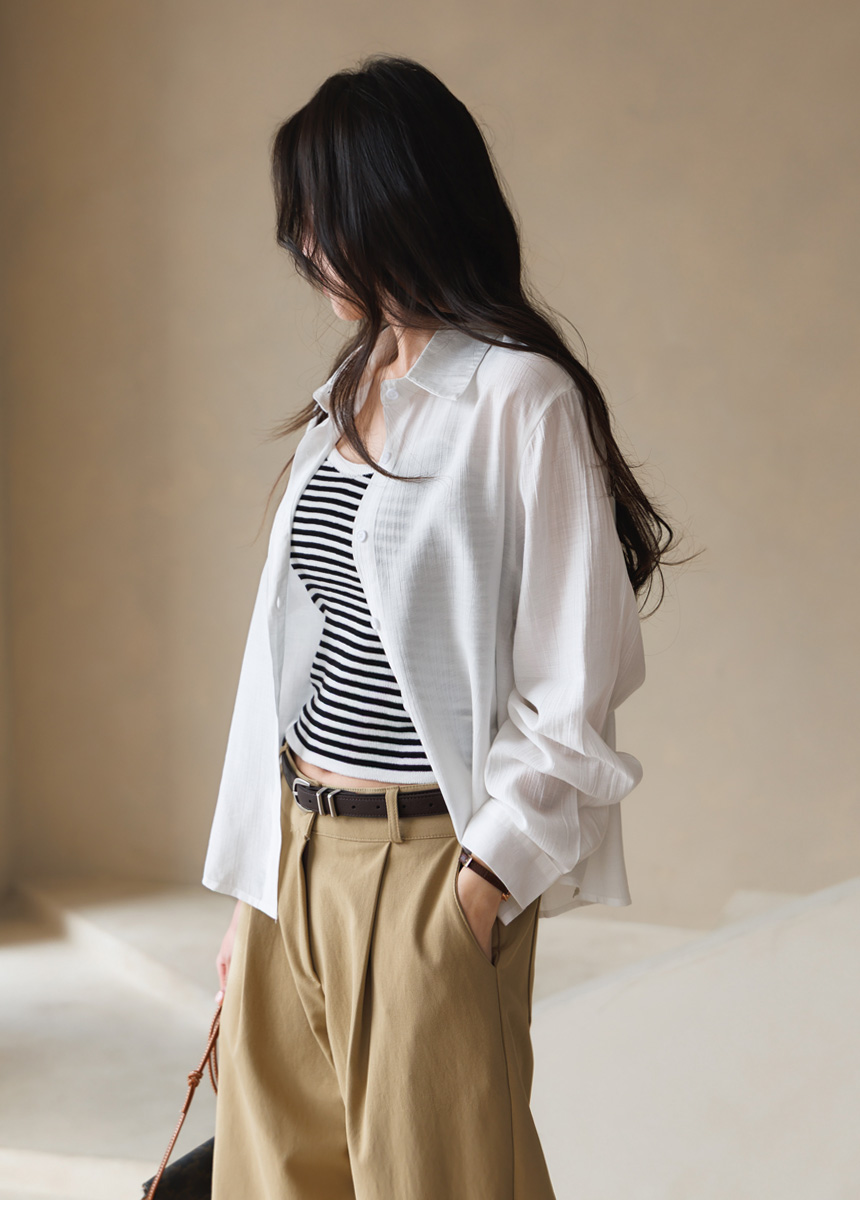 셔츠는 요루 가공이 더해진 거즈면 소재로 제작되어
