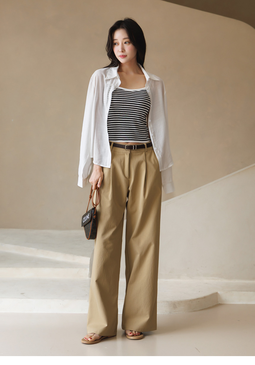 스트라이프 나시와 거즈면 남방 투피스 세트예요