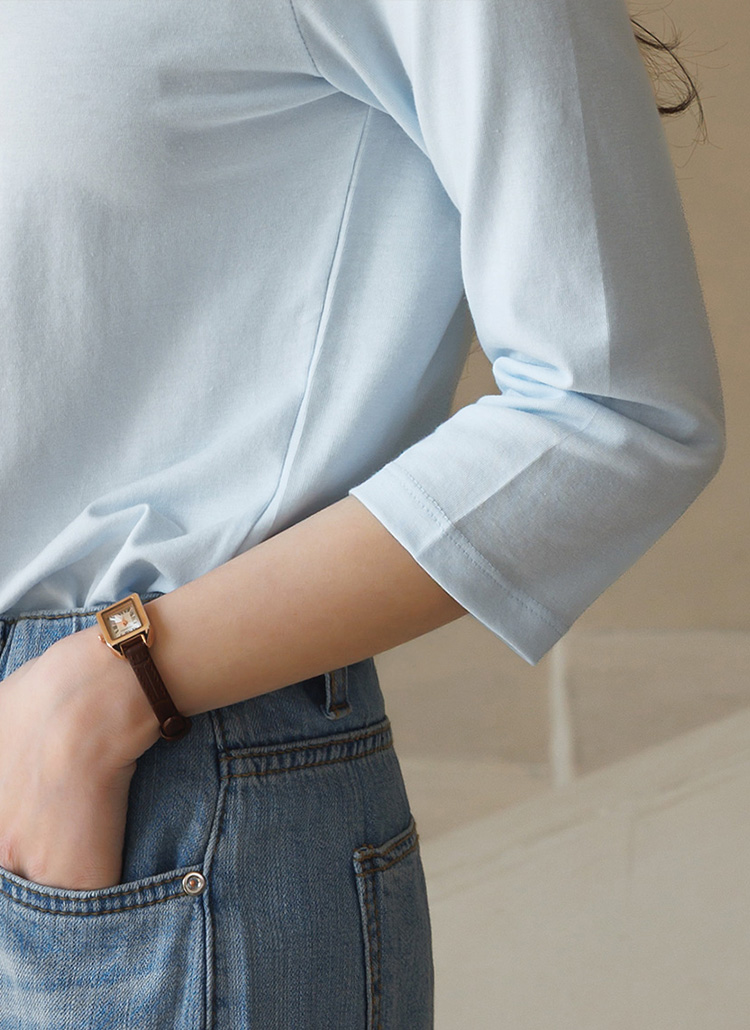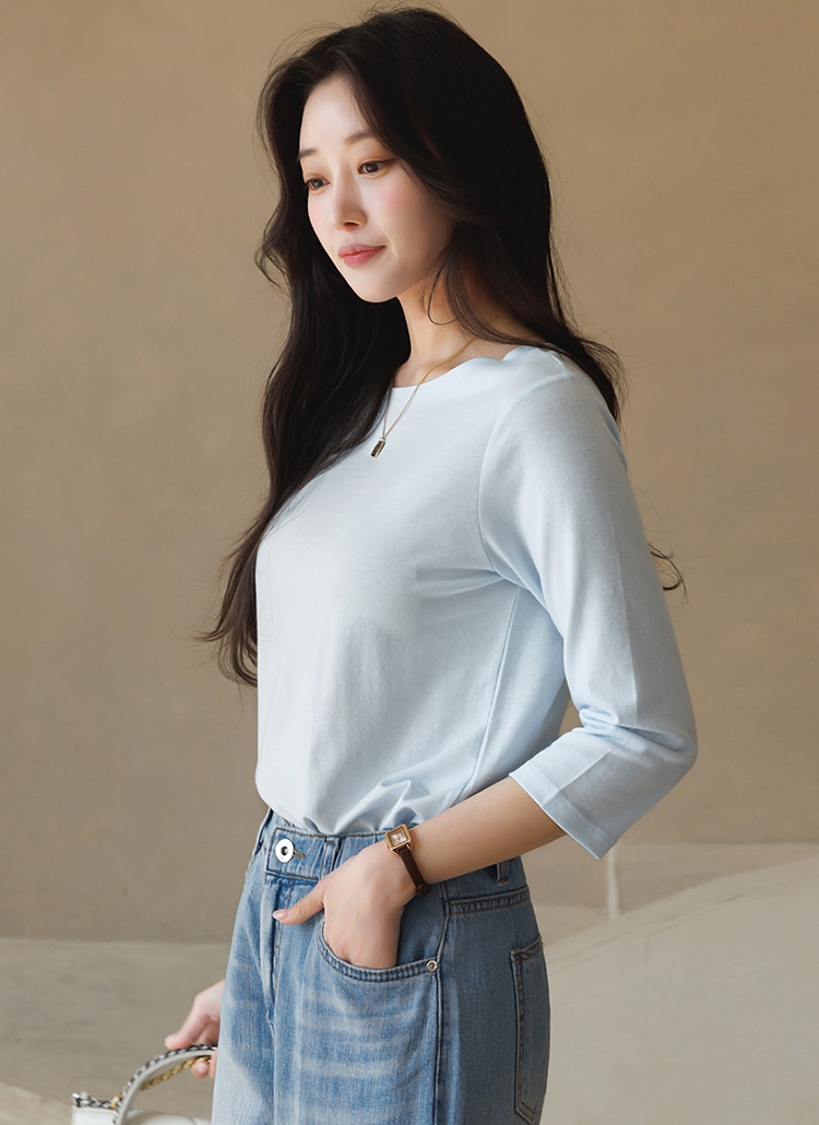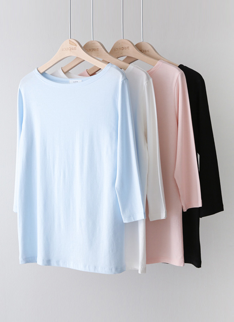 [Theonme] 에인지 부드러운 모달 블렌딩 7부 소매 라운드 티셔츠