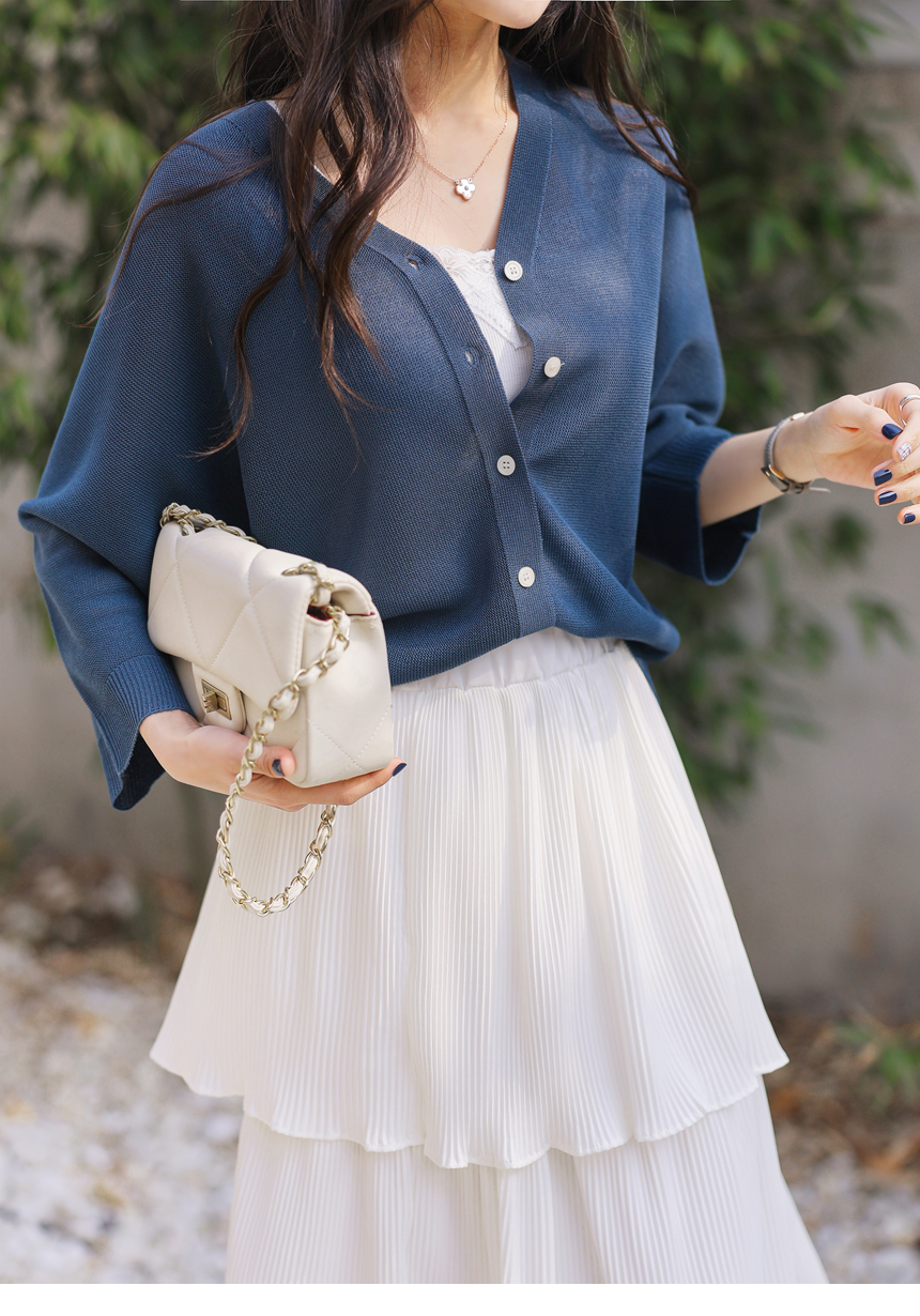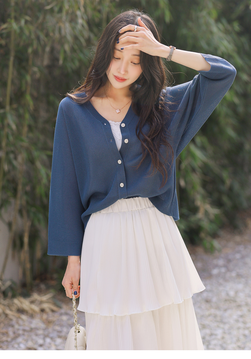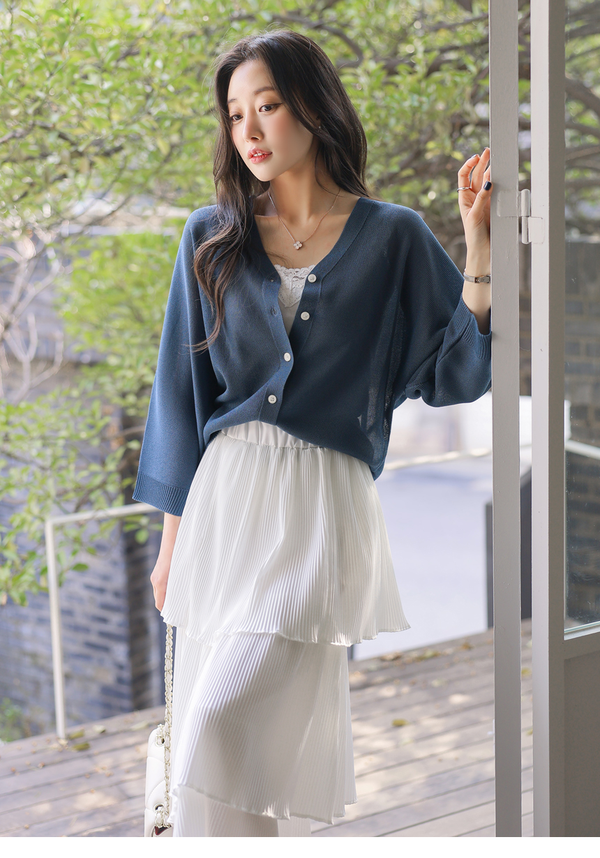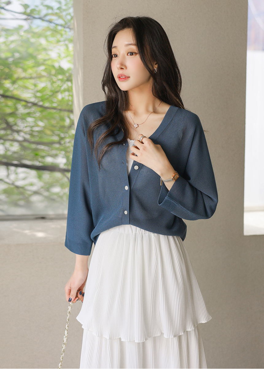 [Theonme] 헤이레 여리 루즈 시스루 양두 브이넥 니트 가디건