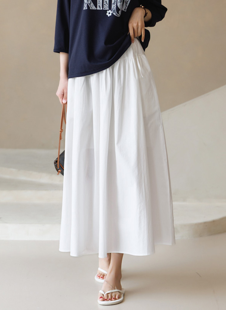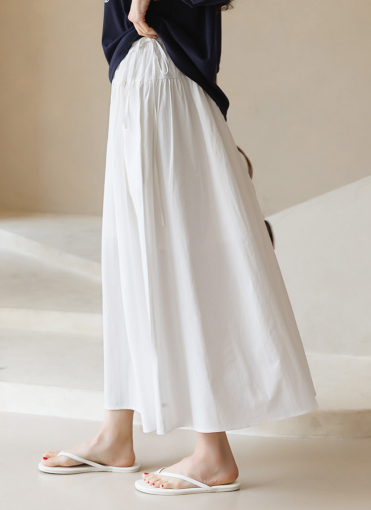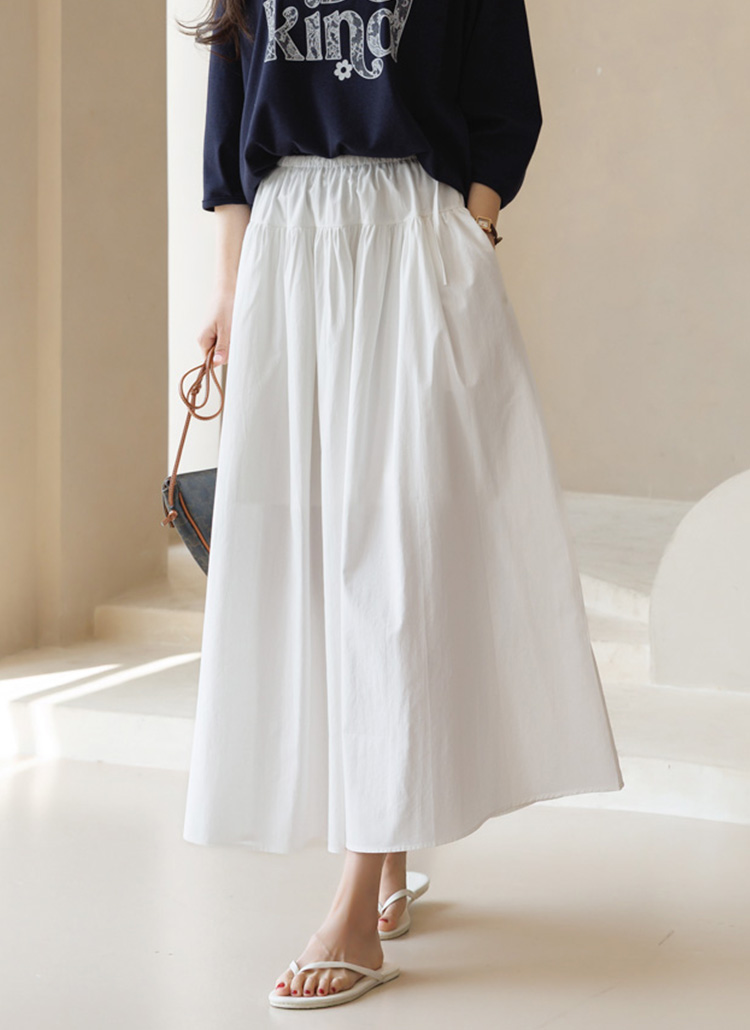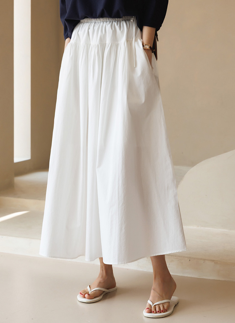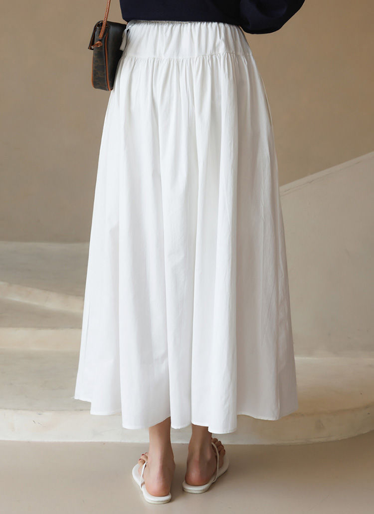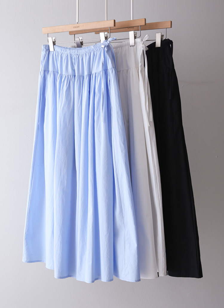 [Theonme] 플레온 허리 스트링 리본 셔링 A라인 플레어 면 롱 스커트