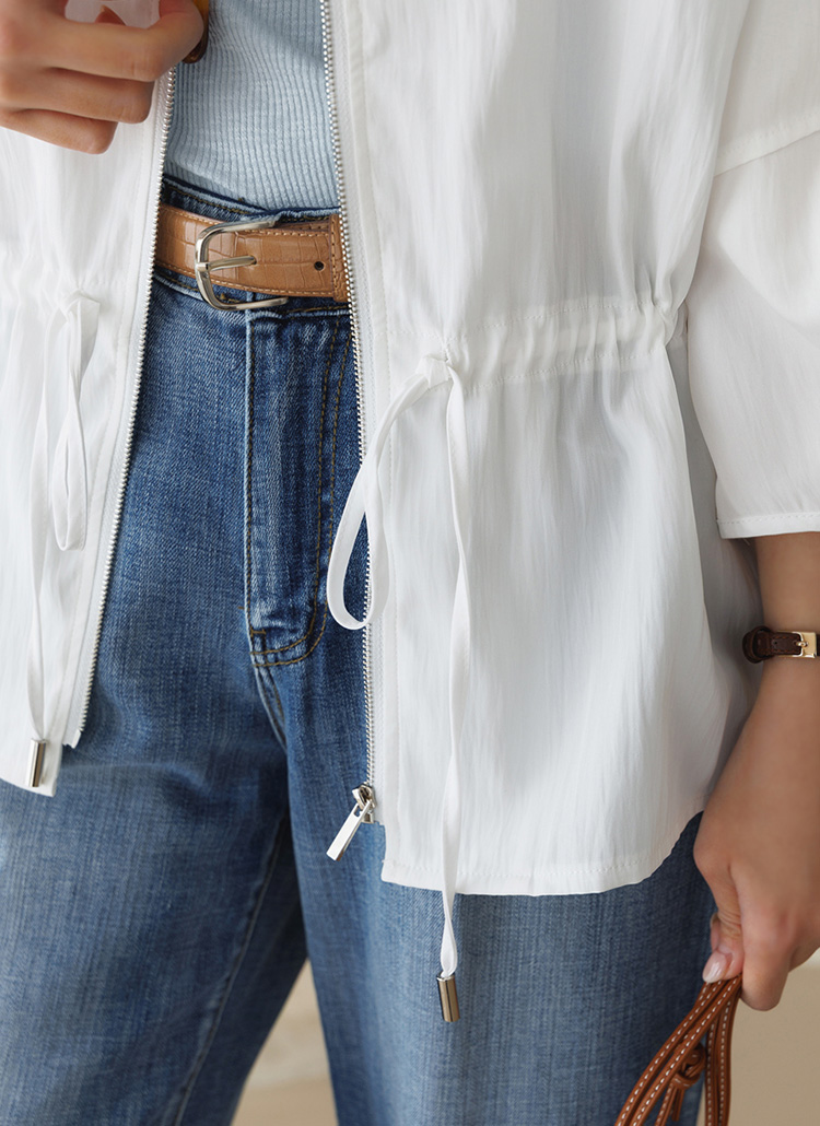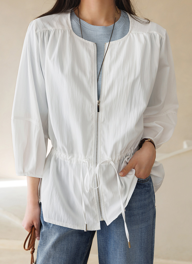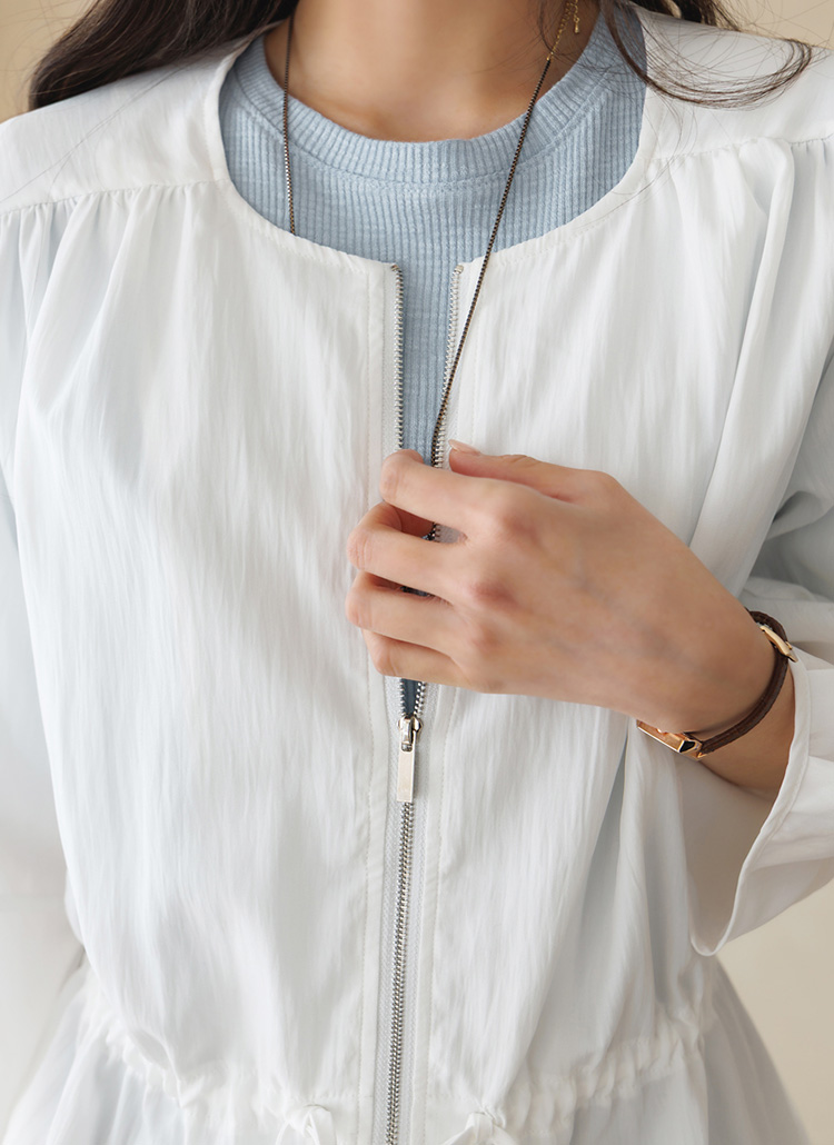 [Theonme] 그레인 허리 스트링 벌룬 소매 바스락 사파리 집업 자켓