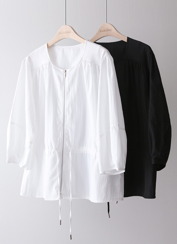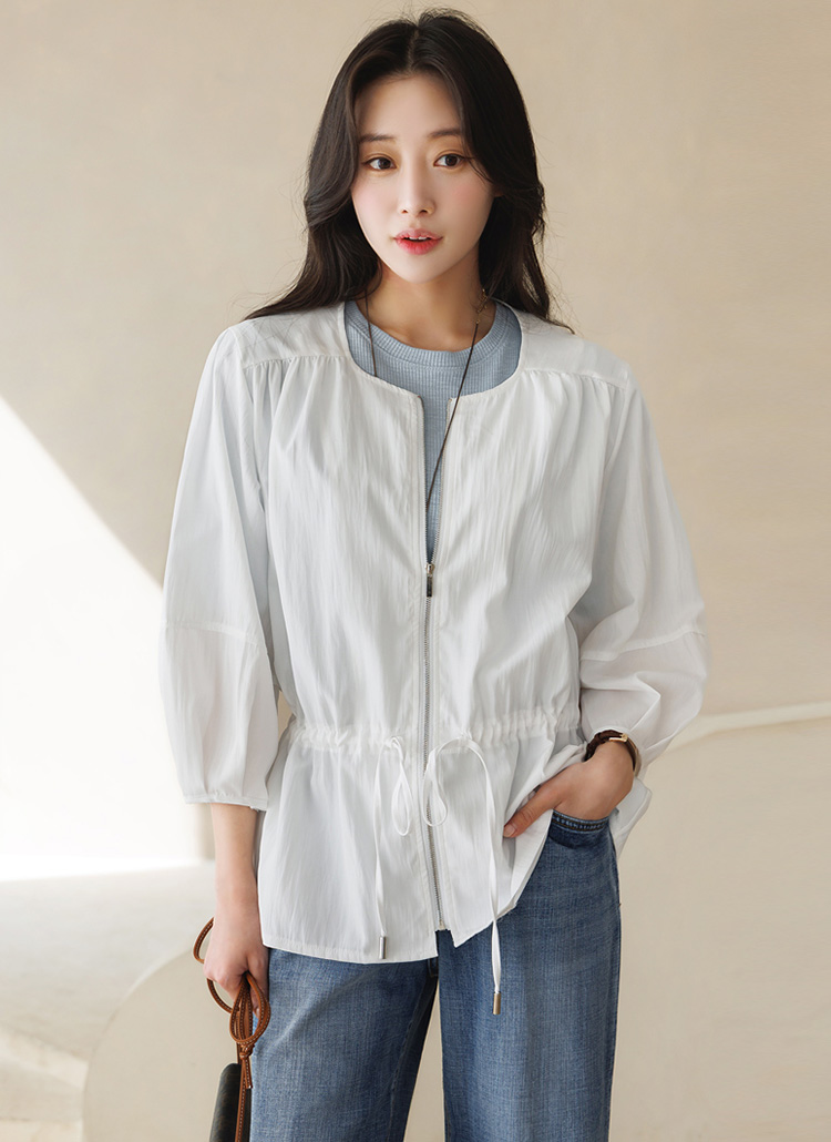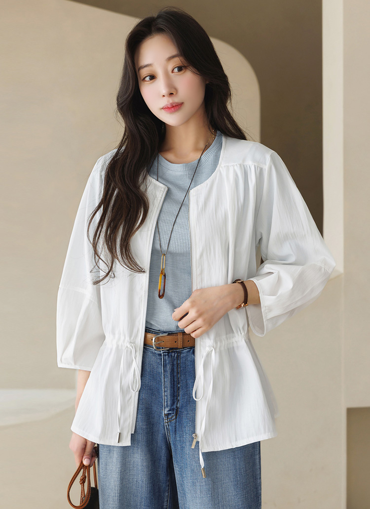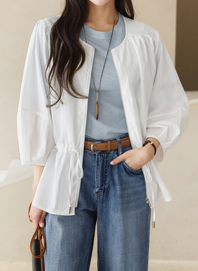 시원하고 경쾌하게 착용되는 7부 벌룬소매 사파리 집업이에요