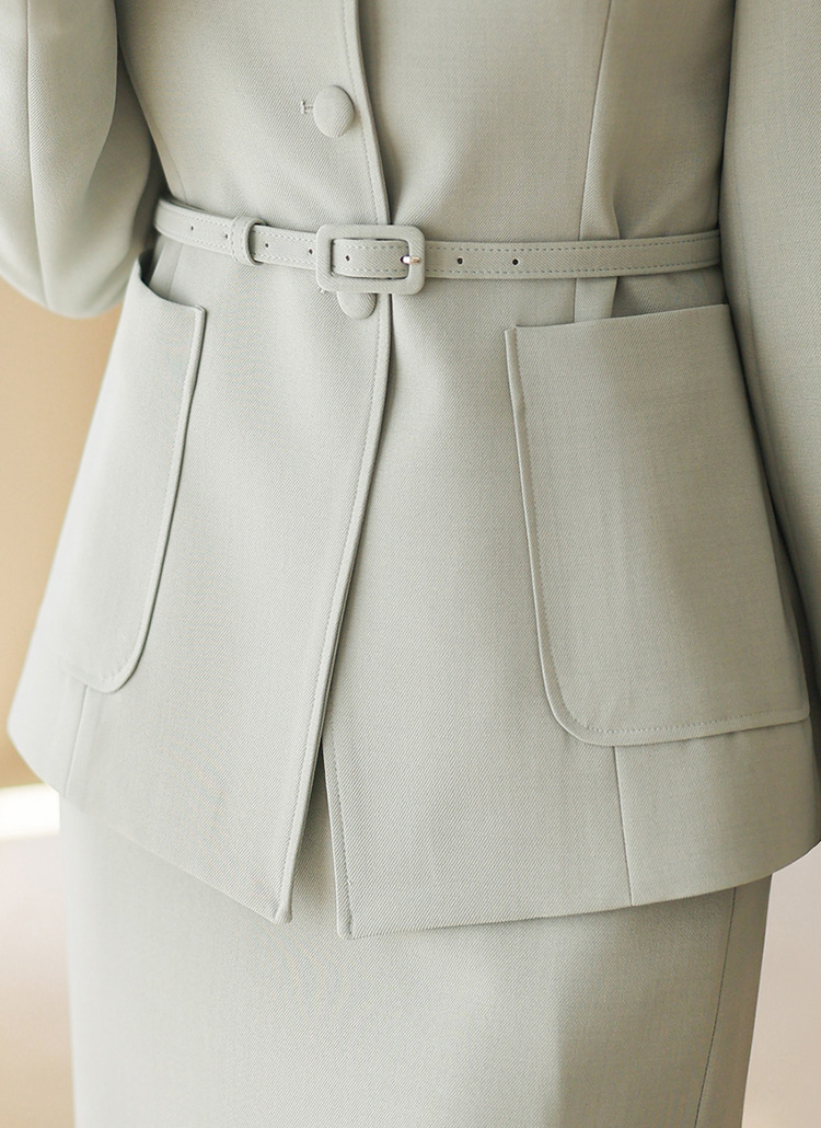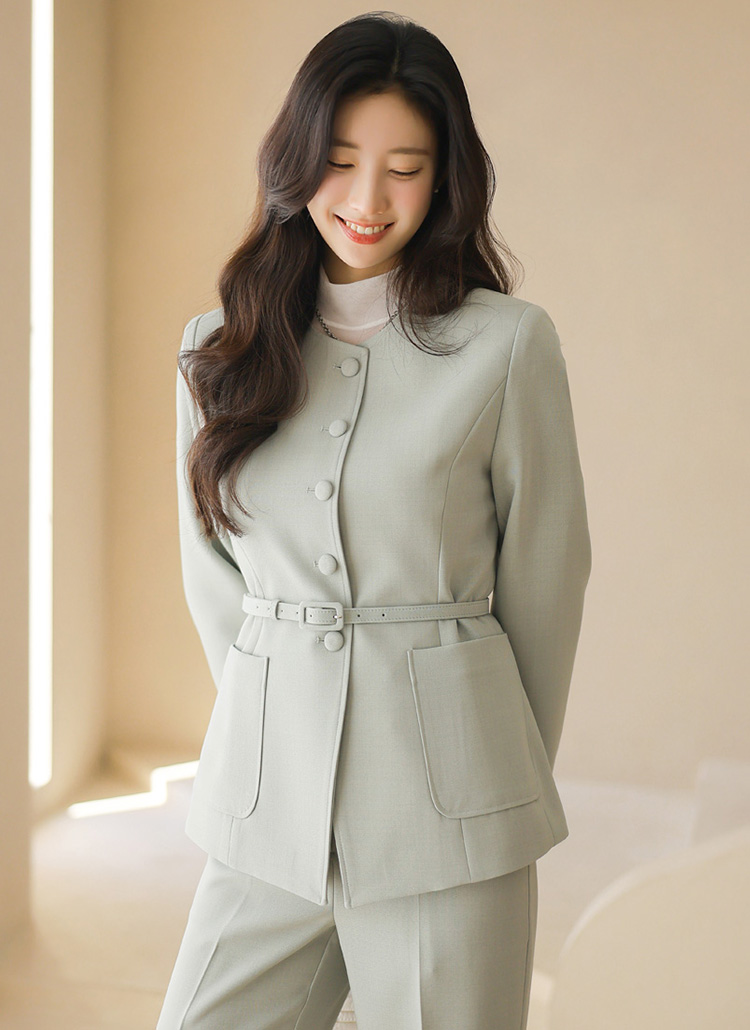 벨루어 완벽 슬림 실루엣 벨트SET 노카라 미드 자켓
