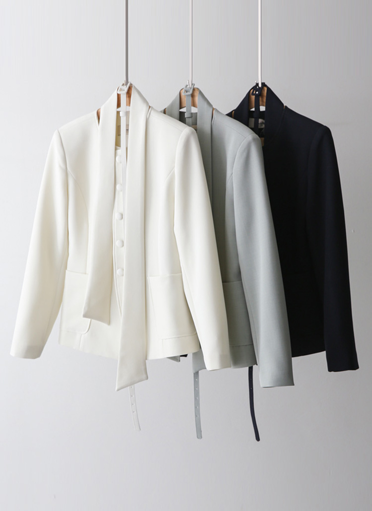 한층 더 완성도 높은 스타일을 연출해주는 노카라 미드 자켓이에요
