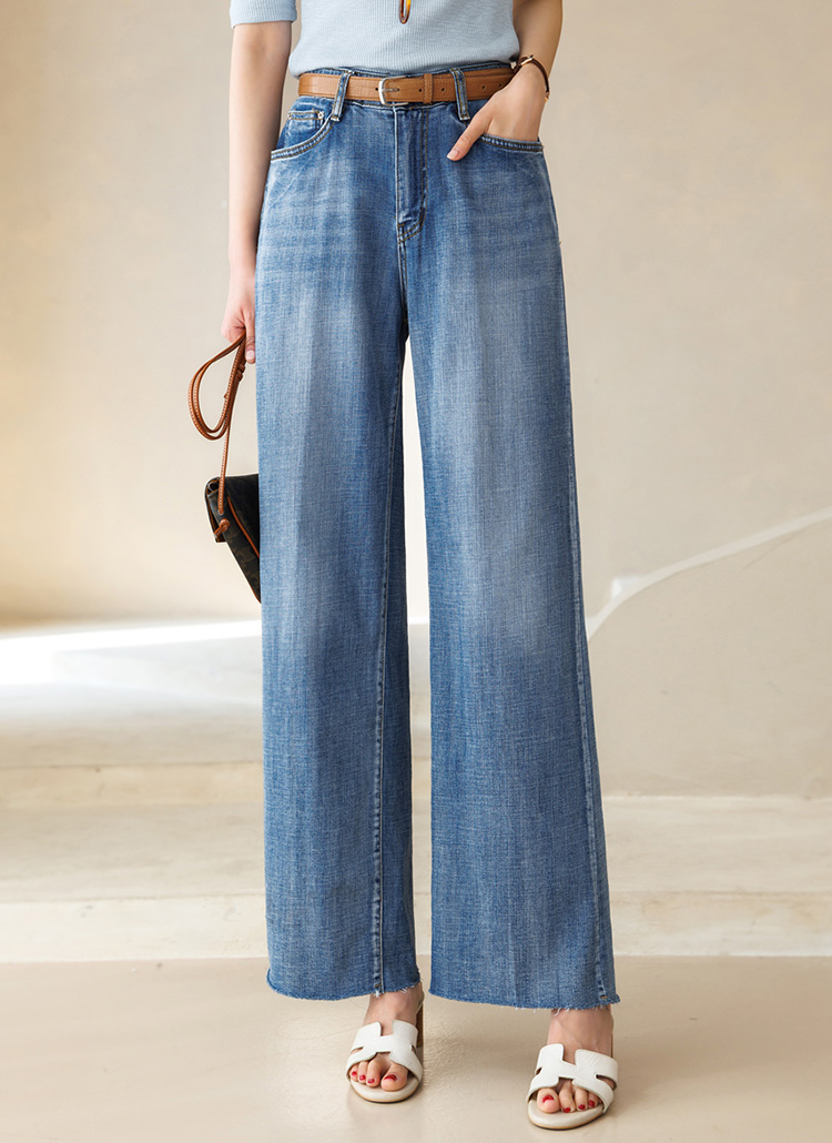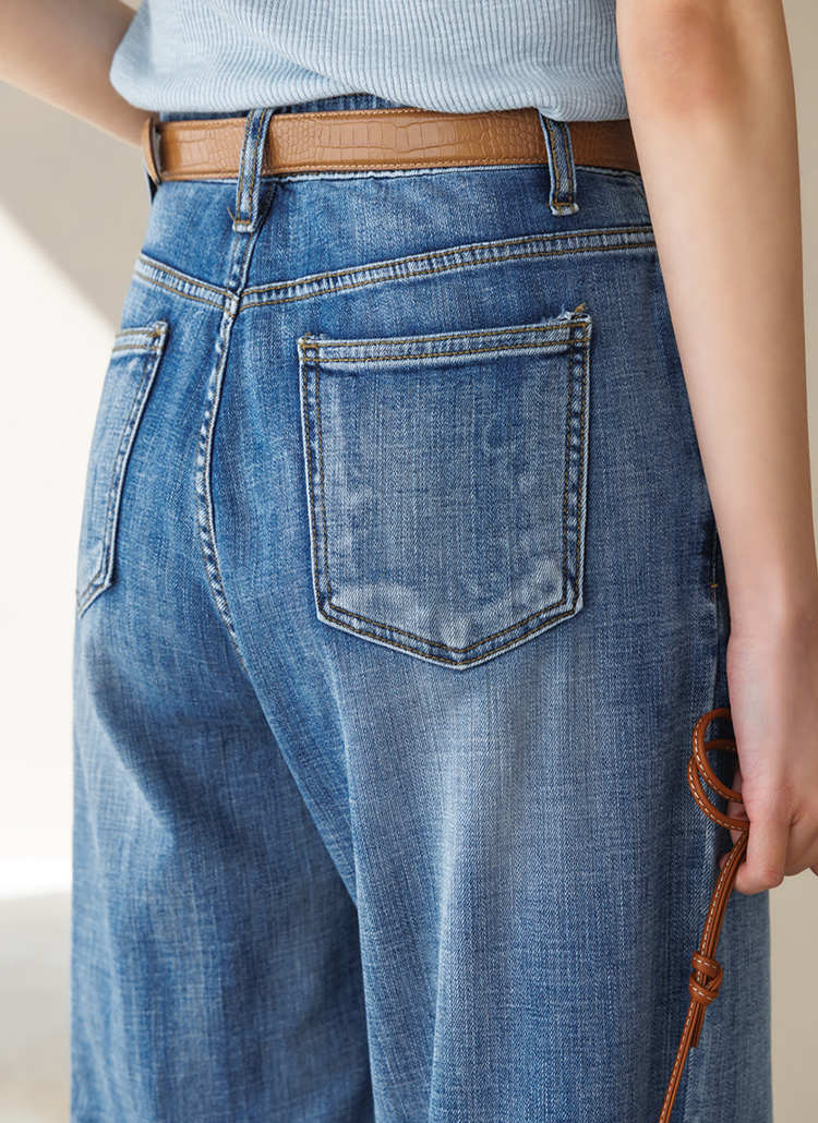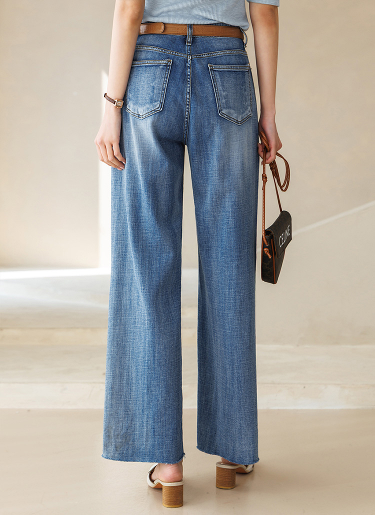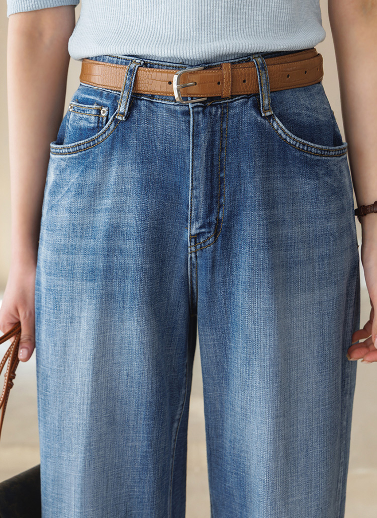 맑고 청량한 블루 톤이 돋보이는 데님 와이드 팬츠예요