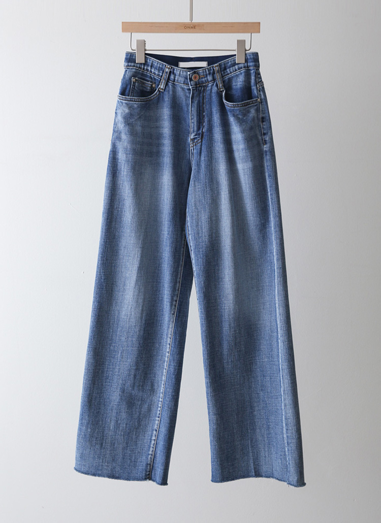 [Theonme] 클린블 히든밴딩 밑단 커팅 세미 와이드 스트레이트 데님 팬츠