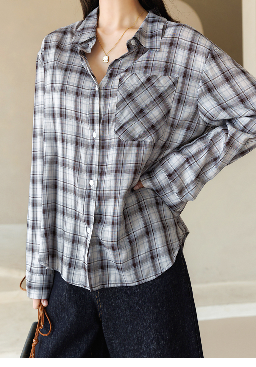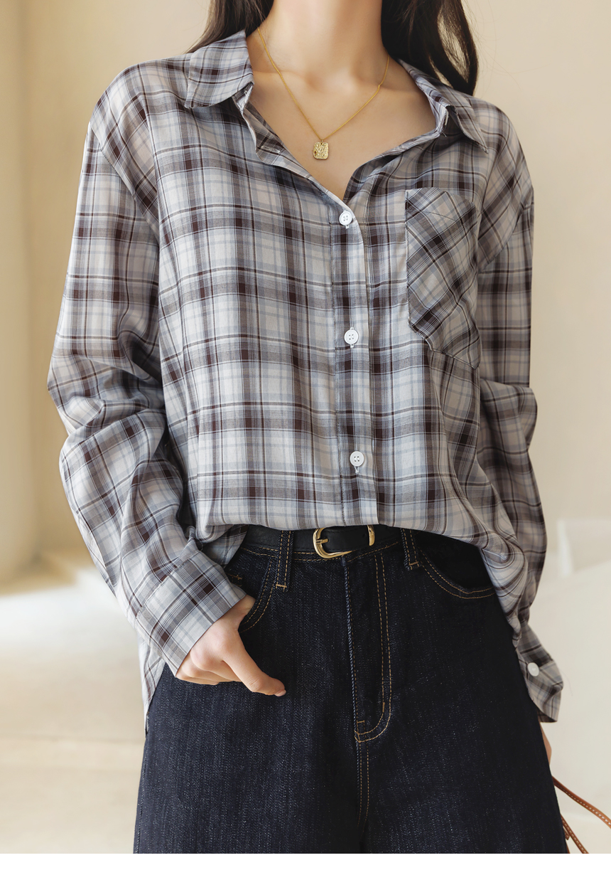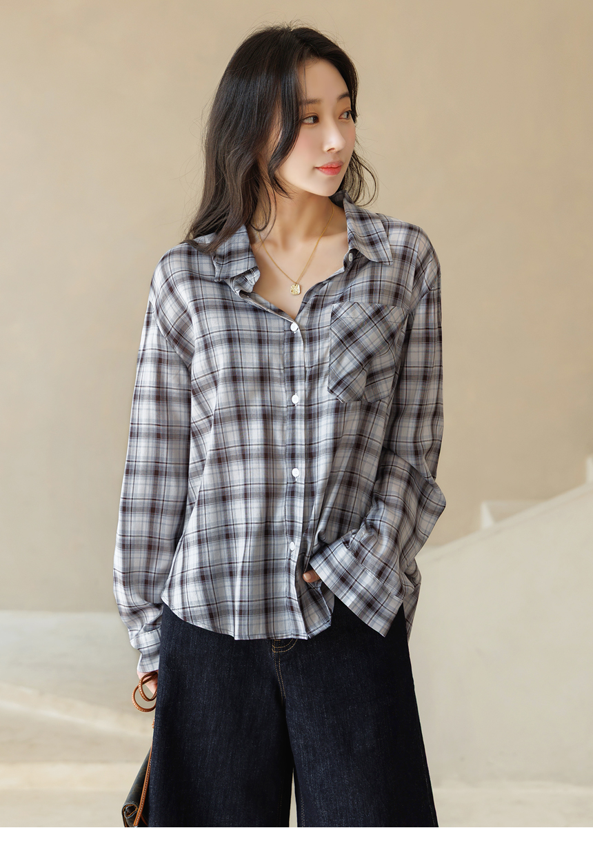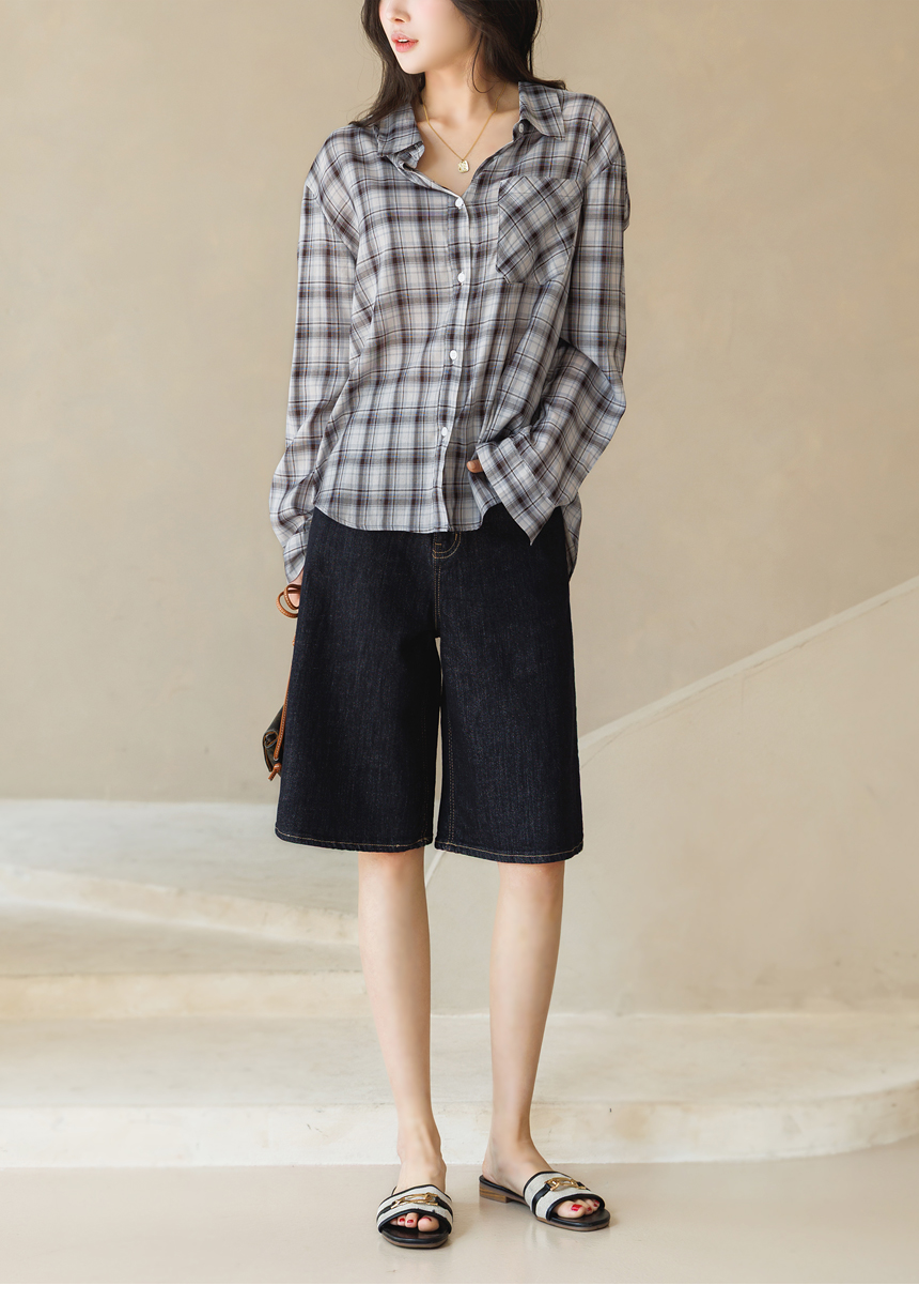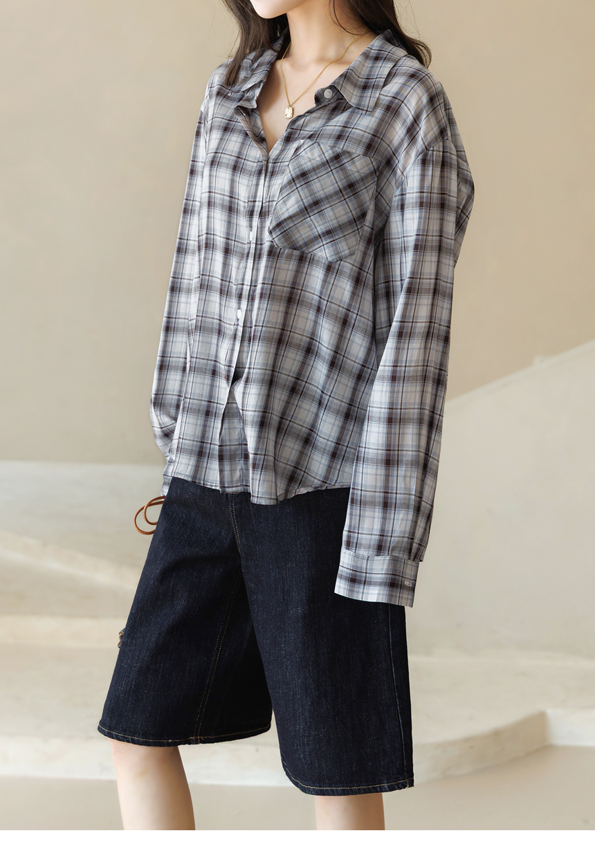 내추럴하면서도 세련된 무드를 완성해주는 체크 셔츠예요