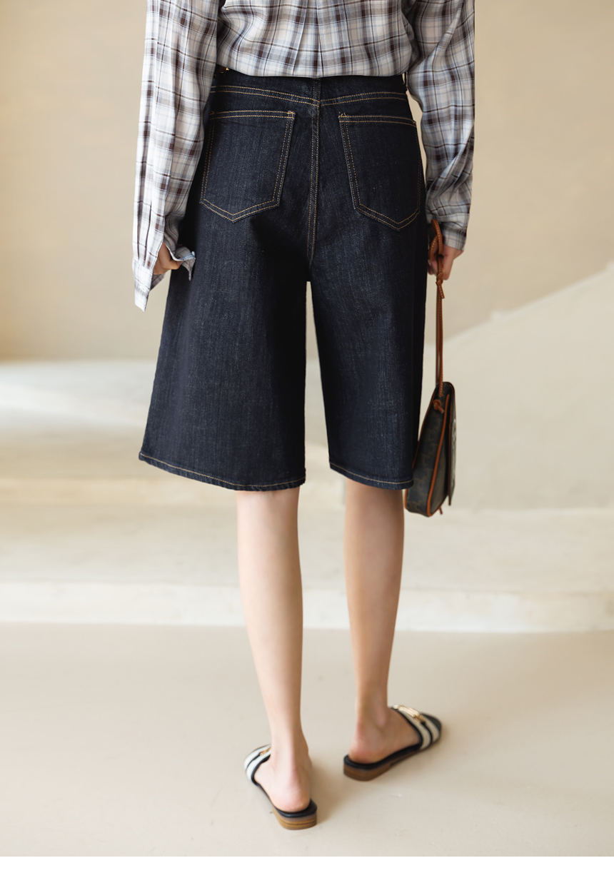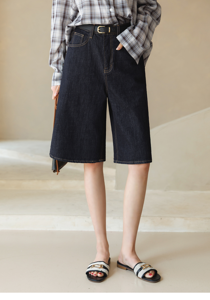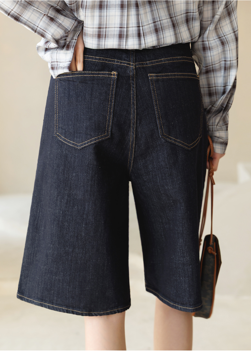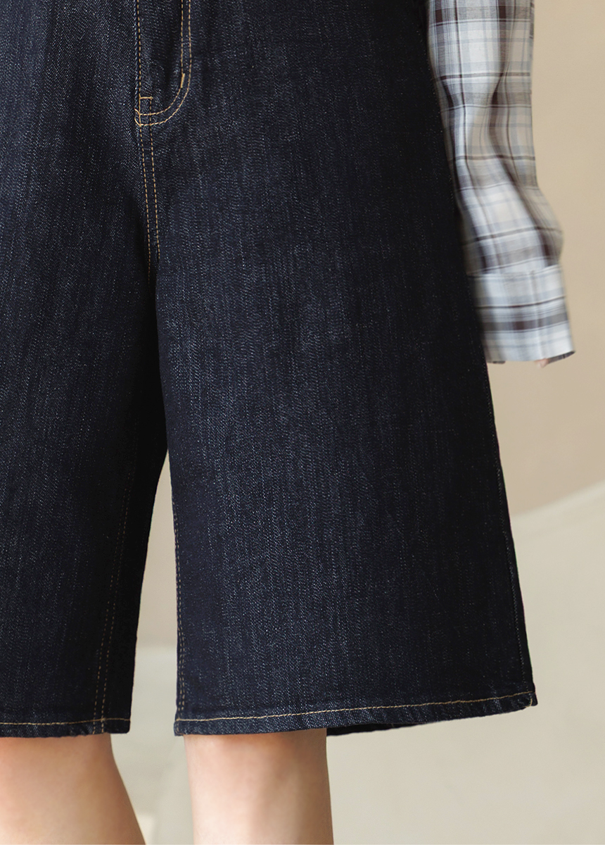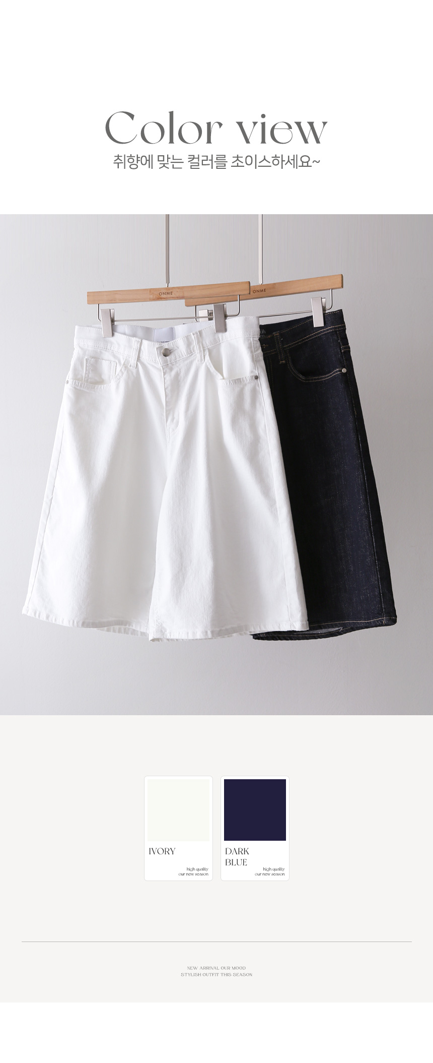 [Theonme] 메르벤 히든밴딩 세미 와이드 5부 면 데님 반바지 팬츠